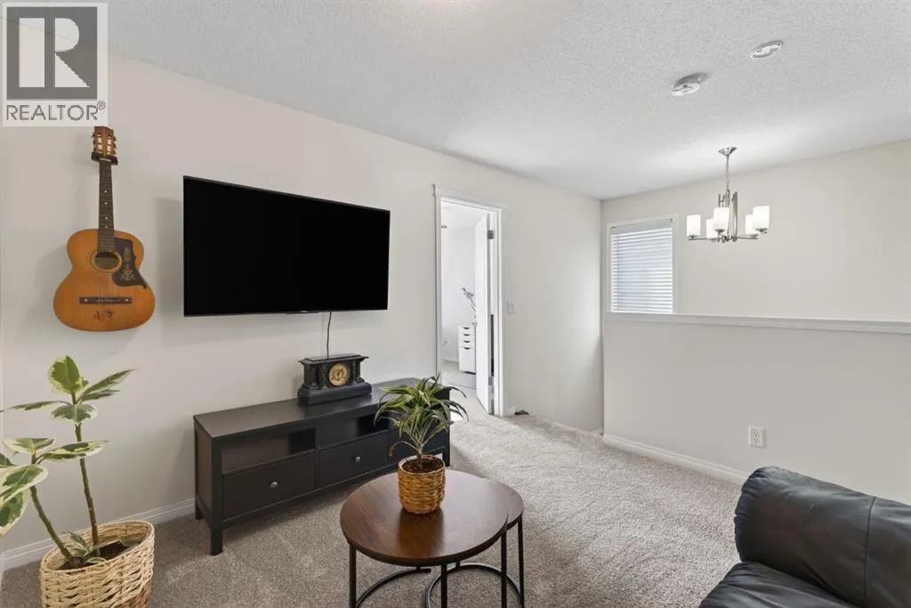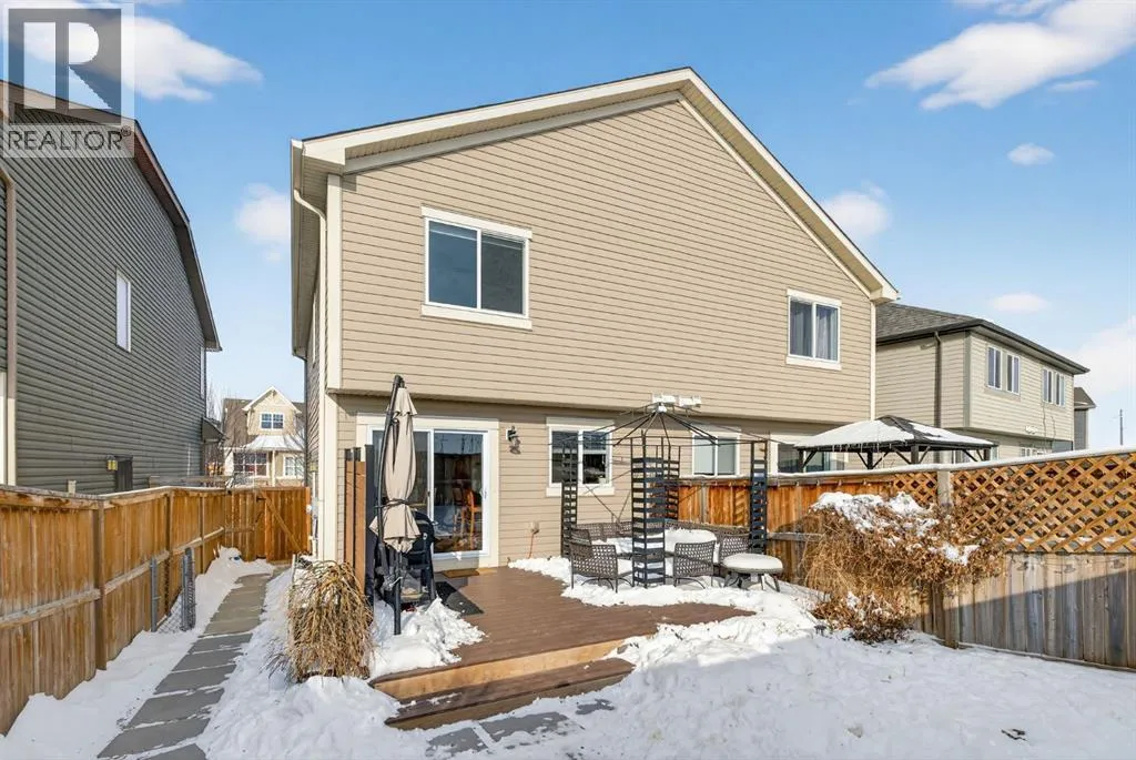 OPEN HOUSE SUNDAY MARCH 1ST 2PM-4PM! Welcome to this beautifully maintained semi-detached home in the highly sought-after community of Cranston, offering 1,438 sq ft of thoughtfully designed living space, a sunny south-facing backyard, and an unfinished full basement ready for your future vision. From the moment you step inside, youâll appreciate the bright, open layout and warm finishes throughout. The main floor seamlessly connects the kitchen, dining, and living areas â creating an ideal space for both everyday living and entertaining. Large windows flood the home with natural light, enhancing the already airy feel of this open-concept design. The kitchen is both stylish and functional, featuring a central island, pantry, granite countertops, and a gas stove top â a favourite feature for those who love to cook. Whether hosting friends or enjoying a quiet evening at home, this space truly serves as the heart of the home. Upstairs, youâll find a well-designed layout that offers both comfort and privacy. Two generously sized bedrooms â including the spacious primary retreat â are separated by a large central bonus/family room, perfect for a media area, home office, or play space. Both bedrooms feature their own 4-piece ensuites and walk-in closets, making this an exceptional setup for professionals, roommates, or small families. The unfinished basement provides excellent potential for future development, allowing you to customize additional living space to suit your needs. Step outside to enjoy the private south-facing backyard â ideal for soaking up sunshine year-round. The yard offers space to relax, entertain, and garden, along with a convenient rear parking pad.Located with quick access to Deerfoot Trail, commuting is effortless while still enjoying the lifestyle Cranston is known for. Residents benefit from proximity to schools, parks, pathways, shopping, and the Bow River. Cranstonâs vibrant community atmosphere, access to Century Hall, and nearby amenities in Seton â including the South Health Campus â make this an exceptional place to call home.Bright, functional, and ideally located â this is Cranston living at its best. (id:27476)