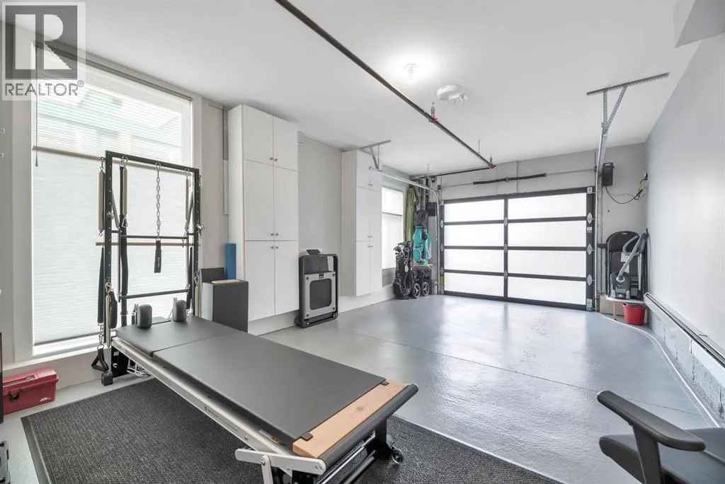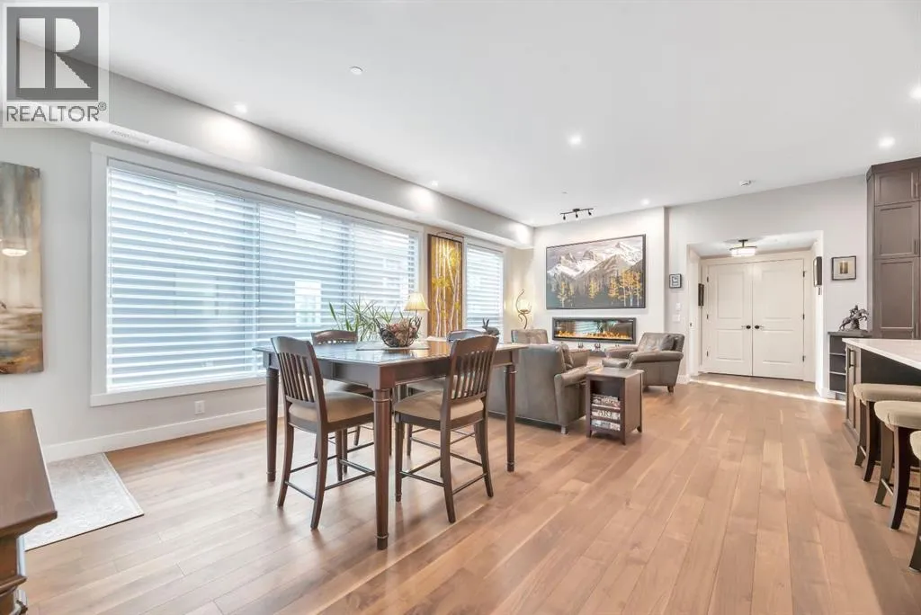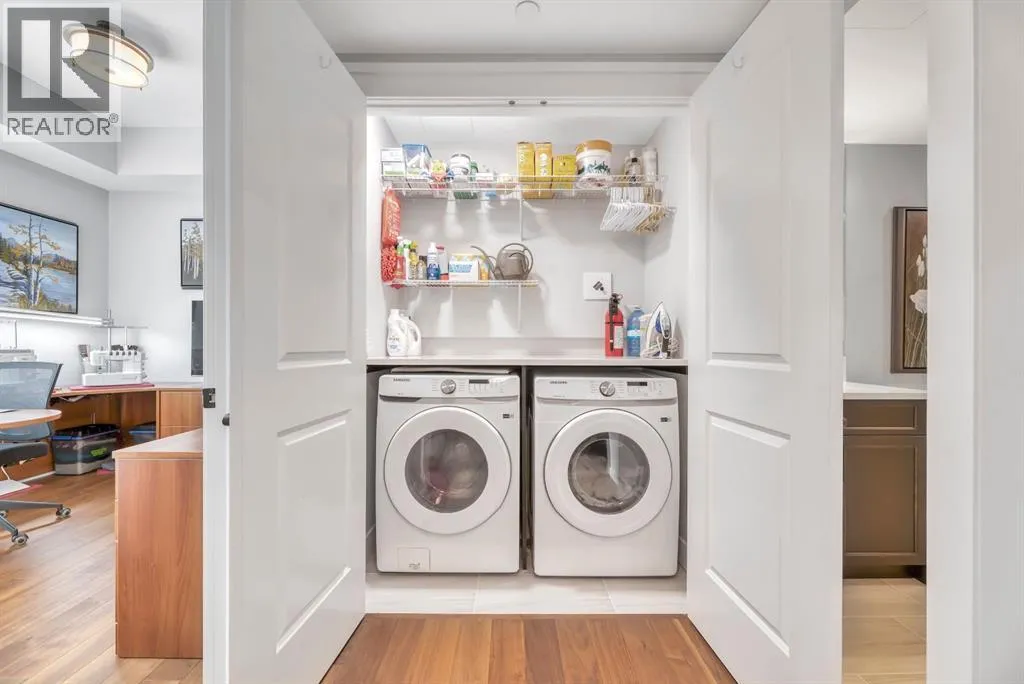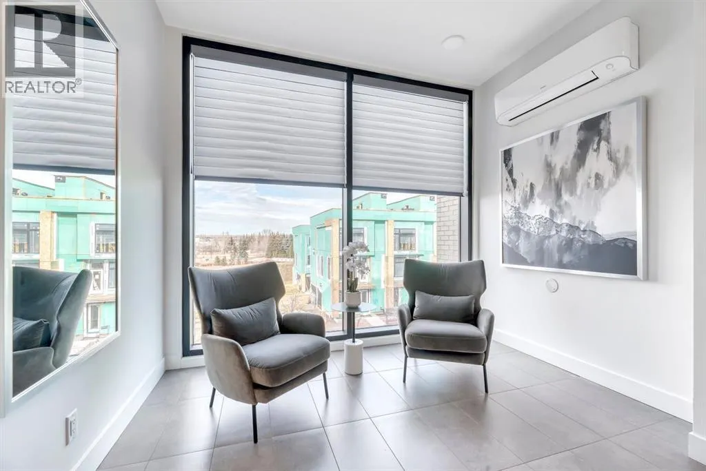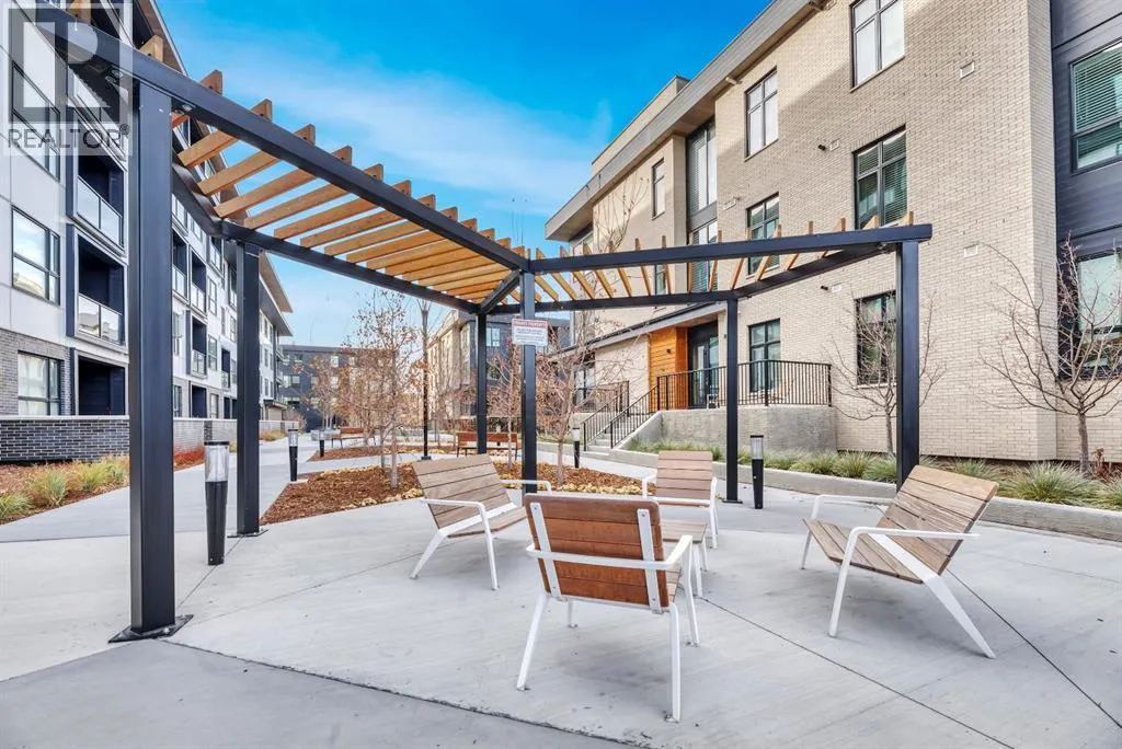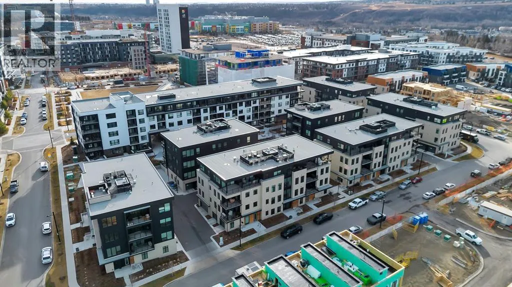 Welcome to Luxury Lock and Leave Living in the Heart of the vibrant and happening University District - and can you believe that you have exceptional condo living with an attached Private and Heated Garage for your vehicle! Not that you will need your vehicle much because everything you need is within short walking distance away, from 2 dog parks, miles of walking paths and green spaces, cafes, restaurants, grocery store, business district with numerous medical offices, lawyers, vet and pet clinics and the list goes on an on. When you are not out walking in this welcoming community, you can be enjoying this beautiful 1230 square foot, 2 bed, 2 bath executive condo in the coveted Capella Stacked Flats open-concept layout where 10â ceilings and large windows create an airy, elevated atmosphere. High end finishes include gorgeous engineered Walnut hardwood floors throughout, chef-inspired kitchen complete with a 13.5' long, oversized island, upgraded cabinetry, premium Fisher & Paykel appliances, a custom built-in wall pantry, a dedicated tech center, undermount lighting for ambience and a tasteful Herringbone pattern backsplash. The spacious dining and living area makes it easy to host gatherings or enjoy a quiet night around the fireplace. This home has a sunny South facing balcony with a Phantom screen door and a gas line for a BBQ. There is also a water line on the patio to help keep your plants or flowers fed. The primary bedroom offers a custom walk-in closet, tray ceilings and spacious ensuite with dual sinks, a beautifully tiled shower with bench, cozy heated floors, and generous storage and counter space. The second bedroom doubles beautifully as a home office or guest suite with the other 3 pc bath directly across fitted with heated floors and another tiled shower. This space also houses the On demand Navien hot water tank and HRV with humidifier, neatly tucked away in its own storage closet. A rare luxury in condo living, this unit includes its own oversized , private heated garageâproviding security, storage, and ease of entry. There is a handy workbench with cabinetry, windows along the side for natural lighting and epoxy floors as well as a convenient water line. Designed with quality, sustainability, and lifestyle in mind, this LEED-certified building offers a boutique living experience with only eight units per building and just two neighbours on your floor. Each unit has its own heating, ventilation and air conditioning systems. Also included is a premium fitness center for residents use and lovely garden and patio areas throughout the complex. A true standout home in one of NW Calgaryâs most desirable communitiesâExperience an unbeatable work-life balance when you call this best-selling urban community home. (id:27476)