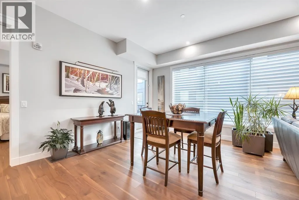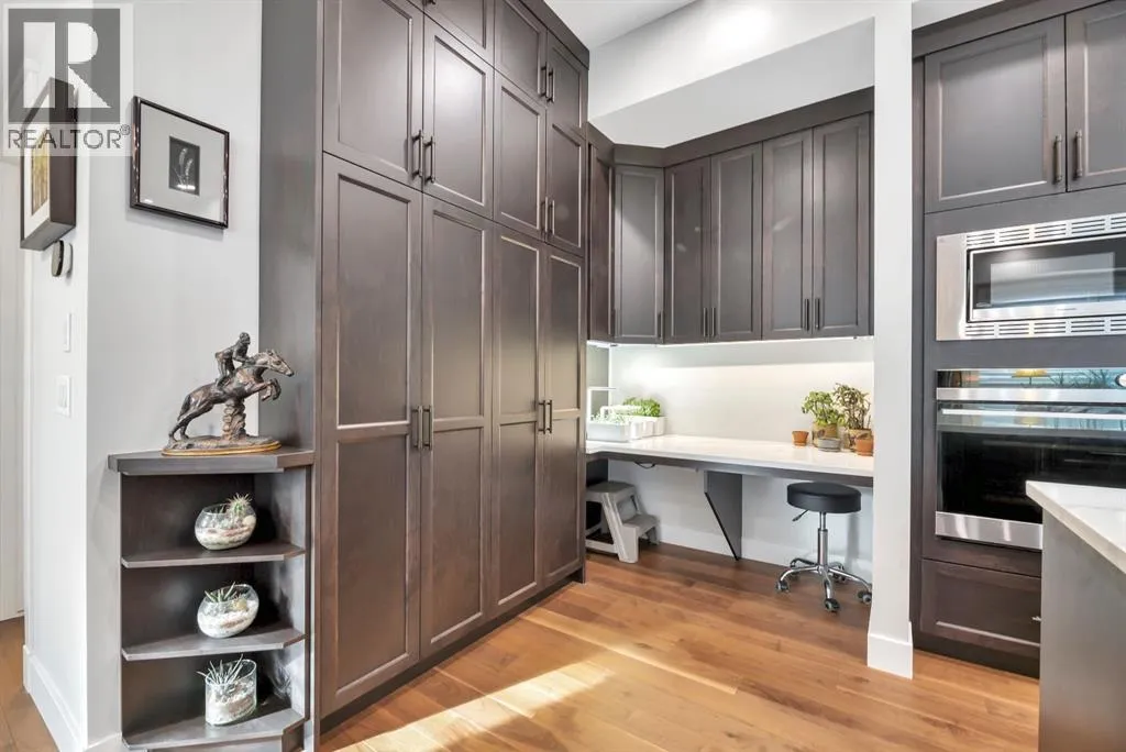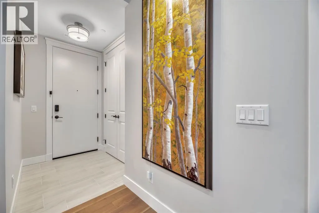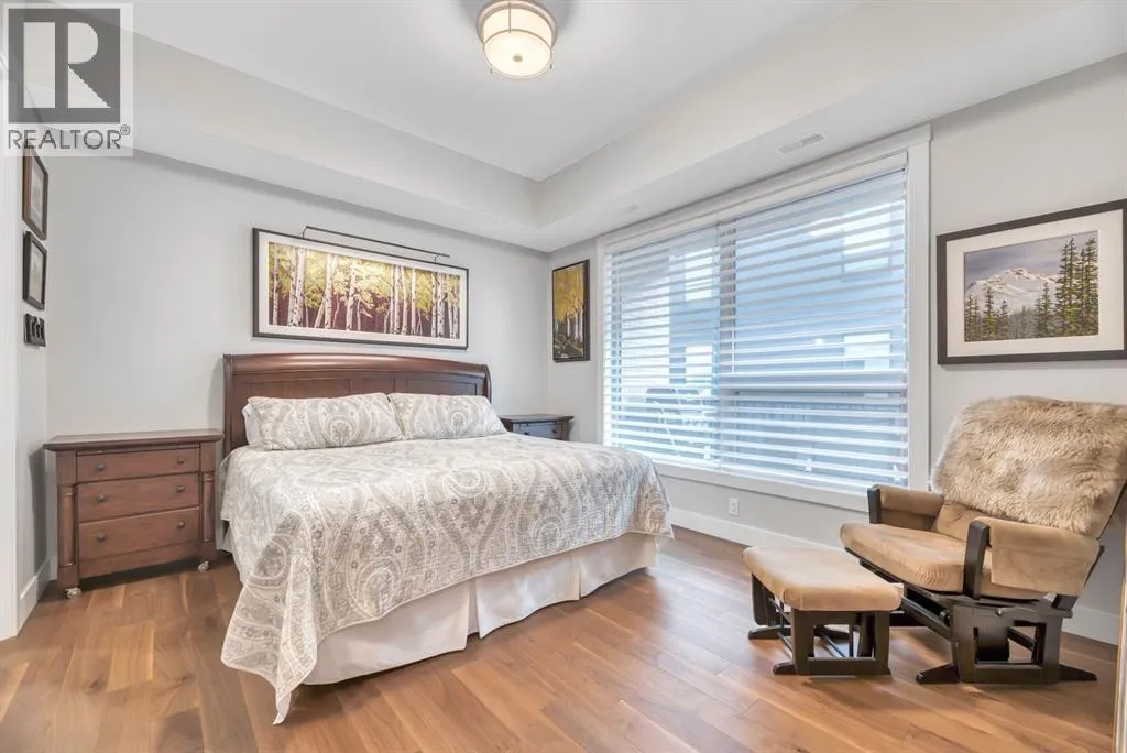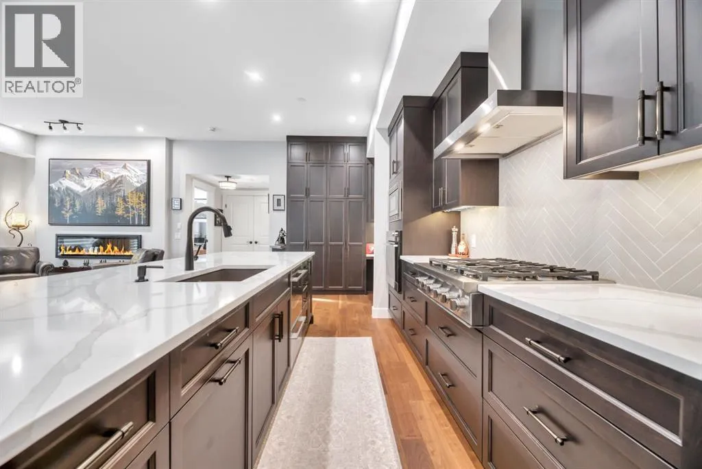 Welcome to Luxury Lock and Leave Living in the Heart of the vibrant and happening University District - and can you believe that you have exceptional condo living with an attached Private and Heated Garage for your vehicle! Not that you will need your vehicle much because everything you need is within short walking distance away, from 2 dog parks, miles of walking paths and green spaces, cafes, restaurants, grocery store, business district with numerous medical offices, lawyers, vet and pet clinics and the list goes on an on. When you are not out walking in this welcoming community, you can be enjoying this beautiful 1230 square foot, 2 bed, 2 bath executive condo in the coveted Capella Stacked Flats open-concept layout where 10â ceilings and large windows create an airy, elevated atmosphere. High end finishes include gorgeous engineered Walnut hardwood floors throughout, chef-inspired kitchen complete with a 13.5' long, oversized island, upgraded cabinetry, premium Fisher & Paykel appliances, a custom built-in wall pantry, a dedicated tech center, undermount lighting for ambience and a tasteful Herringbone pattern backsplash. The spacious dining and living area makes it easy to host gatherings or enjoy a quiet night around the fireplace. This home has a sunny South facing balcony with a Phantom screen door and a gas line for a BBQ. There is also a water line on the patio to help keep your plants or flowers fed. The primary bedroom offers a custom walk-in closet, tray ceilings and spacious ensuite with dual sinks, a beautifully tiled shower with bench, cozy heated floors, and generous storage and counter space. The second bedroom doubles beautifully as a home office or guest suite with the other 3 pc bath directly across fitted with heated floors and another tiled shower. This space also houses the On demand Navien hot water tank and HRV with humidifier, neatly tucked away in its own storage closet. A rare luxury in condo living, this unit includes its own oversized , private heated garageâproviding security, storage, and ease of entry. There is a handy workbench with cabinetry, windows along the side for natural lighting and epoxy floors as well as a convenient water line. Designed with quality, sustainability, and lifestyle in mind, this LEED-certified building offers a boutique living experience with only eight units per building and just two neighbours on your floor. Each unit has its own heating, ventilation and air conditioning systems. Also included is a premium fitness center for residents use and lovely garden and patio areas throughout the complex. A true standout home in one of NW Calgaryâs most desirable communitiesâExperience an unbeatable work-life balance when you call this best-selling urban community home. (id:27476)