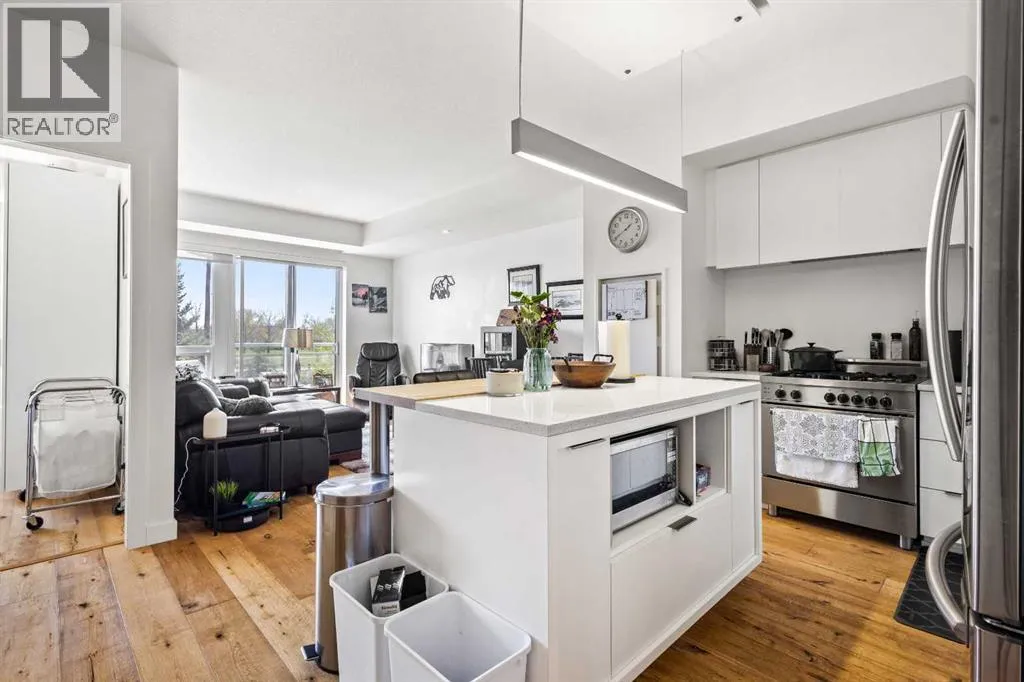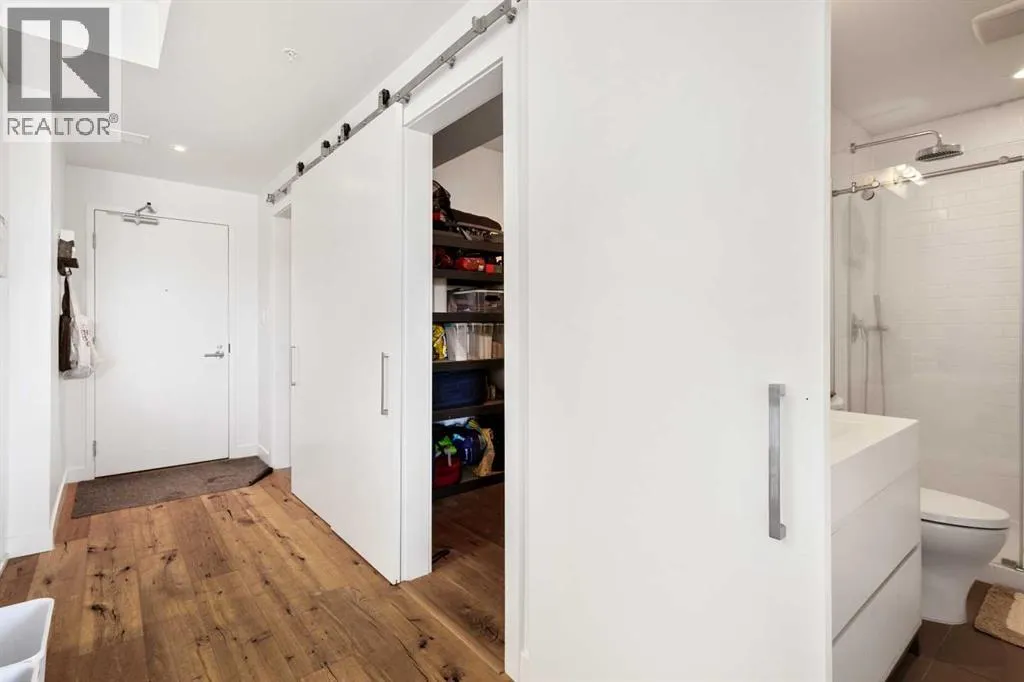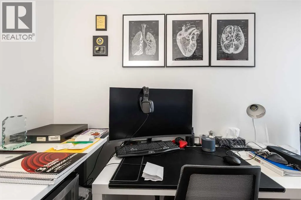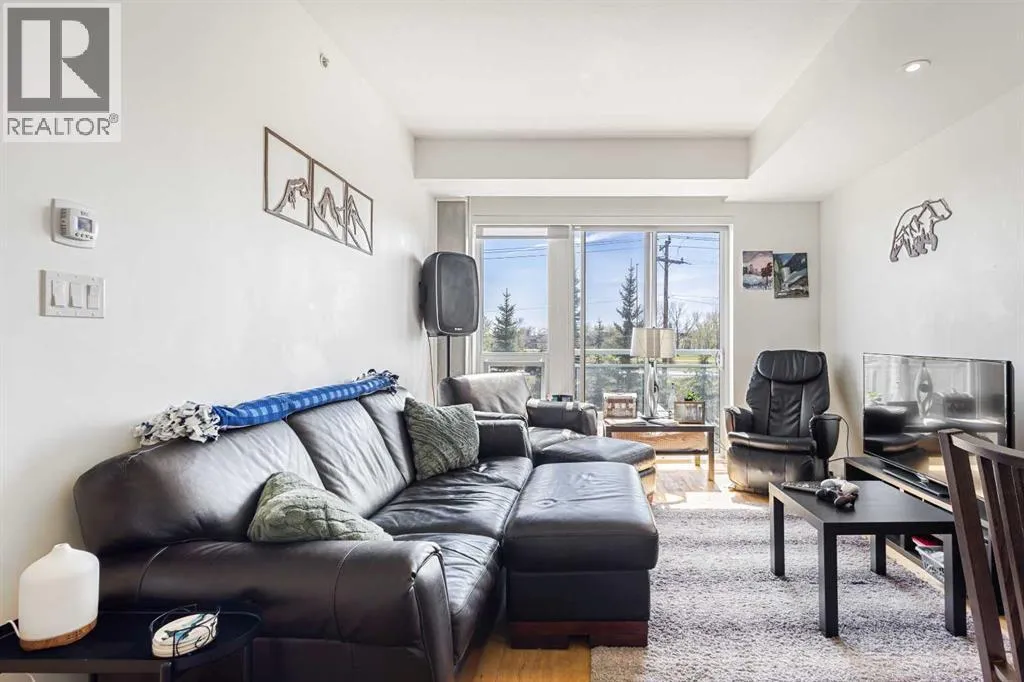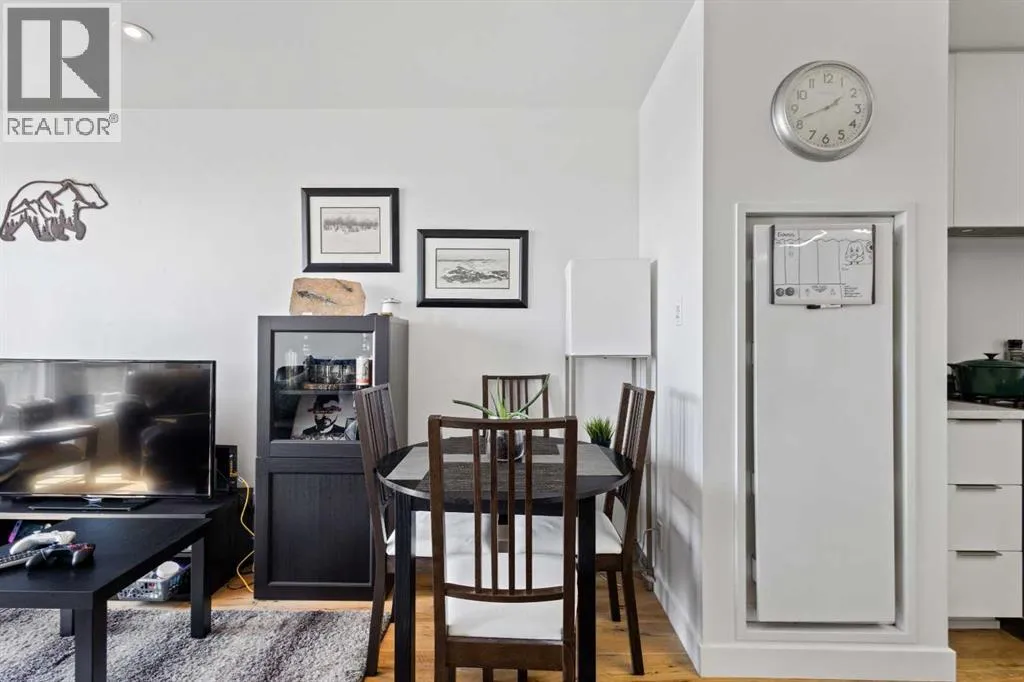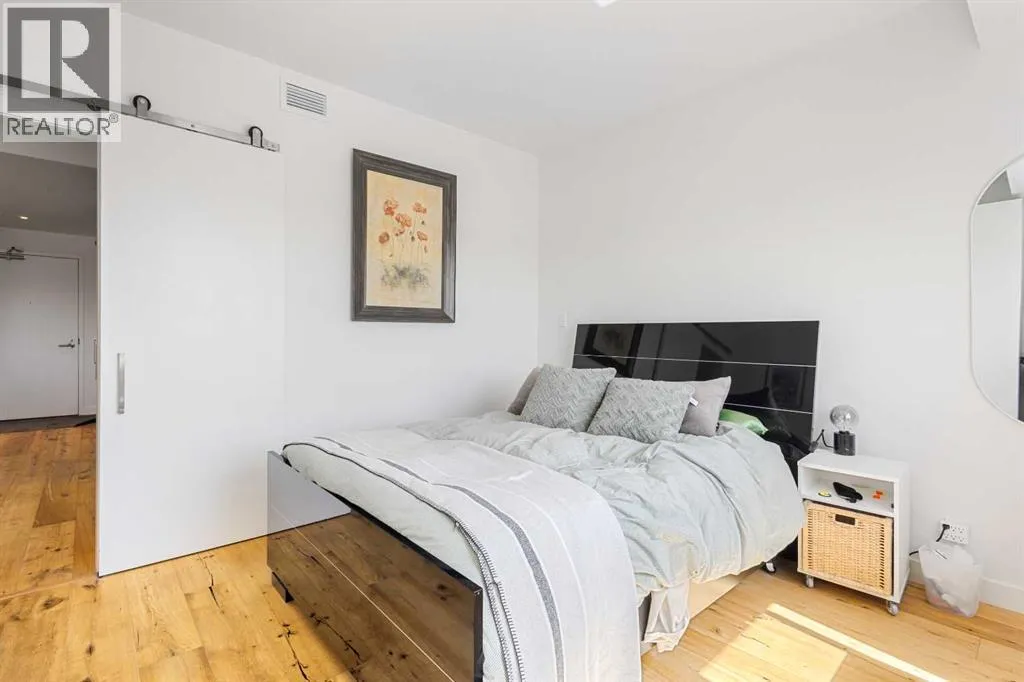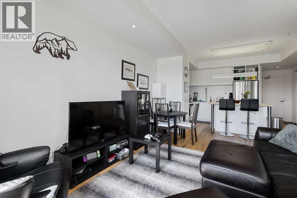 Welcome to the sought-after Sobow building, where modern urban lifestyle meets unbeatable downtown convenience. This beautifully maintained 1-bedroom plus spacious den unit offers exceptional comfort, functionality, and style.Step inside to find an upgraded kitchen featuring high-end finishes and appliances, complemented by stunning hardwood flooring that flows throughout the living space. Enjoy the privacy of a well-designed layout with serene views from both the living room and bedroom.Located just minutes from downtown Calgary, this home provides easy access to public transit, premier shopping, dining, and river pathways. With underground parking included, this is urban living at its finest. Building amenities include day-time concierge, well-equipped gym, ownersâ lounge with a billiards table, and a theater room.Don't miss your opportunity to live in one of Calgary's most desirable inner-city communities â book your private showing today! (id:27476)