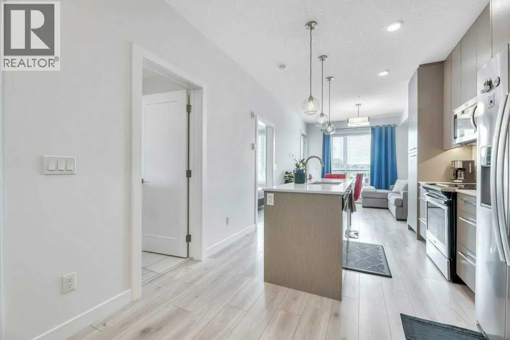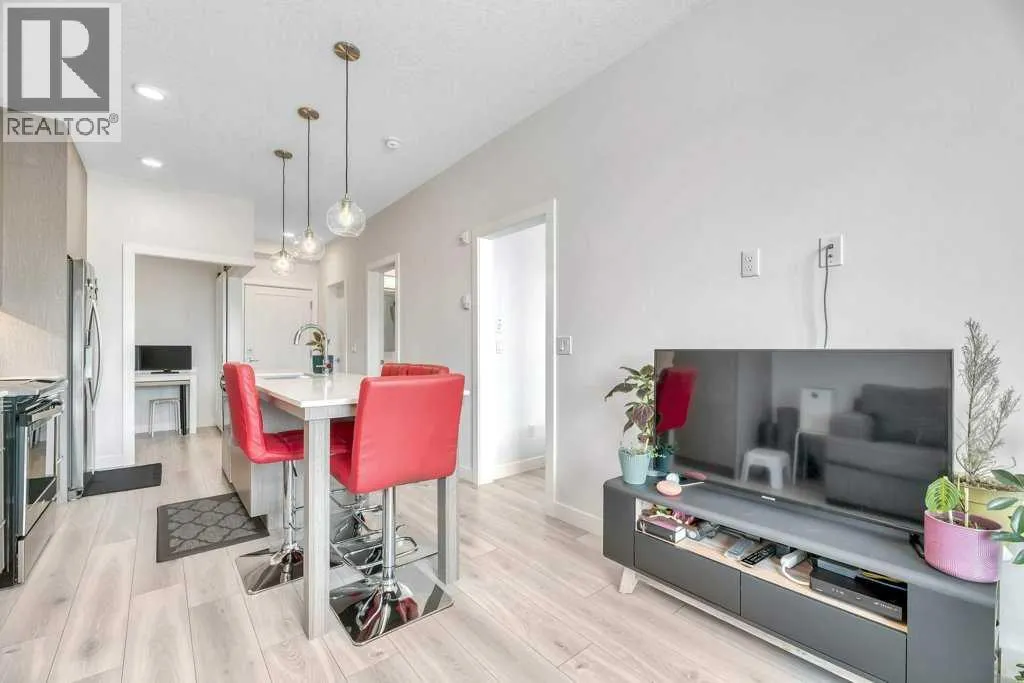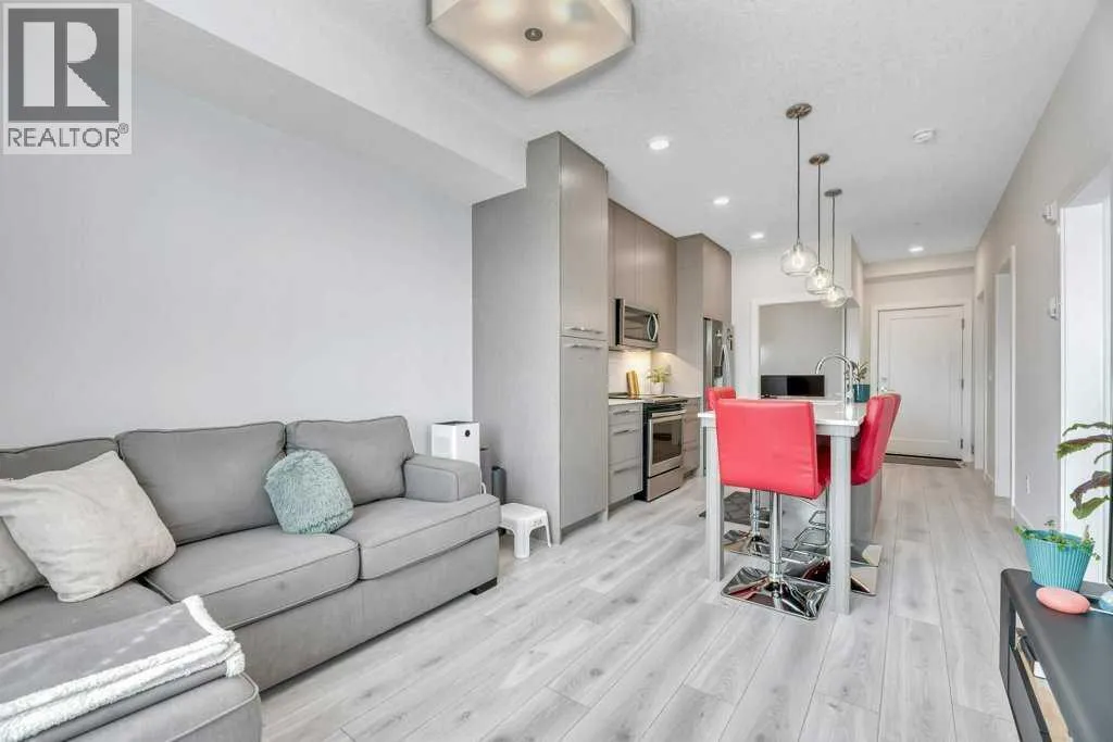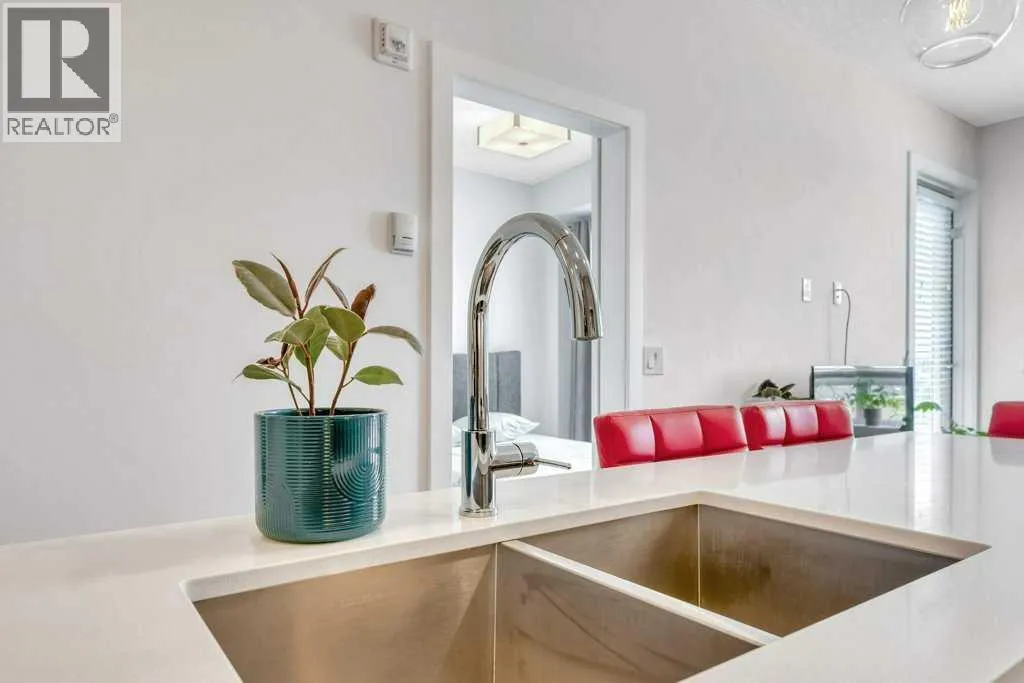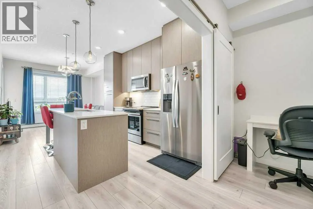 Immaculate, modern, and completely move-in ready, this one-bedroom plus dedicated office condo presents a rare opportunity for homeowners and investors alike. Located on the third floor of a well-managed, amenity-rich complex, this bright and beautifully maintained residence offers a thoughtful layout, stylish finishes, and true turnkey potentialâincluding the option to purchase furnished.The kitchen serves as the heart of the home, featuring quartz countertops, stainless steel appliances, and a large island with integrated table seating, perfect for everyday living, casual dining, or entertaining. The open-concept living area is both comfortable and functional, seamlessly connecting to a covered balcony with gas BBQ hookup, extending your living space outdoors.The spacious primary bedroom includes a walk-through closet with direct access to the well-appointed 4-piece bathroom, while the dedicated office provides ideal flexibility for working from home, accommodating guests, or additional storage. A full laundry room adds practicality rarely found in condo living.Additional highlights include an oversized titled underground parking stall, well suited for larger vehicles, along with a conveniently located private storage cage. The pet-friendly and AirBnB-friendly building offers exceptional amenities including a fully equipped fitness centre, yoga studio, spin room, dog wash, and community garden, enhancing both lifestyle appeal and investment potential.Ideally situated near the airport and surrounded by a growing selection of shops, restaurants, and everyday conveniences, this property offers an outstanding blend of comfort, location, and long-term value. Whether you are a first-time buyer, downsizer, or investor seeking a turnkey short-term rental opportunity, this condo is ready to impress. (id:27476)