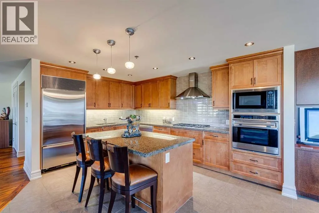 Experience elevated living in one of Calgaryâs most exclusive and highly sought-after luxury developments. Princeton Grand is synonymous with prestige, privacy, and uncompromising quality â an iconic Eau Claire address reserved for a discerning few.Arrive via your private, direct-to-suite elevator into this exceptional northwest corner residence. Floor-to-ceiling windows frame breathtaking views of the Bow River and the architectural elegance of the Peace Bridge, while natural light enhances the homeâs refined finishes and expansive proportions.Designed for sophisticated entertaining and effortless comfort, the open-concept layout features grand living and dining areas anchored by a statement gas fireplace and seamless access to a spacious covered terrace. The chef-inspired kitchen showcases premium stainless steel appliances, a five-burner gas range, professional hood fan, built-in oven and microwave, rich granite countertops, custom soft-close cabinetry, and an oversized island ideal for hosting. A separate family/great room with custom fireplace offers flexibility for a private lounge or executive home office.The primary suite is a luxurious retreat, complete with a fully renovated, spa-calibre ensuite featuring heated floors, a freestanding soaker tub, dual vanities, glass shower, and a custom walk-in closet with tailored built-ins. A generous guest bedroom includes its own private ensuite, ensuring comfort and privacy for visitors.Additional features include a dedicated laundry room with storage, two titled underground parking stalls, and a secure titled storage locker.Residents enjoy a curated collection of world-class amenities: 24-hour concierge service, elegant guest suites, a temperature-controlled wine tasting room with private lockers, state-of-the-art fitness centre and yoga studio, steam room and sauna, ownersâ lounge with full kitchen, underground car wash bay, and a dedicated freight elevator.Perfectly positioned in the heart of Eau Clair e, steps from Prince's Island Park, the Bow River pathways, fine dining, boutique shopping, and downtown. The iconic Peace Bridge, Kensington, LRT, and +15 network are all within walking distance.This is more than a residence â it is a statement in luxury urban living. Welcome home. (id:27476)