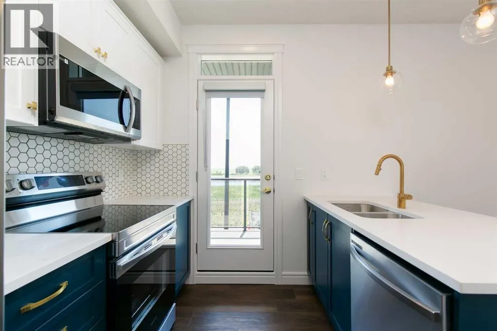 2 BEDROOM TOWNHOUSE WITH NEARLY 20-FT DEEP ATTACHED GARAGE, DRIVEWAY PARKING & LARGE STORAGE SPACE IN SETON. Stylish modern home with low condo fees, a covered balcony with BBQ gas line, and steps to South Health Campus, YMCA, shopping, restaurants, and everyday amenities.Welcome to this beautifully designed 2-bedroom, 2.5-bathroom townhouse in the heart of Seton, offering the perfect combination of modern finishes, functional living space, and low maintenance convenience. Whether you're a first time buyer, downsizer, or investor, this home delivers outstanding value in one of Calgaryâs fastest growing communities.The bright open concept main floor features 9-foot ceilings, durable laminate flooring, and a stunning designer kitchen complete with quartz countertops, two-tone cabinetry, soft-close drawers, breakfast bar seating, and sleek Samsung stainless steel appliances. The striking blue cabinetry with gold hardware adds a refined and upscale touch. A convenient main-floor laundry area and 2-piece powder room enhance everyday functionality.Upstairs youâll find two spacious bedrooms, including a primary suite with a private 4-piece ensuite, an additional full bathroom, and a versatile desk nook perfect for working from home.Enjoy your covered balcony with BBQ gas line, plus the rare convenience of an oversized attached garage with extra storage and additional driveway parking, highly desirable features that set this townhome apart.With low condo fees and a location surrounded by rapid growth, this property offers excellent long-term potential. Seton continues to expand with major amenities including the South Health Campus, YMCA, Superstore, Cineplex, restaurants, and the future Green Line LRT station nearby â a major infrastructure project expected to further enhance accessibility and future value.Located in the heart of Seton and steps from everyday amenities, this is an incredible opportunity to own a stylish home in one of Calgaryâs most vibrant and fastest growing communities. (id:27476)