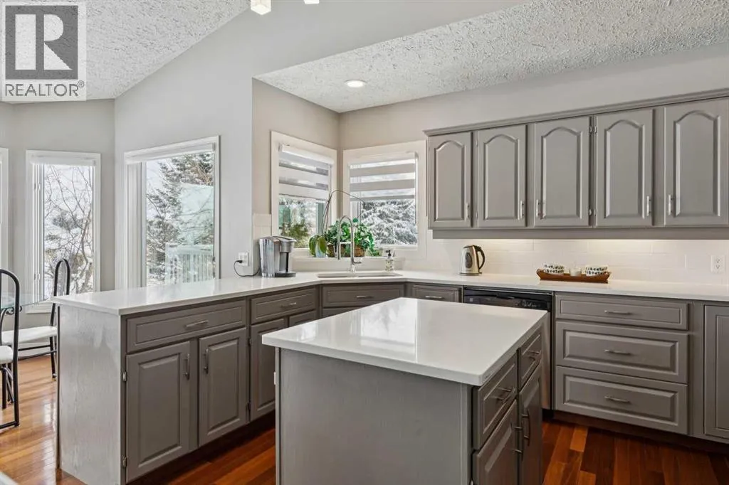 Welcome to the prestigious estate enclave of Scenic Acres, where unobstructed south-facing views stretch across COP, mature treetops, and endless sky what the owners fondly call their âcruise ship view.â From vibrant sunrises to breathtaking sunsets, the colors are extraordinary. Enjoy watching the deer in the neighbor's yard  from the bedroom window. Great for bird watching as birds gather in the trees, and a quiet tree-lined pathway behind the home adds to the peaceful, nature-inspired setting all while being tucked into a desirable cul-de-sac. Offering nearly 4,000 sq ft of beautifully developed living space and Brazilian hardwood, this fully updated walkout bungalow blends warmth and openness. Vaulted ceilings and new triple-pane skylights flood the main level with natural light, enhancing the bright, open design. Expansive windows showcase the majestic south view from nearly every room. The living room is anchored by an elegant gas fireplace, creating the perfect space to unwind on cold evenings. The spacious, well-lit kitchen is designed for gathering and everyday convenience, featuring quartz countertops, premium appliances, generous pantry storage, and seamless flow into the dining and living areas. Whether hosting dinner parties or enjoying quiet mornings, this space delivers. The master bedroom offers a peaceful and private retreat with a luxurious ensuite and two large closets. There is a flex room on the main floor that could function as a bedroom but currently is utilized as a pantry featuring shelving and seasonal storage. The fully developed walkout lower level is just as bright and inviting, offering additional bedrooms, a large recreation and games are perfect for playing pool, ping pong and Wii games. One of the bedrooms is presently functioning as a quiet office providing an ideal environment for working from home and holding zoom meetings. You will appreciate the well-organized laundry room with cabinetry and folding space. An added bonus is the great storage areas in the basement . The rebuilt deck overlooks the private south yard perfect for 3 season barbecues and soaking in the view. The long driveway comfortably accommodates multiple vehicles, complemented by recent concrete improvements and a double garage with an insulated door and epoxy flooring.  Extensive mechanical and structural upgrades have been completed in recent years, including major systems, roofing, skylights, water line, and more - providing exceptional peace of mind for the next owner. This is a rare combination of panoramic views, mature surroundings and walkout design, all in one of NW Calgaryâs most sought-after estate communities. Please refer to the detailed upgrades feature sheet for a full list of improvements totaling over $100k. (id:27476)