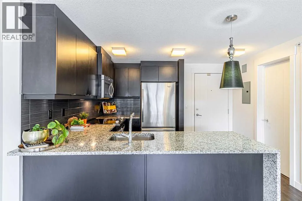 Welcome home to Valmont in prestigious Aspen Woods Community! Step inside to discover a beautifully appointed interior, featuring 5 pristine stainless-steel appliances, with lots of cabinets, luxurious granite kitchen countertop. The stunning one bedroom and one bathroom condo unit faces SW direction, spacious and bright. The open living area has fashionable vinyl plank floors and 4pc bathroom with heated floor, French doors which leads to your private balcony with gas barbecue hookup, perfectly blends modern elegance with unbeatable convenienceâjust a few minute drive to the 69th Street LRT Station. Enjoy an effortless lifestyle with a vibrant shopping centre only a short few minute walk away, offering everything from a pharmacy and banks to popular restaurants and a large grocery store. Unwind on your serene, courtyard facing balconyâyour own private retreat from the day. The unit is complete with heated underground parking space with secure remote access and a personal storage locker, delivering comfort, style, and peace of mind all in one great package. (id:27476)
