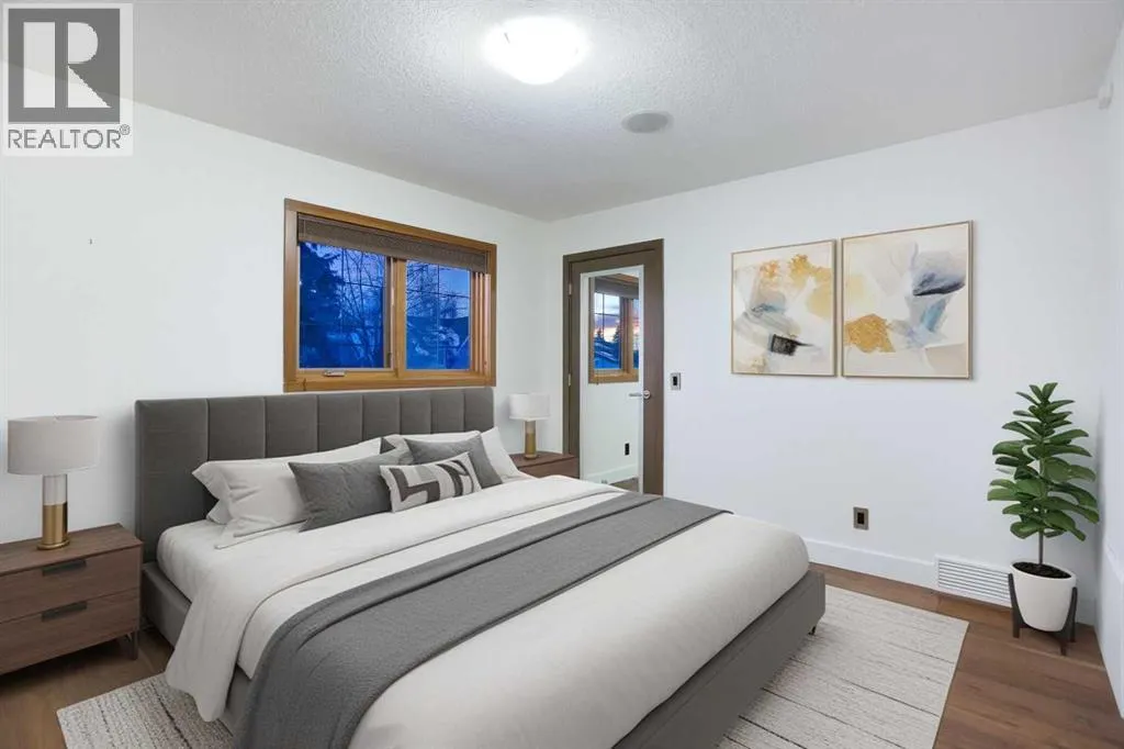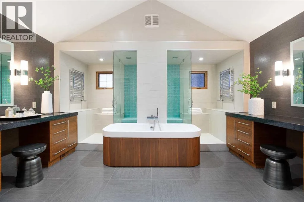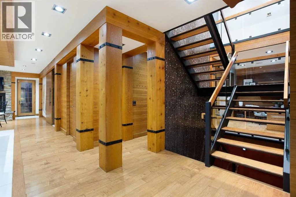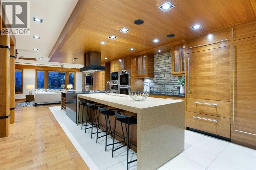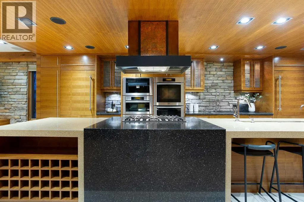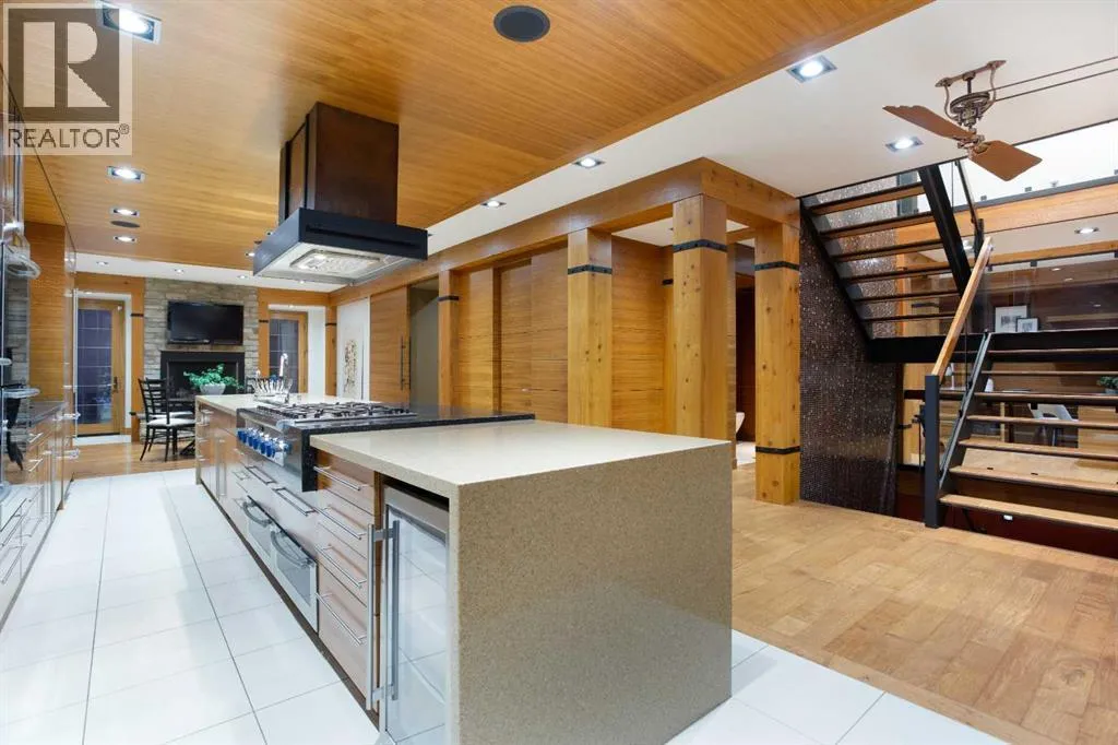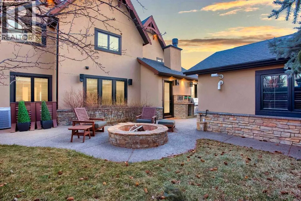 Positioned on prestigious Crescent Road, this exceptional custom residence offers a rare combination of timeless design, refined craftsmanship, and breathtaking views of Calgaryâs downtown skyline and the Bow River valley. Created to showcase its remarkable setting, the home features expansive windows, premium finishes, and thoughtfully designed spaces that elevate everyday living and entertaining.The main level is bright and inviting with an open concept layout anchored by a chefâs kitchen appointed with premium appliances, including a gas cooktop, double wall ovens, warming drawers, generous counter space, and a built in coffee station. The kitchen flows seamlessly into the living room and is steps from the formal dining room, both capturing stunning skyline views. A private media room, along with a spacious office and library, completes the main floor with excellent flexibility for family life and hosting.Upstairs, the primary retreat is a true sanctuary featuring vaulted ceilings, a fireplace, and commanding views of downtown and the river valley. A large walk through closet leads to a spa inspired ensuite with double vanities, a soaker tub, and a steam shower. Two additional bedrooms, each with their own walk in closets, share a well finished bathroom with double vanity and steam shower. A generous upper level den with built in desk and shelving, gas fireplace, and sun filled south facing windows provides an ideal office or lounge and may also be suitable for conversion to a fourth upstairs bedroom.Designed with both entertaining and automotive enthusiasts in mind, the lower level features a striking showroom style garage that may also be ideal as a home gym or flex space. This level is completed by a recreation room, games area, wet bar, full bathroom, and a dedicated wine room.The exterior showcases classic stone and wood accents, an inviting front porch, and a private, treed backyard oasis with a fire pit, perfect for gatherings. A rare opportunity t o own a truly distinguished residence in one of Calgaryâs most sought after locations, offering exceptional views, craftsmanship, and enduring appeal. (id:27476)