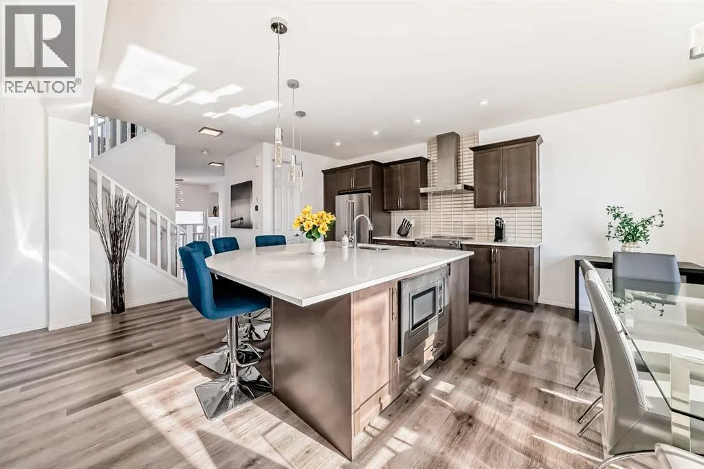 ~ OPEN HOUSE ~ 2:00-4:00pm Saturday March 14 ~ Welcome to 73 Carrington Circle NW, a beautifully designed detached home offering 2,258 square feet of refined living space in the growing northwest community of Carrington. Built in 2019, this four-bedroom, 3.5-bathroom home stands out for its thoughtful layout and attention to privacy. The open-concept main floor centres around a chefâs kitchen with a stunning quartz island, generous prep space, and a dining area ideal for gathering. Strategic positioning ensures the kitchen and living room are not directly visible to neighbouring homes, creating a comfortable sense of separation. Beautiful hardwood flooring runs throughout, while the gas fireplace and modern finishes add warmth and cohesion. A unique bonus room positioned between the main and upper levels serves as a dedicated games and entertainment space, designed to stay visually connected to the main living area while offering its own defined purpose. Upstairs, the bedrooms are bright and well proportioned, with lovely sunrise views through the feature âyellow window.â The conveniently located laundry room sits just steps from the bedrooms, enhancing everyday functionality. The fully finished basement adds further flexibility with a fourth bedroom and additional storage. Outside, the fully landscaped, zero-maintenance backyard is designed for relaxation and ease, featuring concrete and stonework, a hot tub, and an enclosed gazebo for year-round enjoyment. An oversized double garage and modern façade complete the exterior. Residents of Carrington enjoy access to parks, walking paths, nearby schools, and convenient routes to Stoney Trail and Centre Street, offering a balanced lifestyle with both connectivity and a quiet residential atmosphere. (id:27476)