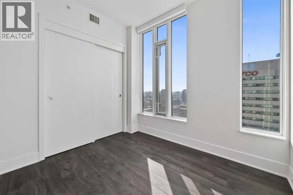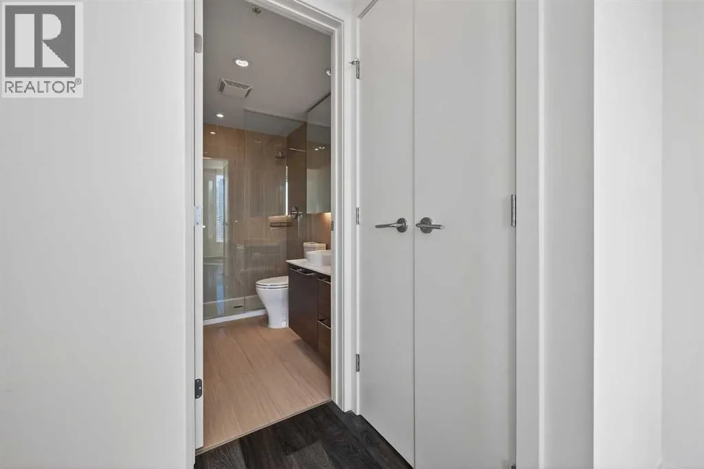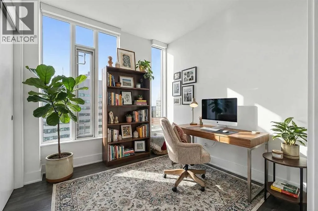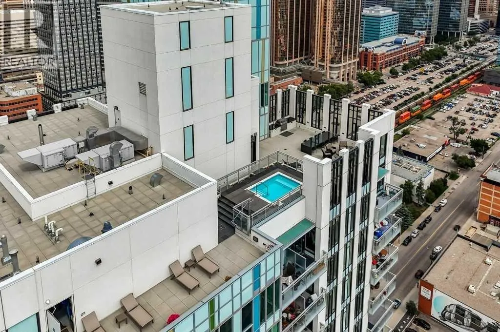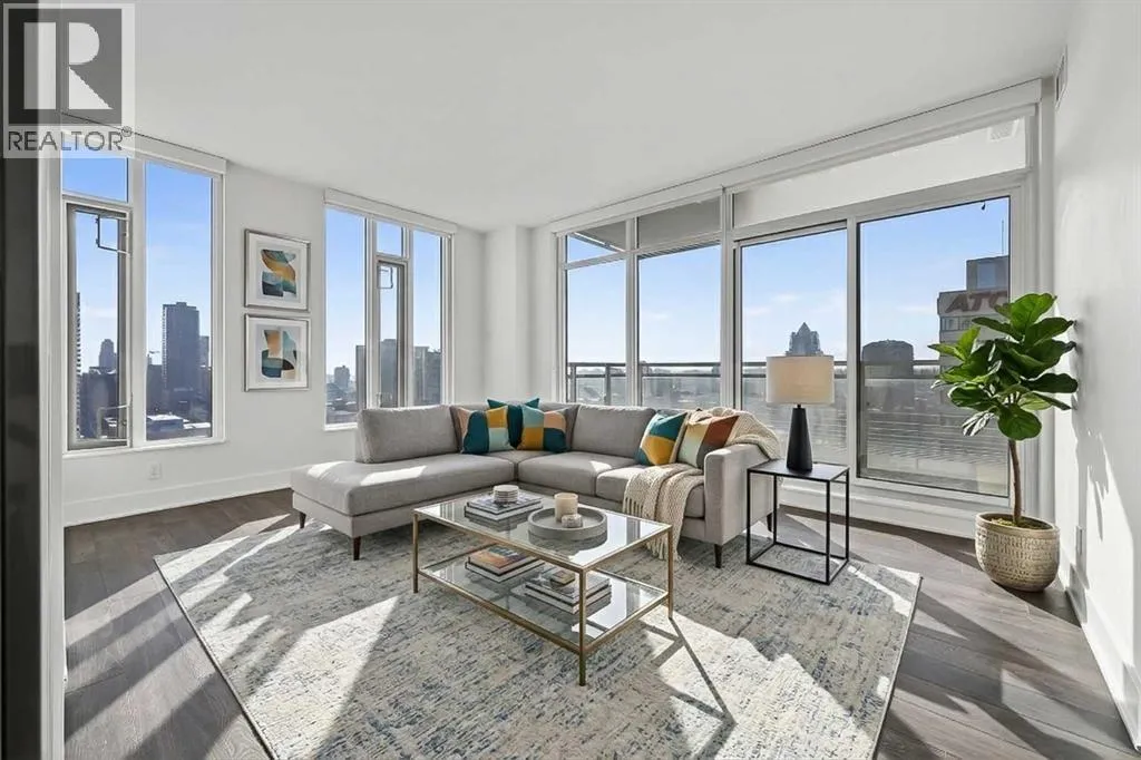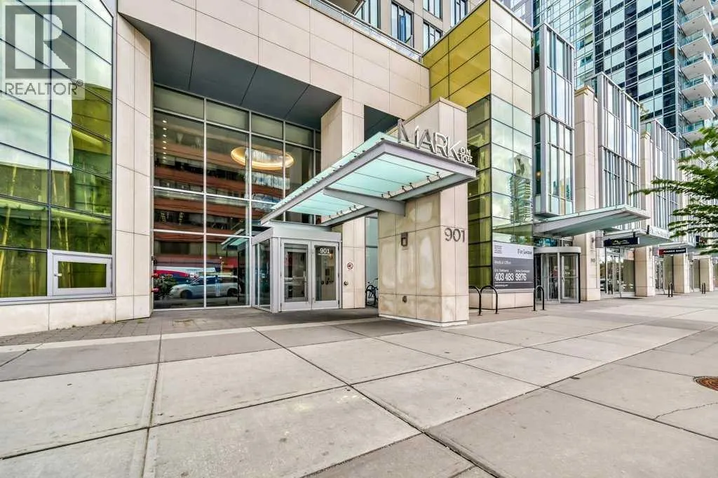 Perched high on the 17th floor of iconic MARK on 10th this spacious 740 sq ft condo has floor-to-ceiling windows with sweeping downtown views. Two bedrooms situated on opposite sides of the main living areas allows for maximum privacy making this layout ideal for shared living or for a dedicated home office. An open living/dining area with covered balcony facing SE is perfect for relaxed evenings. The sleek kitchen features a gas range, built-in stainless steel appliances and a paneled refrigerator. The guest bedroom/office offers great views and easy access to the main 4-piece bathroom while the primary bedroom enjoys it's own 3-piece ensuite. Additional features include in-suite laundry and central air conditioning. Includes 1 titled heated underground parking stall and assigned storage locker. Pet-friendly building and monthly condo fees of $645.57/month include heat, water & sewer. MARK on 10th is known for it's amazing amenities including concierge service, a fully equipped gym, sauna & steam room, resident lounge with kitchen and pool table and a stunning rooftop oasis with hot tub, barbecues, and lounge areas surrounded by panoramic views. Located just steps from transit, Safeway, Community Natural Foods, parks and Calgaryâs premier dining and nightlife destinations. (id:27476)