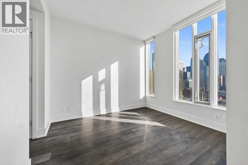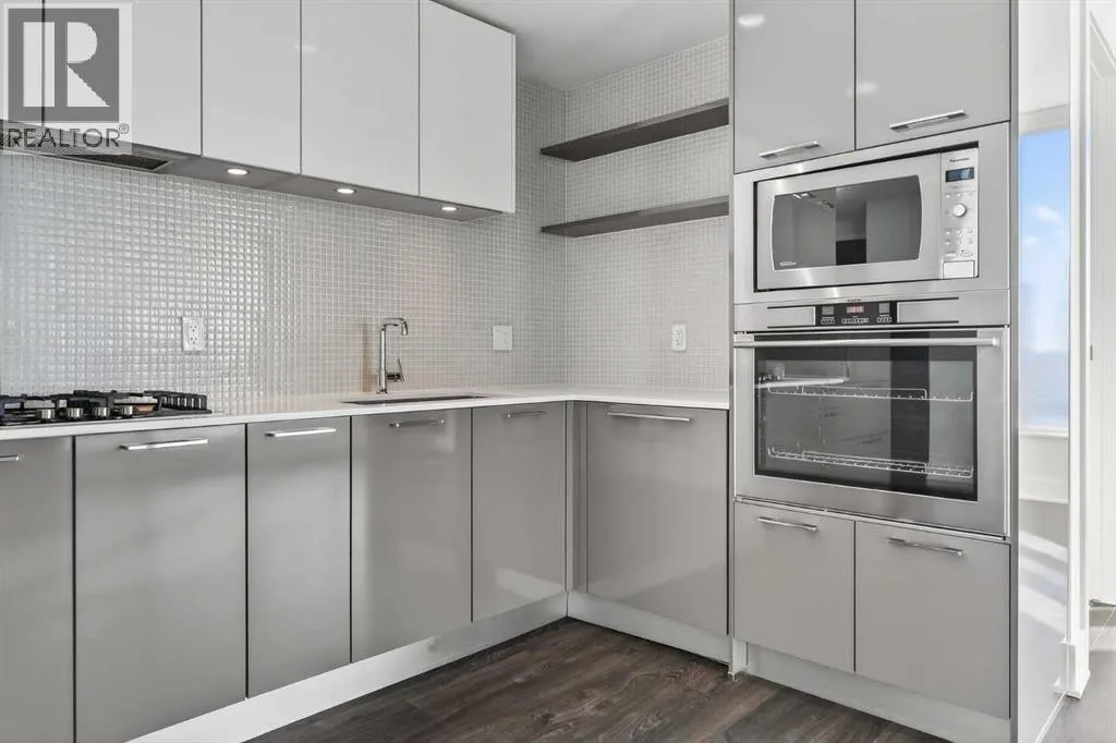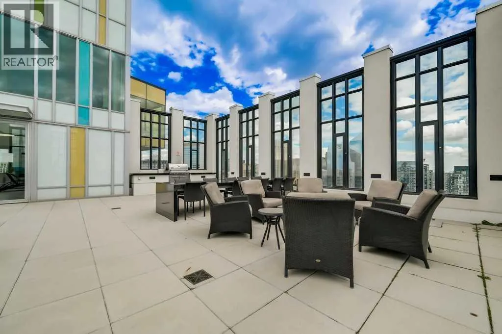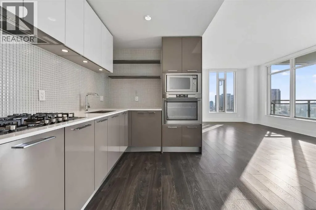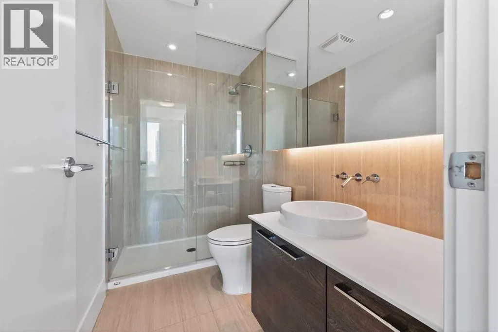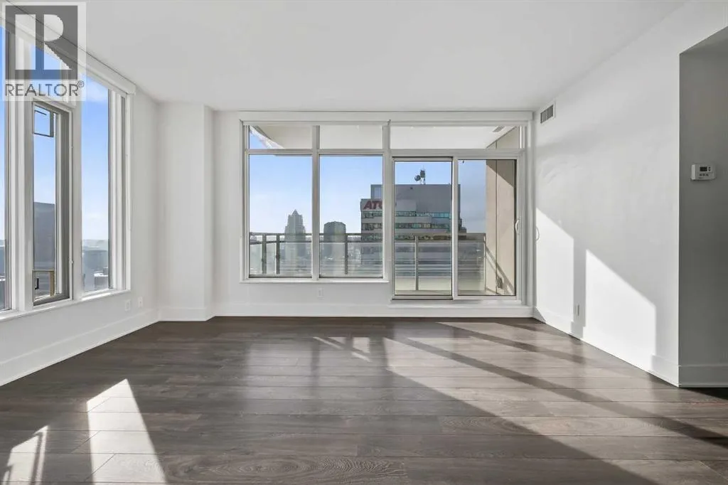 Perched high on the 17th floor of iconic MARK on 10th this spacious 740 sq ft condo has floor-to-ceiling windows with sweeping downtown views. Two bedrooms situated on opposite sides of the main living areas allows for maximum privacy making this layout ideal for shared living or for a dedicated home office. An open living/dining area with covered balcony facing SE is perfect for relaxed evenings. The sleek kitchen features a gas range, built-in stainless steel appliances and a paneled refrigerator. The guest bedroom/office offers great views and easy access to the main 4-piece bathroom while the primary bedroom enjoys it's own 3-piece ensuite. Additional features include in-suite laundry and central air conditioning. Includes 1 titled heated underground parking stall and assigned storage locker. Pet-friendly building and monthly condo fees of $645.57/month include heat, water & sewer. MARK on 10th is known for it's amazing amenities including concierge service, a fully equipped gym, sauna & steam room, resident lounge with kitchen and pool table and a stunning rooftop oasis with hot tub, barbecues, and lounge areas surrounded by panoramic views. Located just steps from transit, Safeway, Community Natural Foods, parks and Calgaryâs premier dining and nightlife destinations. (id:27476)