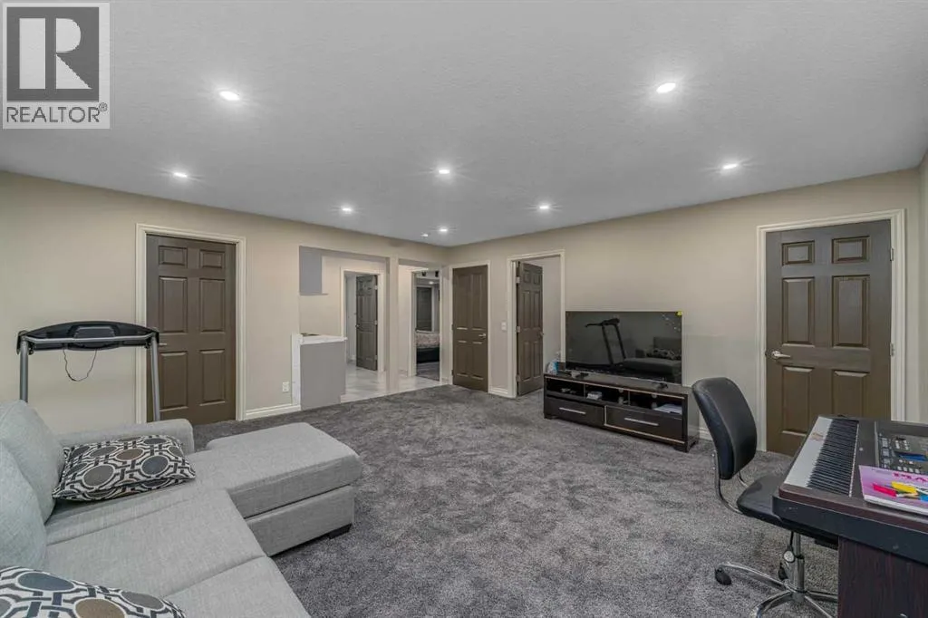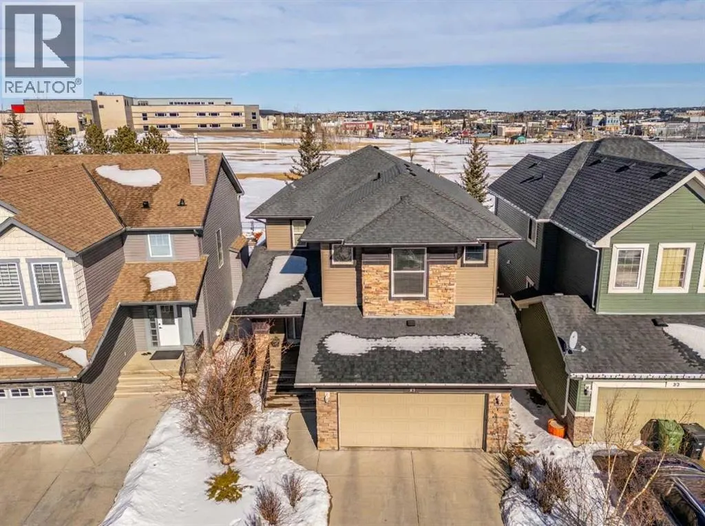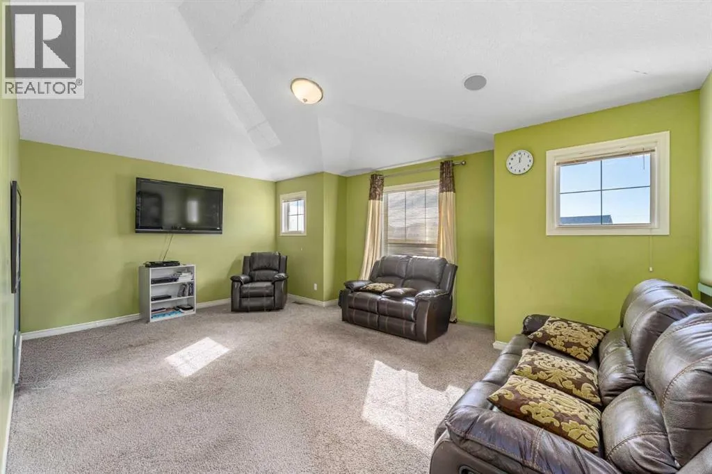 Welcome to a rare opportunity in sought-after Evanston, perfectly positioned with no rear neighbours and uninterrupted views of a massive green space featuring a community park, athletic fields, and baseball diamonds. Families will love being just steps from a brand new middle school opening this September, adding even more convenience to an already exceptional setting. This former Sterling showhome offers 3,394 sq.ft. of beautifully developed living space, designed to impress at every turn. As you step inside, the rich hardwood flooring, soaring ceilings, and abundance of natural light immediately set the tone. The front sitting room greets you first, a versatile space that can easily function as a home office, playroom, or quiet reading retreat. Moving further in, the home opens into a bright and inviting main living area designed for both everyday comfort and entertaining. The spacious kitchen features stainless steel appliances, a pantry, and generous counter space, seamlessly connecting to the dining area surrounded by windows that flood the space with sunlight. The living room is anchored by a cozy gas fireplace, creating a warm focal point for gatherings. A convenient half bath, along with a combined laundry and mudroom leading to the double attached garage, completes the main level with practicality in mind. Upstairs, youâll find a thoughtfully designed layout that balances space and privacy. The large south-facing bonus room with vaulted ceilings is filled with natural light and offers the perfect setting for movie nights or relaxing with family. Two generously sized bedrooms and a full bathroom provide comfortable accommodations, while the primary retreat is a true standout. Vaulted ceilings enhance the sense of space, complemented by a walk-in closet and a well-appointed ensuite featuring dual sinks, a large soaking tub, and a stand-up shower with a corner bench. The fully developed and permitted basement, completed in 2022, expands your living options ev en further. Here youâll find a spacious family room, a convenient kitchenette with wet bar and room for small appliances, two additional bedrooms, a full bathroom, and ample storage throughout. Whether for extended family, guests, or flexible living arrangements, this level adds tremendous value. Additional upgrades include a new furnace installed in 2021 and central air conditioning. Built-in entertainment speakers throughout the main and upper levels enhance the homeâs entertainment appeal. Step outside and enjoy your private backyard oasis backing directly onto green space, an ideal setting for relaxing evenings, summer barbecues, or watching the kids play just beyond your fence. With parks, schools, transit, and shopping all within walking distance and quick access to Stoney Trail, this home delivers the perfect combination of comfort, convenience, and long-term value. (id:27476)