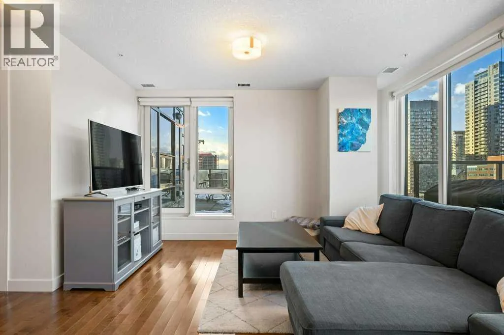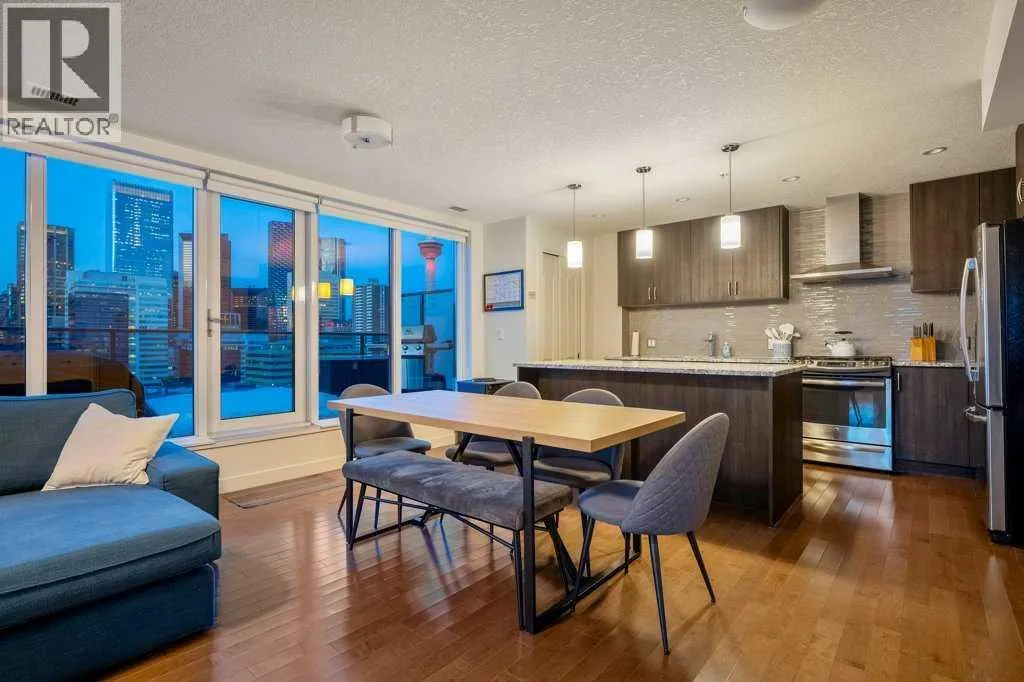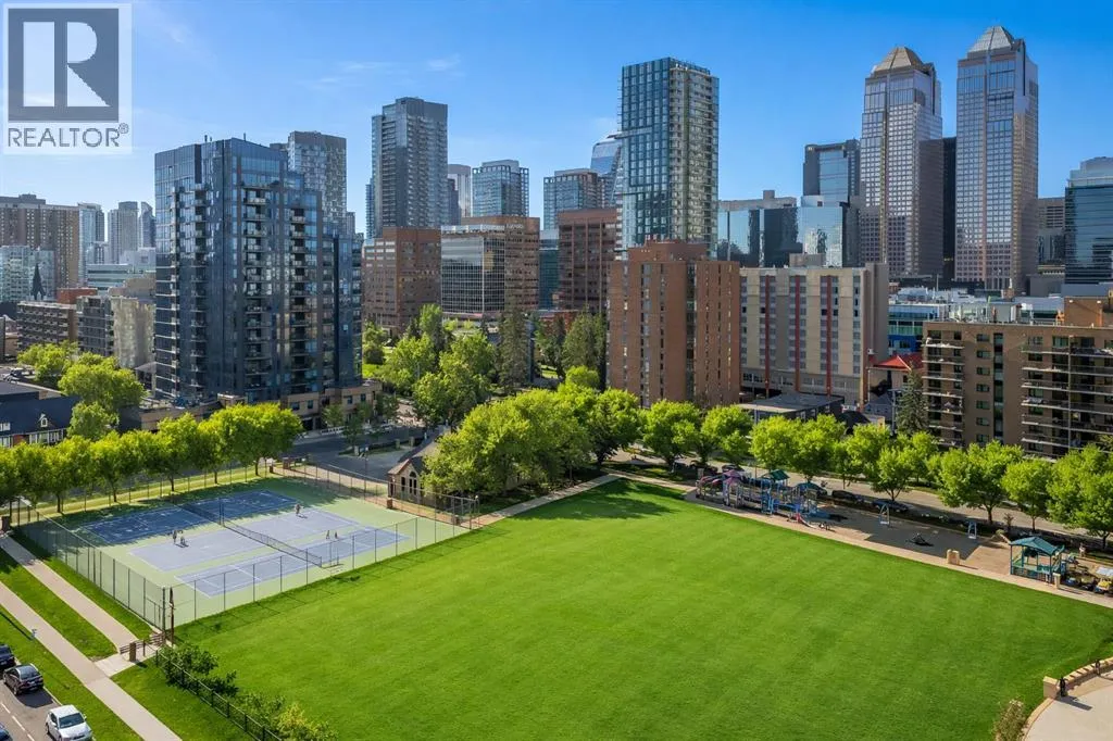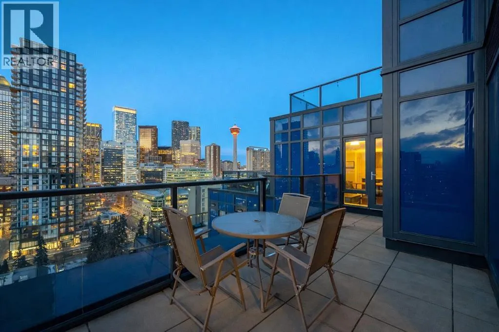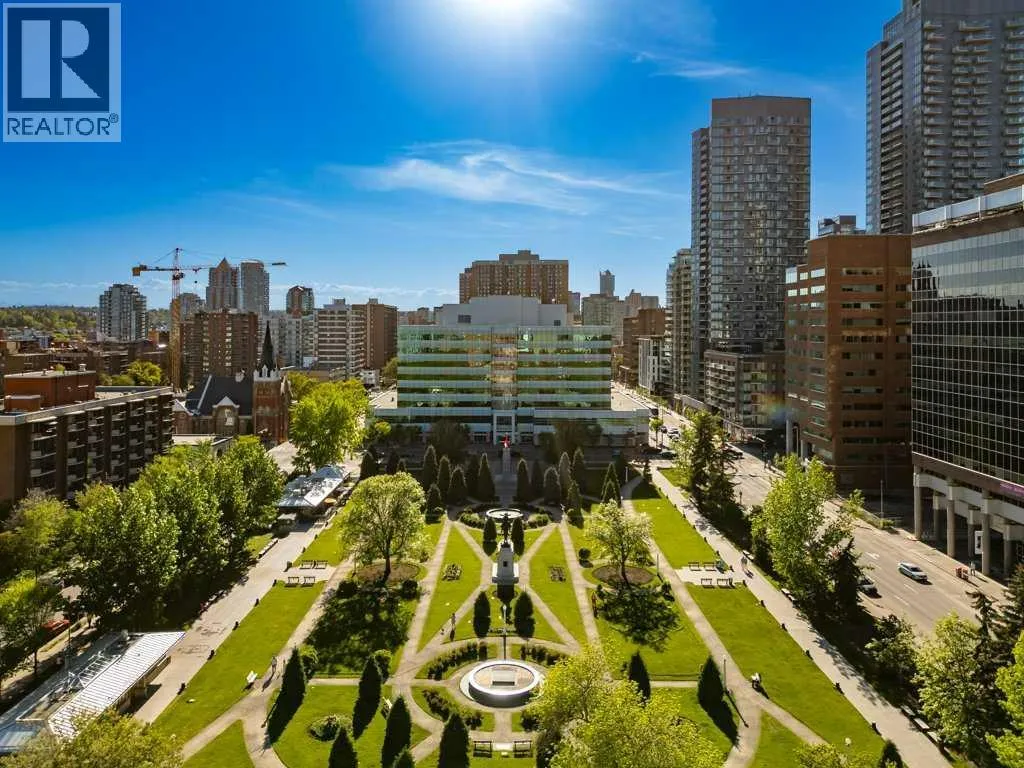 Your front-row seats to the Calgary skyline. A Penthouse feel - without the Penthouse price. Enjoy 2 bedrooms + 2 bathrooms + 2 terraces while overlooking 1 incredible view. From the moment you walk in, the energy is undeniable. Expansive windows flood the open-concept space with natural light while the city becomes your everyday backdrop. The kitchen delivers both style and function: granite counters, stainless steel appliances, gas range, rich espresso cabinetry, pantry storage and a central island designed for gathering. The living room? Equally suited for movie nights or simply watching the lights of downtown come alive - you may find the skyline steals the show. Once you step outside, everything changes. Nearly 500 sqft of outdoor space unfolds across two oversized terraces - a true rarity in urban living. One is perfectly positioned off the primary suite for quiet morning coffee. The other becomes your summer headquarters - entertaining under the glow of Calgaryâs most iconic buildings with friends, laughter and evenings that stretch into the night. The best part about the view? Protected. With Central Memorial Park below, this isnât just beautiful, it secures long-term value. Back inside, the generous primary retreat features a walk-in closet and spa-inspired 5-piece ensuite, while the second bedroom and adjacent full bath create ideal flexibility for guests or those who work from home. The lifestyle perks continue with an underground parking stall, two storage lockers, onsite concierge, fitness facility, guest suite, community garden + shared terrace, visitor parking with EV charging and loading dock convenience. All positioned in one of Calgaryâs most walkable locations - steps to restaurants, cocktail bars, pubs, downtown offices, C-Train access, Stampede grounds and the future arena district. This isn't just a condo - it's a perspective upgrade. Live differently. Live above the city. (id:27476)