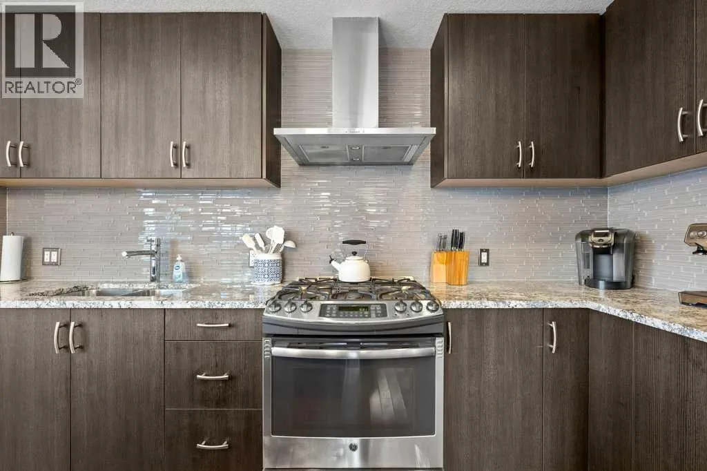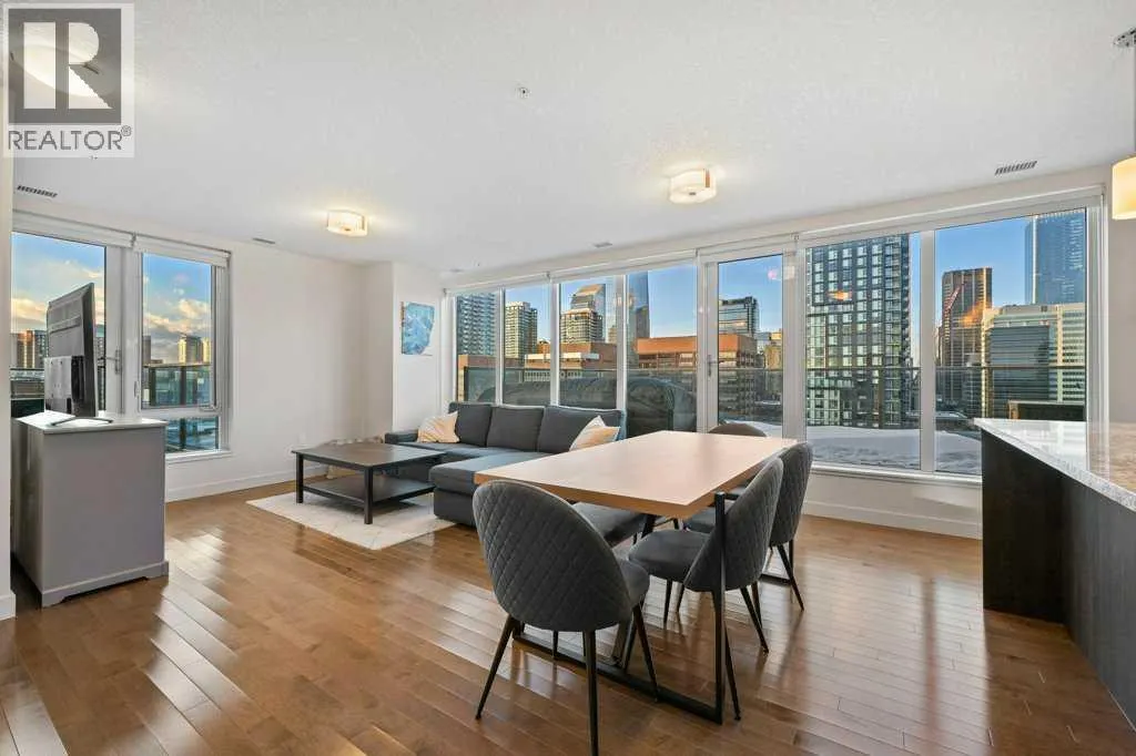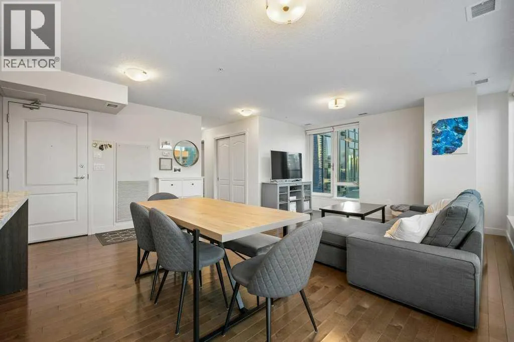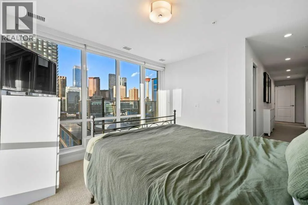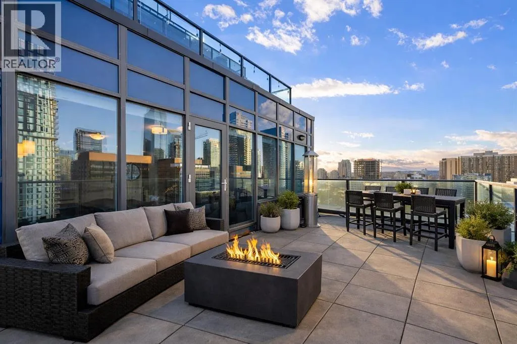 Your front-row seats to the Calgary skyline. A Penthouse feel - without the Penthouse price. Enjoy 2 bedrooms + 2 bathrooms + 2 terraces while overlooking 1 incredible view. From the moment you walk in, the energy is undeniable. Expansive windows flood the open-concept space with natural light while the city becomes your everyday backdrop. The kitchen delivers both style and function: granite counters, stainless steel appliances, gas range, rich espresso cabinetry, pantry storage and a central island designed for gathering. The living room? Equally suited for movie nights or simply watching the lights of downtown come alive - you may find the skyline steals the show. Once you step outside, everything changes. Nearly 500 sqft of outdoor space unfolds across two oversized terraces - a true rarity in urban living. One is perfectly positioned off the primary suite for quiet morning coffee. The other becomes your summer headquarters - entertaining under the glow of Calgaryâs most iconic buildings with friends, laughter and evenings that stretch into the night. The best part about the view? Protected. With Central Memorial Park below, this isnât just beautiful, it secures long-term value. Back inside, the generous primary retreat features a walk-in closet and spa-inspired 5-piece ensuite, while the second bedroom and adjacent full bath create ideal flexibility for guests or those who work from home. The lifestyle perks continue with an underground parking stall, two storage lockers, onsite concierge, fitness facility, guest suite, community garden + shared terrace, visitor parking with EV charging and loading dock convenience. All positioned in one of Calgaryâs most walkable locations - steps to restaurants, cocktail bars, pubs, downtown offices, C-Train access, Stampede grounds and the future arena district. This isn't just a condo - it's a perspective upgrade. Live differently. Live above the city. (id:27476)