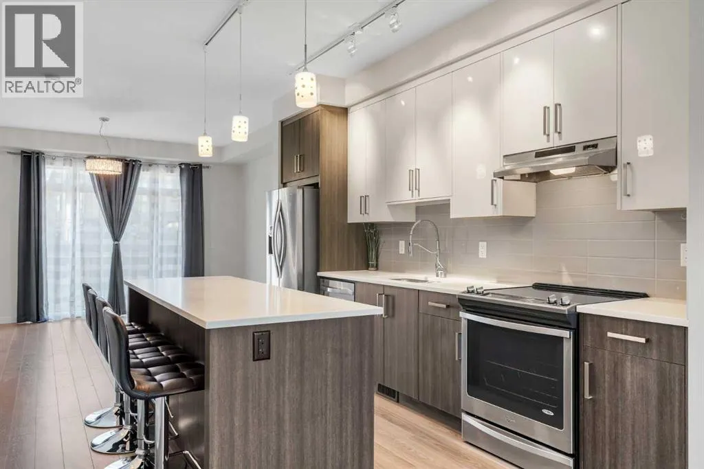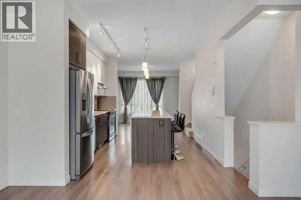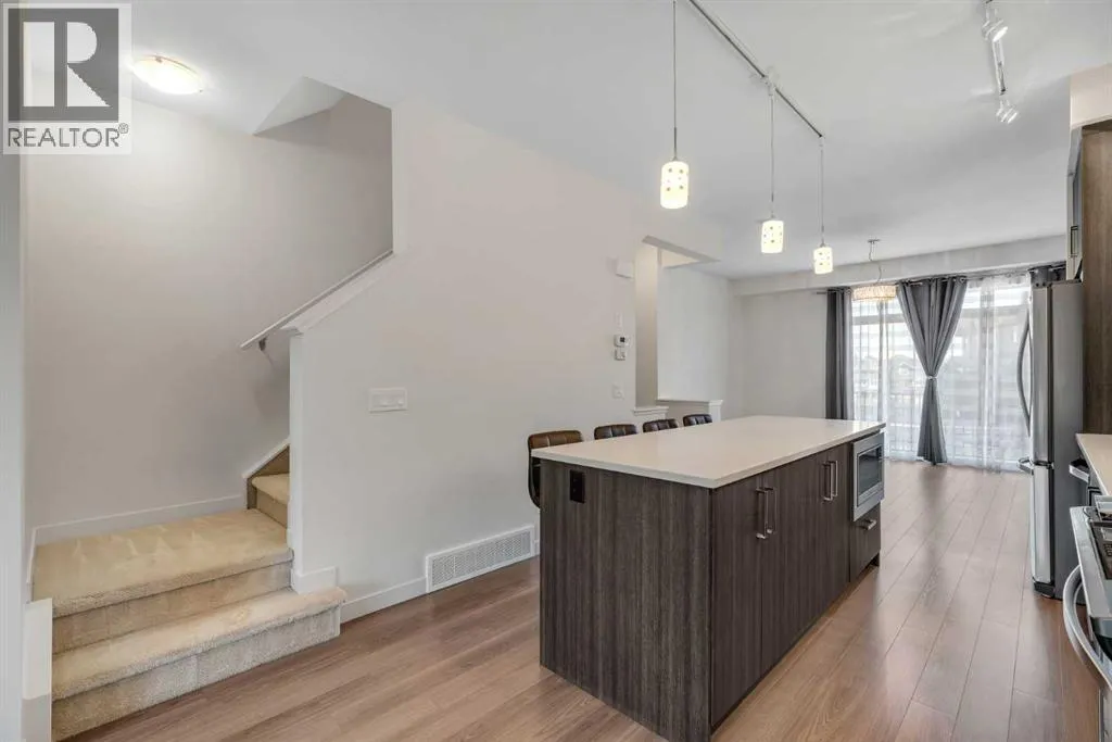 Experience the perfect blend of style and lifestyle in this stunning 1,575 sq. ft. townhome, perfectly positioned in a vibrant, family-oriented community. Location is everything, and here you are literally steps from Blessed Marie-Rose School and only minutes from the premium shopping and dining of Costco, T&T, H-Mart, and Beacon Hill Shopping Centre. With effortless access to Stoney Trail, your morning commute just became the easiest part of your day.Step inside to a bright, open-concept main floor defined by soaring 9-foot ceilings and a flood of natural light. The chef-inspired kitchen is the heart of the home, featuring a sleek center island with an eating bar, polished quartz countertops, and a premium stainless steel appliance packageâincluding a gas stove. Whether youâre hosting a dinner party or enjoying a quiet family meal, the space flows seamlessly to a private balcony with a gas hookup, perfect for summer grilling. A convenient 2-piece powder room completes this level, ensuring the space is as functional as it is beautiful.The upper level is a true sanctuary. The spacious primary suite offers a double-closet layout and a private 4-piece ensuite with quartz finishes. Two additional well-appointed bedrooms provide ample space for children or guests, served by a second 4-piece bath and the ultimate modern "must-have": upper-level laundry.On the entrance level, discover the versatility your lifestyle demands. This floor features a dedicated home office or private gym space with direct access to an extra-deep single attached garage. This isnât just a parking spotâitâs a storage solution with room for a workbench, bikes, and seasonal gear. From the thoughtful layout to the move-in-ready finishes, this home offers outstanding value for growing families and first-time buyers alike. Welcome home. (id:27476)