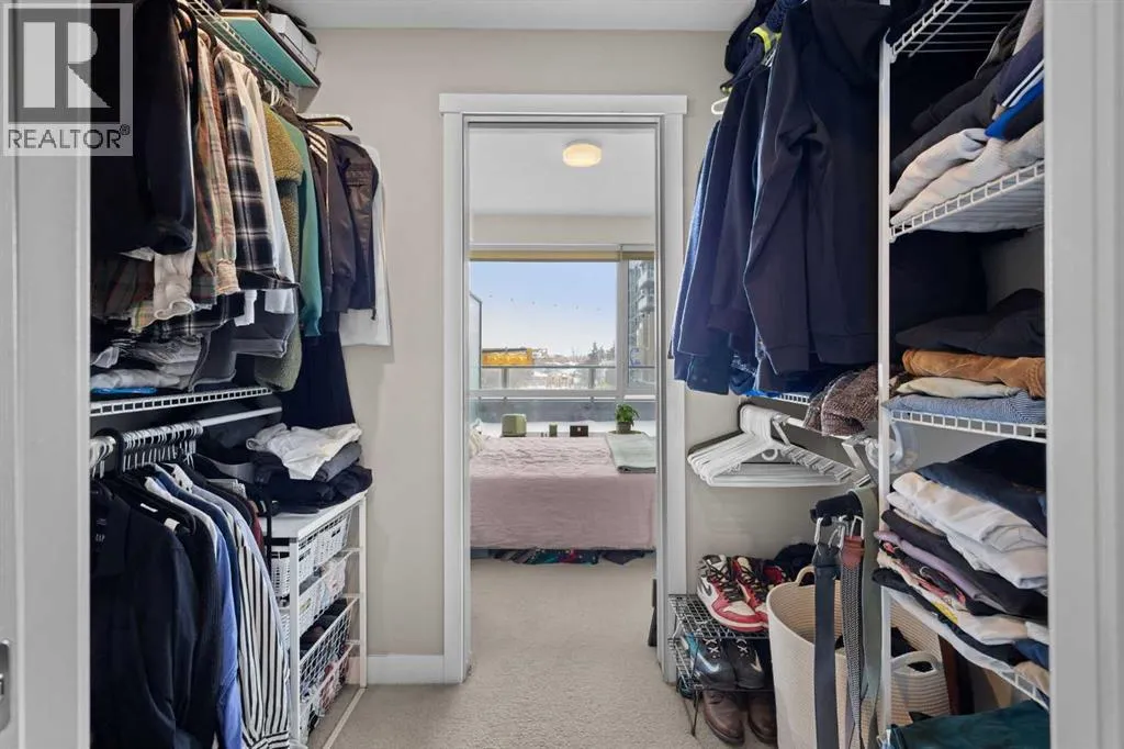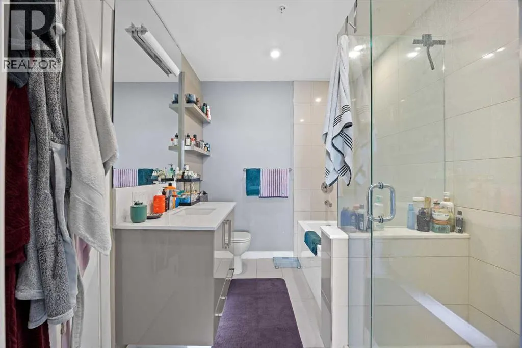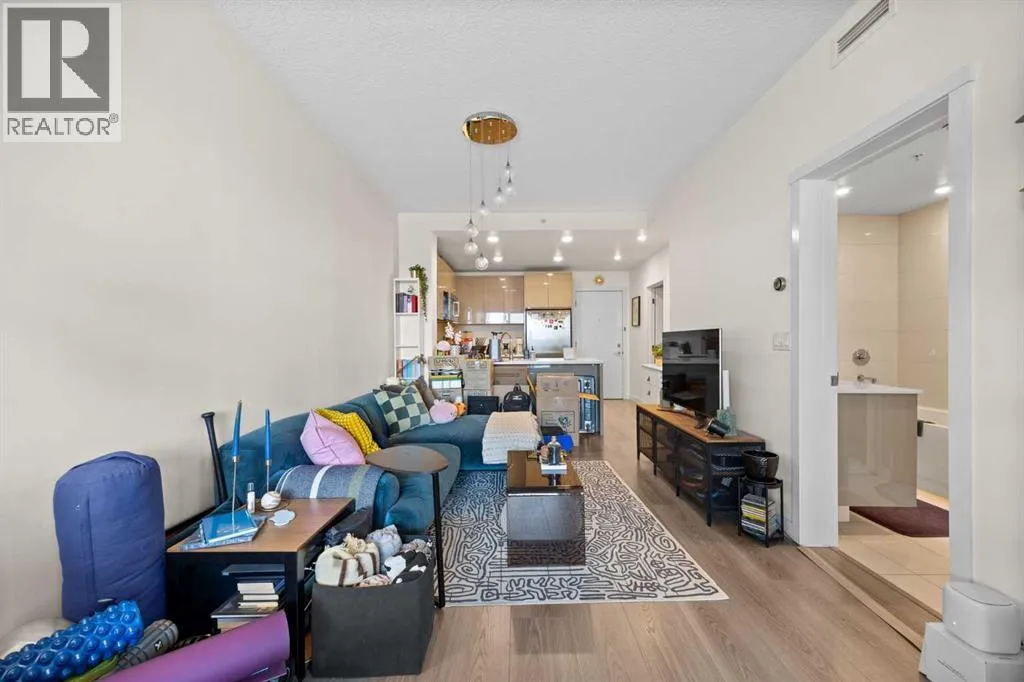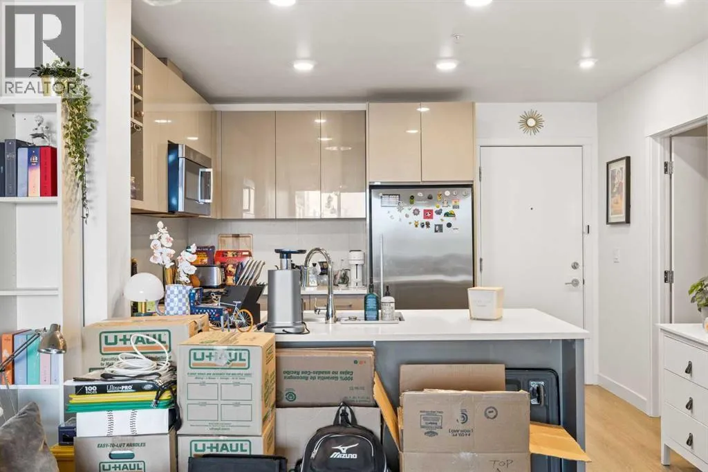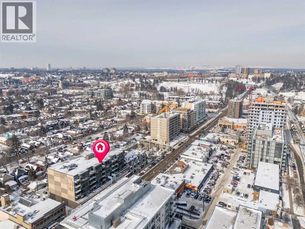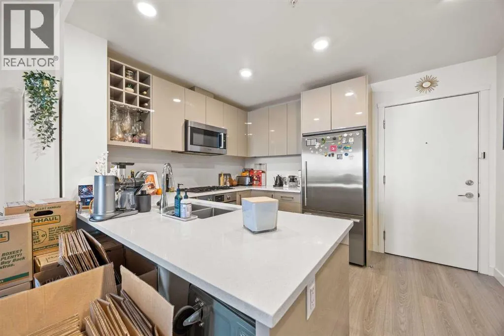 Welcome to urban living at its finest in The Kensington, ideally located in the vibrant community of Hillhurst. This beautifully appointed 1-bedroom, 1-bathroom unit showcases modern finishes and an open-concept layout designed for both comfort and functionality. The stunning U-shaped kitchen features high-gloss cabinetry, excellent counter space, a built-in wine rack, and premium stainless steel Bosch appliances, including a gas stove, perfect for those who love to cook and entertain. The kitchen seamlessly opens to the bright living/dining area, offering flexibility for adding a home office setup or a sunny reading nook. Step outside to your spacious private south facing balcony, complete with a convenient BBQ gas line, ideal for entertaining or relaxing evenings at home. The generous primary bedroom offers a large walk-through closet with thoughtfully designed shelving for maximum organization and direct access to the elegant 4-piece bathroom. Enjoy luxury touches including a deep soaker tub, glass surround stand up shower, large vanity with ample storage, built-in shelving, and a cheater door providing convenient access from the main living space. Additional highlights include a dedicated laundry room near the entrance with side by side washer and dryer with extra storage space and an additional front closet area. Central air conditioning ensures year round comfort and this unit also comes with one TITLED underground parking stall and an assigned storage locker, an added bonus that is priceless with condo living. Additionally the building also offers a residents car wash and bike storage! Residents will love the unbeatable location with retail amenities right on the main floor, including Orange Theory Fitness and a café, plus just a 5-minute walk to Sunnyside LRT station. Enjoy quick access to the Bow River pathways, downtown core, and the countless shops and restaurants that make Kensington one of Calgaryâs most sought-after neighbourhoods. This is a rare oppor tunity to own a sophisticated home that perfectly blends luxury, convenience, and that unbeatable inner city lifestyle. (id:27476)