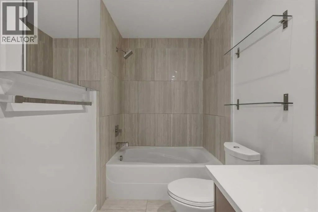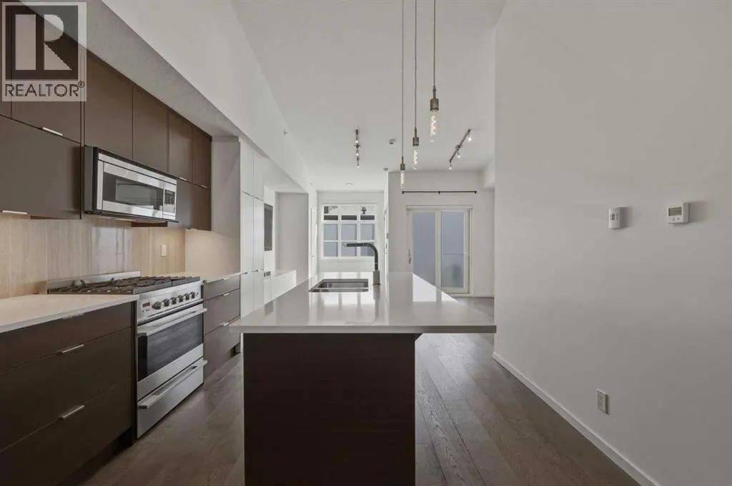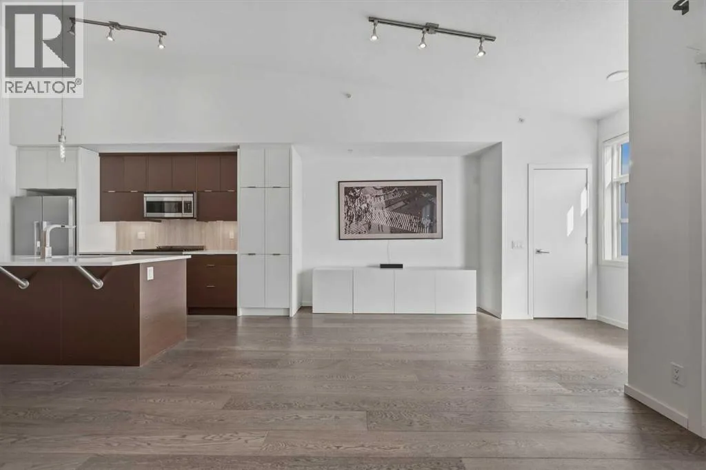 Lower Mount Royal â #433, 1719 9A Street SW: - New Price !! - Welcome to The Block built by Avi Urban. This modern, TOP FLOOR unit offers 612 sq ft of living space plus a 99 sq ft loft (not included in measurements due to ceiling height), 1 bedroom, 1 bathroom, and titled underground parking. The bright entry opens to a vaulted living area with room for both living and dining, along with sliding doors leading to the patio overlooking the courtyard. The kitchen features quartz countertops, tile backsplash, a pantry, and stainless steel appliances, including a gas range, fridge, dishwasher, and microwave. The impressive 13-foot ceiling height in the primary bedroom has been transformed into a unique lofted feature designed by Calgaryâs Studio North, creating a space that is both practical and distinctive. Thoughtfully redesigned, the bedroom offers a flexible layout with a walk-in closet, home office/fitness space on the main level, complemented by the private lofted sleeping area. Additional highlights include hardwood flooring throughout, in-suite laundry, air conditioning, and separate storage in the underground parkade. Ideally located in the vibrant community of Lower Mount Royal, just half a block from the energy of 17th Avenue, this home offers an exceptional walkable lifestyle with shops, restaurants, cafes, amenities, and public transit all just steps from your door. This cool, unique space is a must-see. Turn key with quick possession available. (id:27476)