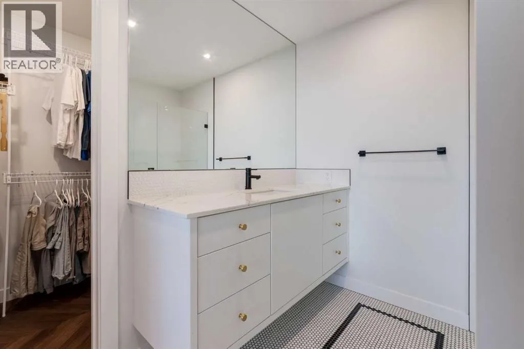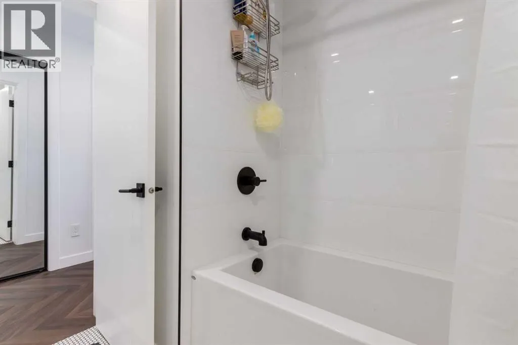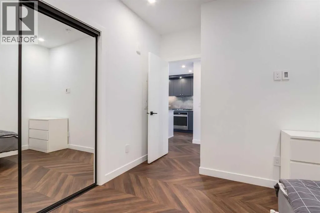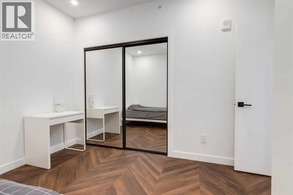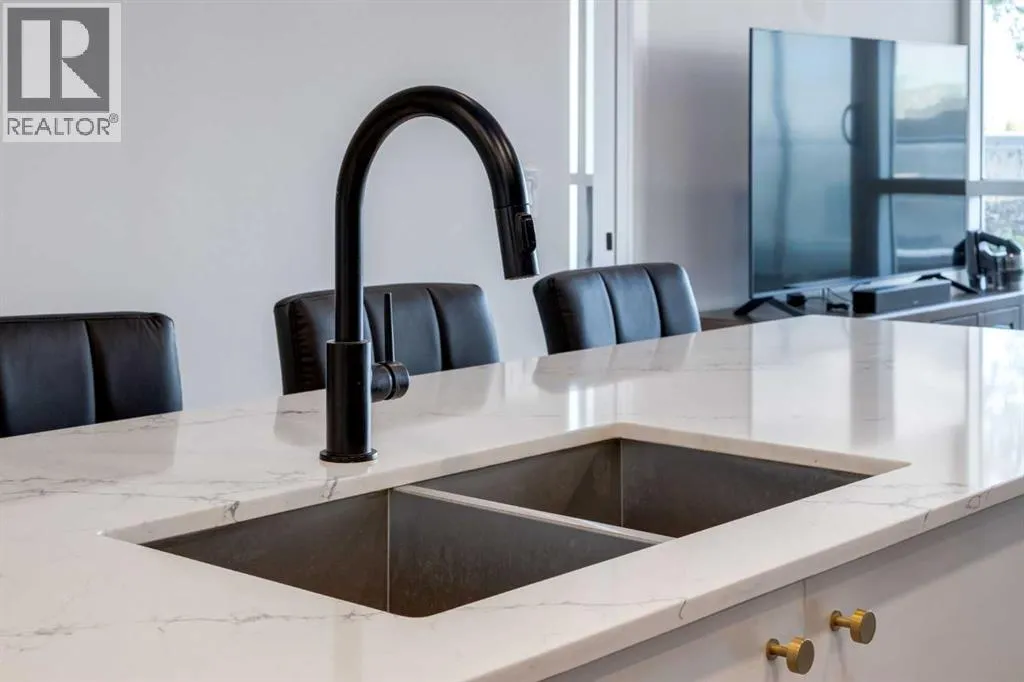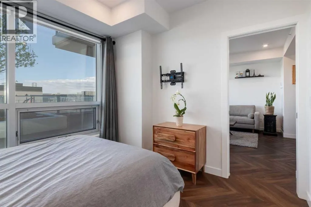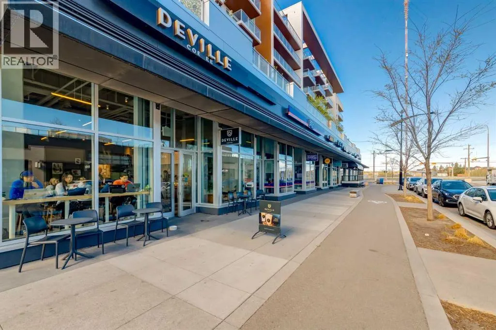 Priced to Sell! Welcome to Gateway by TRUMAN, nestled in the heart of the Master Planned community of West District. This concrete-constructed 2-bedroom, 2-bathroom home includes 1 titled underground parking stall and a spacious patio. Enjoy the pinnacle of craftsmanship and luxury with features like air conditioning, Chevron Luxury Wide plank flooring, and custom penny round mosaic tiles in all baths. LED pot lights illuminate the 9-foot+/- painted ceilings, enhancing the ambiance of the custom Chef-inspired kitchen. Finished in a luxurious Super Matte texture with brushed gold hardware, the kitchen boasts a high-end gas cooktop and wall oven, an integrated 36" Fisher & Paykel fridge, panelled dishwasher, and soft-close custom cabinetry with under-cabinet lighting. Quartz countertops and backsplash add a touch of sophistication. Additional features include a washer & dryer and window coverings for the floor-to-ceiling glass doors that lead to the expansive private patio. Located mere steps away from popular spots such as Hot Shop Yoga, Deville Coffee House, Hankki, La Diperie Ice Cream, Una, Blanco, and more! Gateway by TRUMAN offers a lifestyle of convenience and luxury in West District's thriving community. (id:27476)