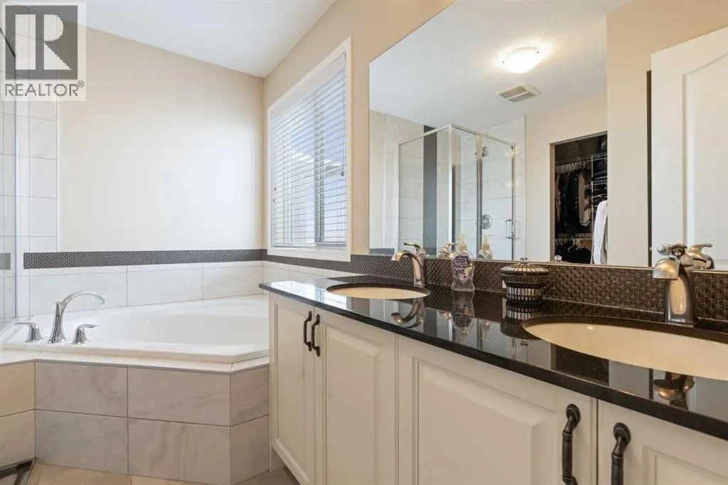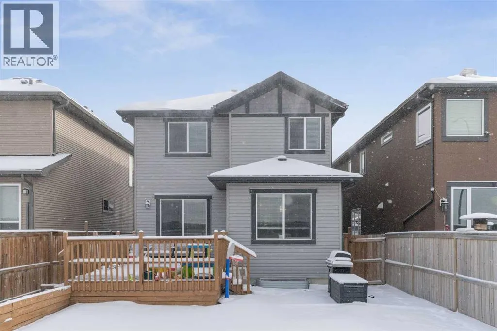 Welcome to this beautifully maintained, move-in-ready detached home with a double attached garage in the highly desirable community of Skyview Ranch. Thoughtfully designed with an east-facing front and west-facing backyard, this home is filled with natural sunlight throughout the dayâperfect for bright mornings and warm evening sunsets.A standout feature of this property is the fully legal 2-bedroom basement suite with a separate side entrance and its own laundry, offering excellent income potential or comfortable space for extended family. Whether youâre a growing family or an investor, this home offers exceptional flexibility and value.Ideally located, Skyview Ranch provides easy access to major roadways, shopping, schools, parks, and Calgary International Airportâmaking daily life convenient and connected. The community is also home to Apostles of Jesus School and Prairie Sky School, making it an excellent choice for families.The main floor boasts a modern open-concept layout featuring a stylish kitchen with a corner pantry, spacious dining area, and inviting family roomâperfect for entertaining and everyday living. A functional mudroom and versatile flex room, ideal for a home office or playroom, complete the space. Step outside to a large west-facing deckâperfect for hosting guests and enjoying sunny afternoons.Upstairs, youâll find a spacious primary retreat with a walk-in closet and a private ensuite featuring a luxurious corner soaker tub. Two additional generously sized bedrooms and a stunning bonus room with high vaulted ceilings create an impressive and airy upper-level living space. The convenience of upstairs laundry adds everyday practicality for the entire family.With its thoughtful layout, income-generating legal suite, soaring vaulted bonus room, and prime location, this exceptional home truly has it all. (id:27476)