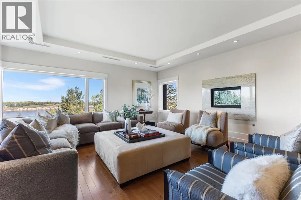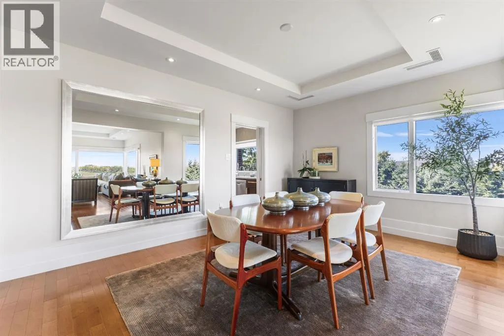 Enjoy unrivalled panoramic mountain & reservoir views from this expansive 2-bedroom plus den, 2-bath condo, offering over 2,000 sq. ft. of thoughtfully designed living space in an intimate 10-unit building in coveted Eagle Ridge! This spacious & airy home features hardwood floors & an abundance of natural light, highlighting the living roomâs triple-pane picture windows, tray ceiling & feature fireplace. The living room seamlessly connects to the dining area that provides ample space for family gatherings or elegant dinner parties. Just steps away, the well-appointed kitchen boasts granite countertops, ample storage, stainless steel appliances, & cozy breakfast nook. A walk-in laundry area with countertop space adds convenience. A private den/family room with balcony access is tucked away just off the living roomâan ideal work-from-home space with more breathtaking reservoir views. The primary retreat features a walk-in closet & luxurious 5-piece ensuite with dual sinks, separate vanity, tranquil soaker tub & walk-in shower. A generously sized second bedroom and 3-piece bath provide comfortable accommodations for guests. Additional highlights include a custom-made unit entry door, TWO UNDERGROUND PARKING STALLS, an assigned storage room, self-contained guest suite & an ultra-convenient elevator that takes you directly to your front door. The prime location canât be beat with Heritage Park & Glenmore Reservoir pathways minutes away, plus amenities such as shopping at Glenmore Landing, schools, public transit & Rockyview Hospital. Enjoy easy access to 14th St, Heritage Drive & Glenmore Trail. (id:27476)