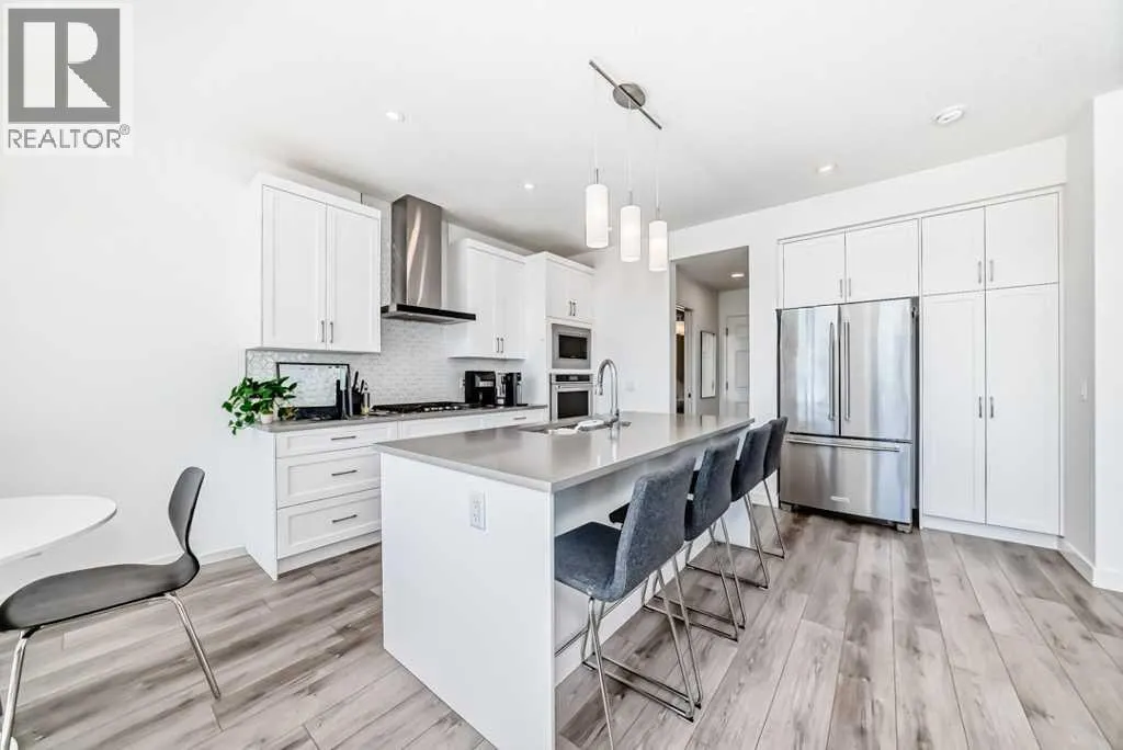 Welcome to Green Space View â a stunning 4-bedroom, 3.5-bath home with a walkout basement in the prestigious Aspen Springs community of Springbank Hill. Built in 2022 and still covered by the New Home Warranty, this thoughtfully designed residence offers nearly 2,000 sq. ft. of total living space and backs directly onto serene green space. Enjoy an east-facing backyard that bathes in the morning sun, creating the perfect setting for coffee on the deck and peaceful starts to your day. The main floor boasts 9 ft ceilings, an elegant white interior palette, luxury vinyl plank flooring, and an open-concept layout ideal for both daily living and entertaining. The gourmet kitchen features crisp white cabinetry, quartz countertops, tiled backsplash, high-end stainless steel appliances including gas cooktop, built-in oven and microwave, extra-wide refrigerator, and a large central island. The bright dining area opens to the upper deck through patio doors, while the spacious living room offers plenty of natural light. A mudroom and 2 pc powder room complete the main level. Upstairs, youâll find three generously sized bedrooms, a 4-piece main bath, and a convenient laundry room. The serene primary suite is a true retreat, featuring a luxurious 5 pc ensuite with dual sinks, a soaker tub, separate glass shower, and a large walk-in closet. The fully finished walkout basement adds incredible versatility, with a large family/recreation room, a fourth bedroom, and a 3 pc bath, perfect for guests, as a home office or the teenager that wants their privacy. Step outside to your private covered patio and enjoy direct access to the walking path and green space beyond. Attached front drive double garage.. Enjoy the convenience of walking to Aspen Landing Shopping Centre, top tier schools including Rundle College, Webber Academy, and Ambrose University - all within 2.5 km! Dining options just steps away within the complex. Easy access to Westside Rec Centre, multiple golf courses, and ne arby country clubs enhances your active lifestyle. Elegant, modern, and move-in ready, this exceptional townhome truly offers the best of low-maintenance luxury living with nature at your back door and amenities just minutes away. (id:27476)