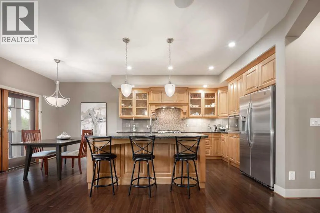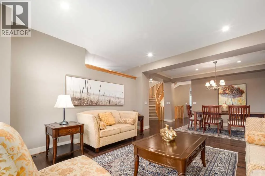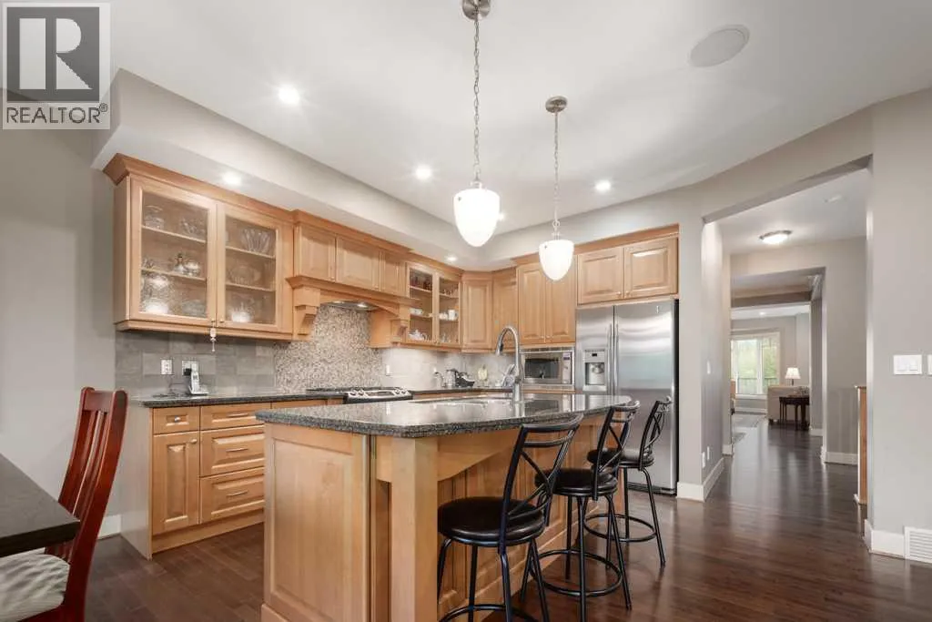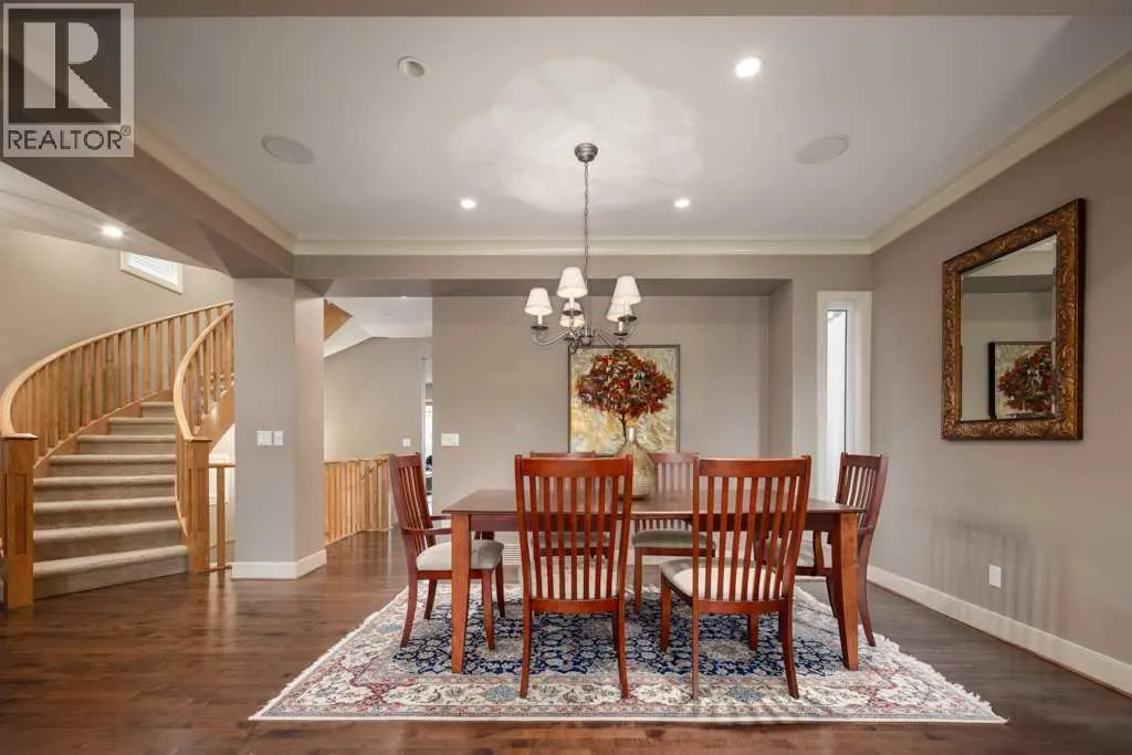 More than 3,100 sq. ft. above grade and 3,785 sq. ft. total developed, this exceptional Aspen estate is one of the areaâs best valuesâtucked away on a quiet street and surrounded by top schools, premier shopping, and west-side amenities.From the moment you enter, youâll appreciate the homeâs timeless design with a grand curved staircase and rich hardwood floors throughout the main level. The layout is built for both everyday living and entertaining, featuring a formal living room, elegant dining area, and a warm family room anchored by a cozy gas fireplace. The gourmet kitchen is the heart of the home with granite countertops, a large island with seating, premium stainless steel appliances, and a bright breakfast nook that opens to the backyardâperfect for morning coffee and family dinners.Step outside to enjoy a private outdoor retreat with a covered deck, fenced yard, mature landscaping, underground sprinklers, and plenty of room to relax or host guests. Additional highlights include central air conditioning and a spacious double attached garage.Upstairs, the primary suite is a true escape with a double-sided fireplace, large walk-in closet, and a spa-inspired ensuite featuring a soaker tub and multi-jet shower. Two more generous bedrooms, a full bath, and upper laundry complete the second level.The third-floor loft adds a standout bonus space with skylight, wet bar, fireplace, balcony, and a powder roomâideal for a home office, library, studio, or games room.The fully developed basement is designed for comfort and versatility with in-floor heating, a large recreation area, a fourth bedroom, and a full bathroomâperfect for guests, teens, or extended family.Ideally located steps to pathways, parks, and playgrounds, and minutes to Webber Academy, Rundle College, Calgary Academy, and highly regarded public schools. Enjoy quick access to Aspen Landing, Westside Rec Centre, Canada Olympic Park, nearby golf, the 69 Street LRT, and an easy commute downtown vi a Bow Trail or 17th Avenueâplus a convenient escape to the mountains. This is Aspen living at its best. Some images have been virtually/digitally staged to illustrate possible furnishings and layout. (id:27476)