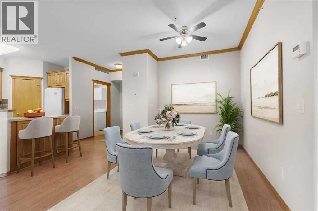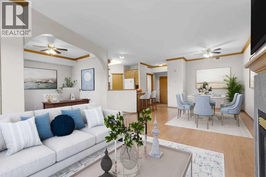Welcome to The Sierras of Tuscany, one of NW Calgaryâs most sought-after 40+ adult living communities, where comfort, connection, and convenience come together. This top-floor, 2 bedroom plus home office/den area, 2 bathroom condominium offers beautiful mountain and ravine views, enjoyed from a bright, open floor plan and a fully enclosed sunroomâperfect for year-round enjoyment. Recent updates include an over $12,000 brand-new air conditioning unit and newer, high-quality laminate flooring, adding both style and peace of mind. Additionally there are two parking stalls - one titled, one assigned each with a large storage locker! Further storage is available in an enlarged in-suite storage room and the separate laundry room. Beyond the home itself, this well-managed complex is known for its welcoming atmosphere and active social calendar, allowing residents to participate as muchâor as littleâas they choose. Ownership here truly means embracing a lifestyle, with an impressive list of amenities including guest suites, a saltwater pool and hot tub, bowling alley, fitness room, private theatre, ballroom, craft room, woodworking shop, car wash, pool tables, and card room. The spectacular Panorama Room, complete with a fully equipped kitchen, is ideal for gatherings, celebrations, and community events. What a location! Just a short walk to the LRT, walking paths, minutes away from the Tuscany Residence Club and market and a quick commute to Crowfoot Centre and major roadways. Whether youâre looking to downsize without compromise or enjoy a vibrant adult community, this exceptional home offers the perfect blend of low-maintenance living, luxury amenities, and breathtaking views! (id:27476)