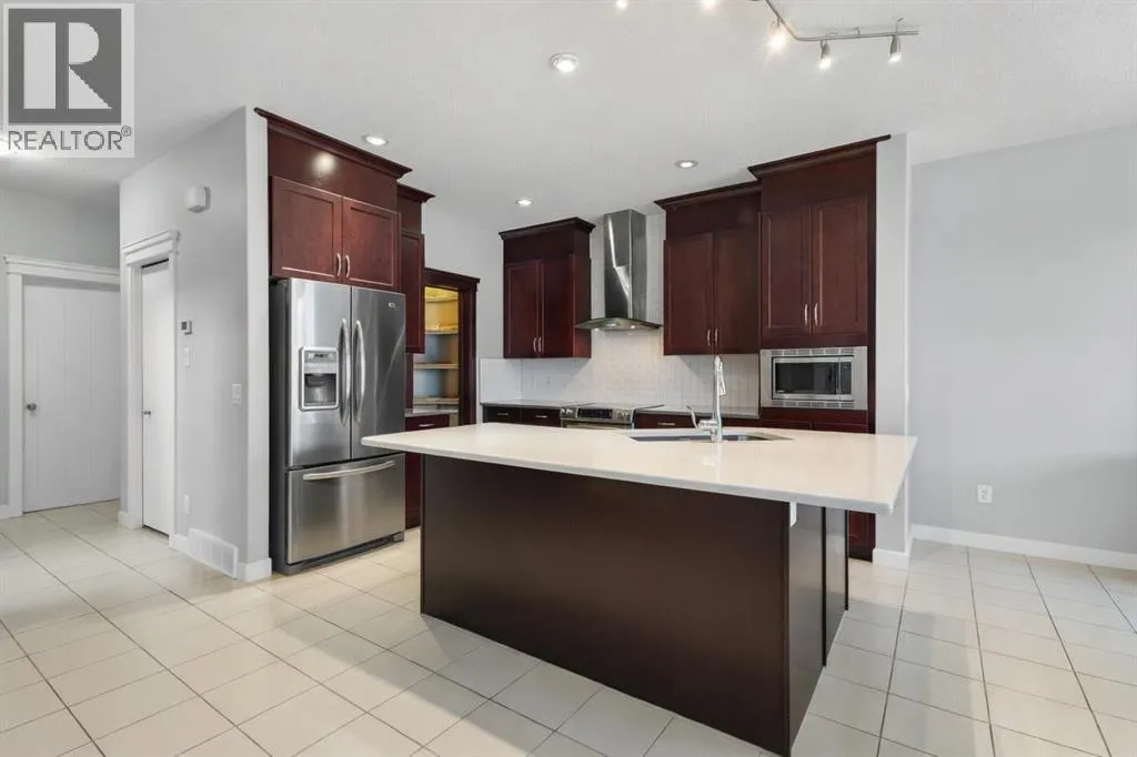 Experience exceptional living in this beautiful 5-bedroom, fully finished home with central A/C, located in the vibrant community of Redstone. Offering over 2,300 sq. ft. of thoughtfully designed space, this residence blends modern style with everyday comfort and functionality, perfect for families or investors alike.A separate side entrance provides flexibility for multi-generational living or future suite potential. A secondary suite would be subject to approval and permitting by the city or municipality.Step inside to discover a bright, open-concept main floor with large windows and high ceilings that fill the home with natural light. The spacious living and dining areas flow seamlessly into a chefâs kitchen featuring full-height cabinets, quartz countertops, stainless steel appliances, and a large central island thatâs perfect for family meals and entertaining. A walk-through pantry connects conveniently to the mudroom and garage.The main level is finished with hardwood and tile flooring, combining elegance with durability. Upstairs, youâll find three generous bedrooms, including a primary suite with a walk-in closet and private 5-piece ensuite, along with a large bonus room thatâs ideal for a play area, home office, or media space.The fully finished basement expands your living area with two additional bedrooms, a wet bar, and an open recreation room thatâs perfect for guests, a home gym, or a theatre setup. The projector is included, making it ready for movie nights.Additional highlights include central air conditioning, a newer roof, and modern construction standards for peace of mind. The property features excellent curb appeal with a well-kept yard and extra concrete parking pad in front for convenient additional parking.Located in a family-friendly area, youâll love being close to parks, playgrounds, schools, shopping, restaurants, transit, and major routes such as Stoney Trail and Metis Trail.Move-in ready and beautifully maintained, this Re dstone gem offers the perfect blend of space, comfort, and investment potential. It truly checks every box. (id:27476)