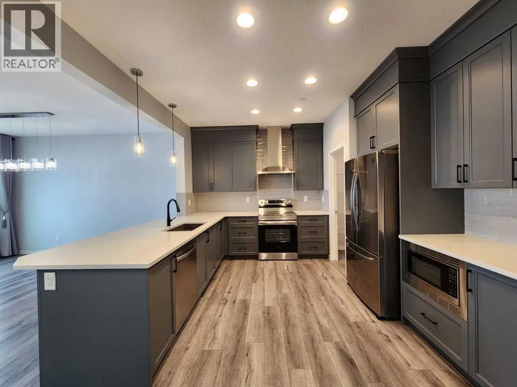 Central air conditioned, 6 bedrooms, side entrance, and finished basement, welcome to this fully upgraded 2278 sqft single family home in popular Livingston. It features open view, LVP flooring throughout and 9 feet ceiling on the main floor, wrought iron spindles on the stairs, upgraded large glass panel, knock down ceiling, quartz counter tops in the kitchen and bathrooms, and upgraded lighting package. Upper floor has 4 bedrooms, large and bright master bedroom, ensuite with double vanity sinks, separated shower and bathtub, large bonus room, functional compartment main bathroom with double vanity sinks, and laundry room. Main floor with sunny living room, sliding door to private deck, beautiful deck with glass panel railing and stairs to the backyard, upgraded kitchen cabinets and chimney hood fan stainless steel appliances, spacious dining area, walk through pantry, and office with window and closet, can be used as a bedroom. Finished basement with separated entrance, extra bedroom, full bathroom, and large family room. It has been fully fenced, backyard with large concrete patio. It closes to the future community center, shopping, playground, and easy access to major roads. ** 90 Howse Common NE ** (id:27476)