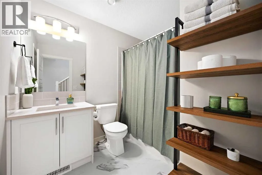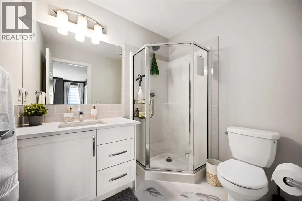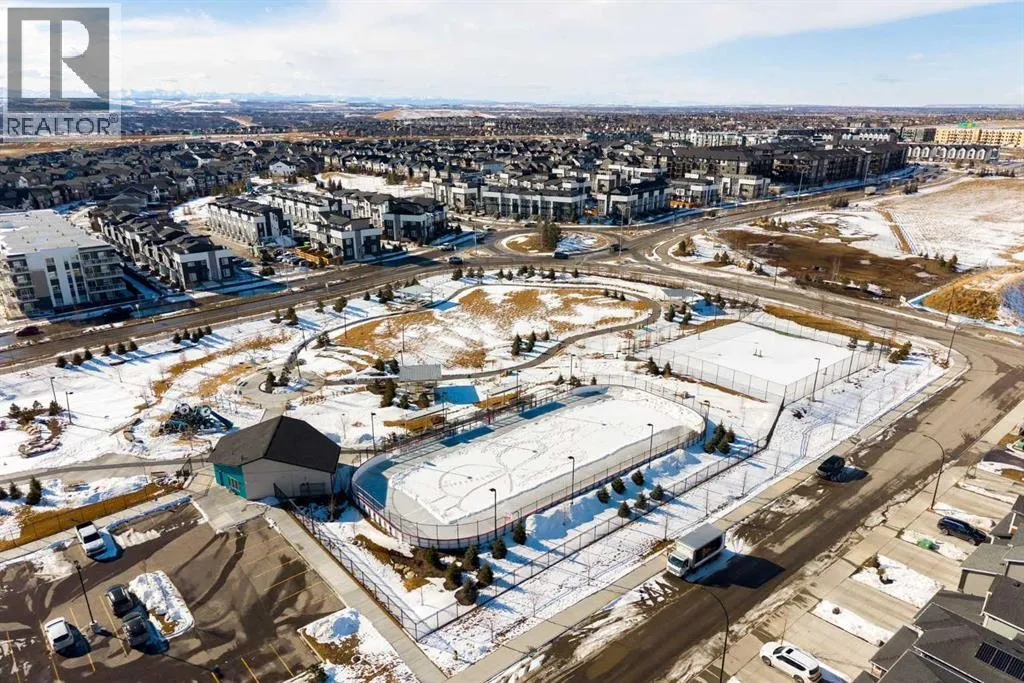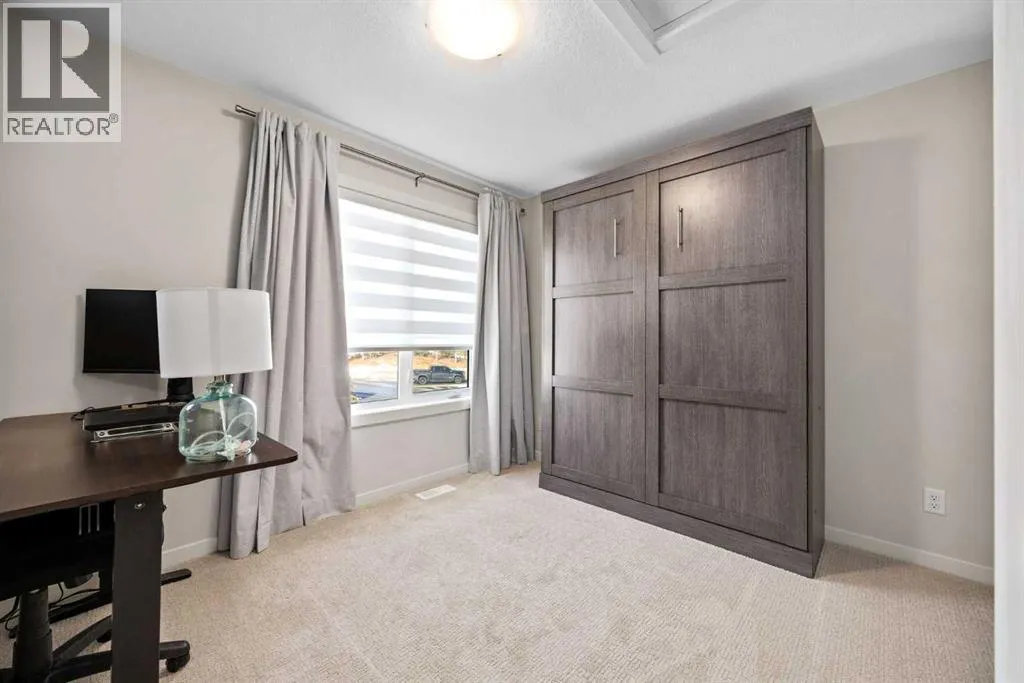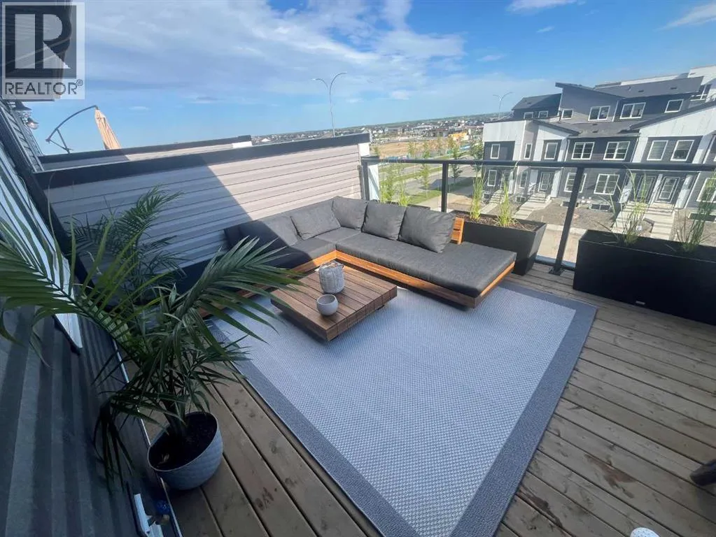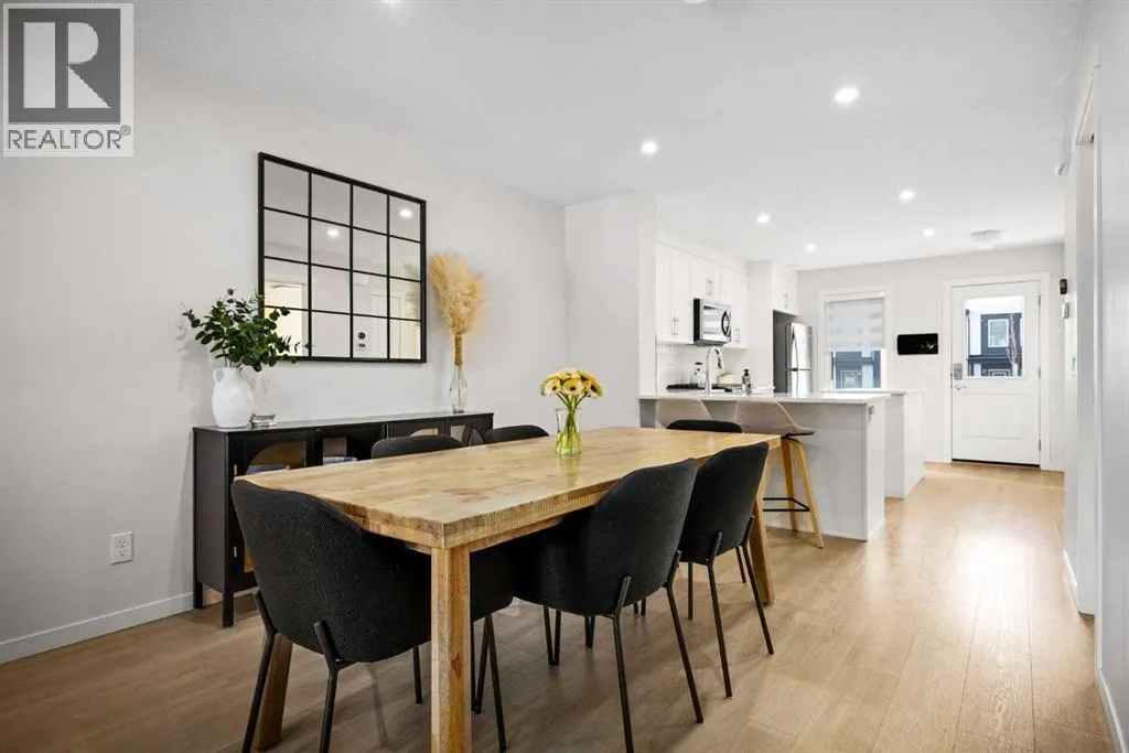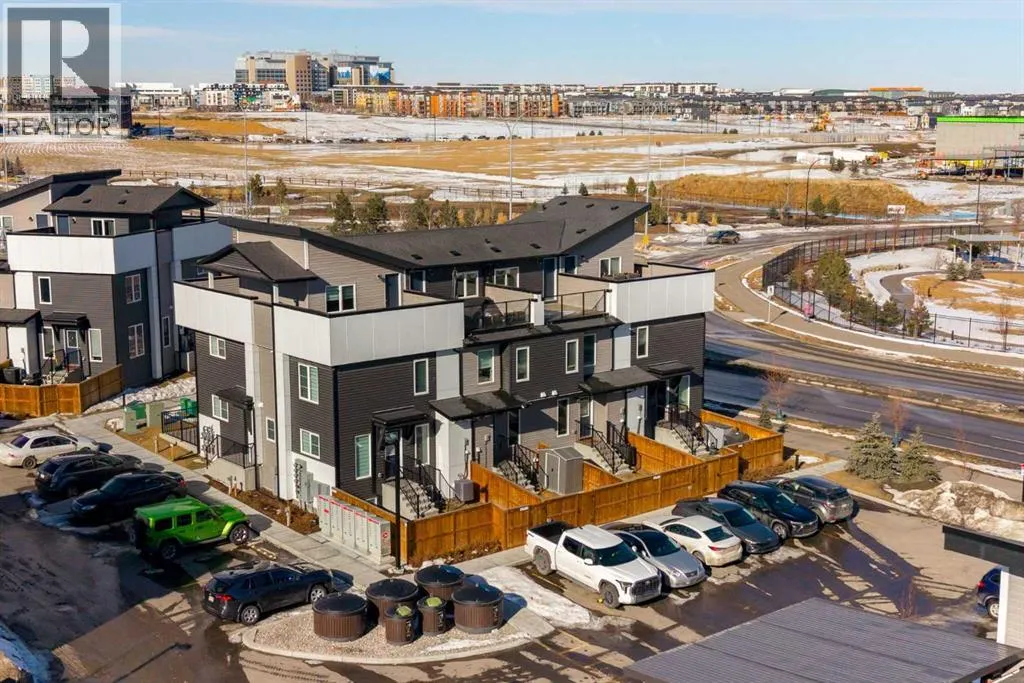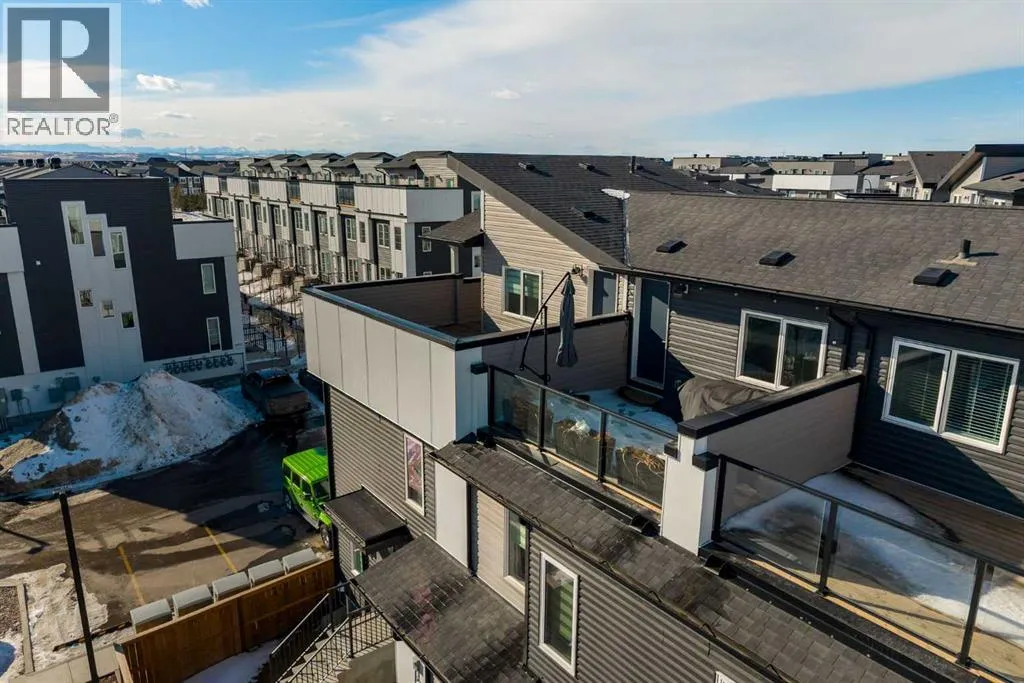 Welcome to this stunning 2023-built townhome in the vibrant community of Seton, offering modern design, thoughtful upgrades, and incredible rooftop views. As you step inside, youâre greeted by a bright open-concept main floor where the living, dining, and kitchen areas flow seamlessly together. Large windows flood the space with natural light, creating a warm and inviting atmosphere. The beautifully upgraded kitchen features stylish cabinetry, upgraded appliances, and a contemporary backsplash that ties the space together perfectly for both everyday living and entertaining. Knockdown ceilings and pot lights add to the fresh, modern feel, making this home truly feel brand new. From the main level, step outside to your fully fenced backyard complete with a shedâideal for pets, kids, or BBQing on hot summer evenings.On the second level, youâll find a spacious primary bedroom highlighted by a stunning feature wall and a private 3-piece ensuite. A generously sized second bedroom includes a convenient Murphy bed, creating flexibility for guests, a home office, or both. An additional 4-piece bathroom and laundry closet completes this level. The third floor offers an impressive and versatile family space that can function as a bonus room, media room, home gym, or entertaining lounge. Complete with a wet bar and mini fridge, itâs perfectly set up for hosting friends and family. Step out onto the incredible rooftop deck where you can soak up sun all day long while enjoying expansive views stretching to the mountains and beyond. Additional features include central air conditioning, high-end zebra blinds and curtains, upgraded carpet, luxury vinyl plank flooring throughout, low condo fees, and a fantastic location just steps from the HOA and its amenities.Living in Seton means enjoying one of Calgaryâs most dynamic and amenity-rich communities. Residents have access to the impressive Brookfield Residential YMCA at Seton, one of the largest YMCA facilities in North America, as well as the nearby South Health Campus. The community offers a growing urban district filled with shops, restaurants, entertainment options including a VIP Cineplex theatre, grocery stores, cafés, parks, pathways, and convenient access to major roadways. Seton truly delivers the perfect blend of urban convenience and connected community livingâand this exceptional townhome allows you to experience it all in style. (id:27476)