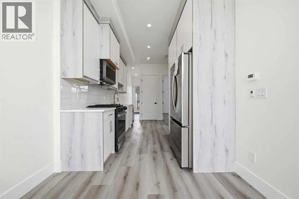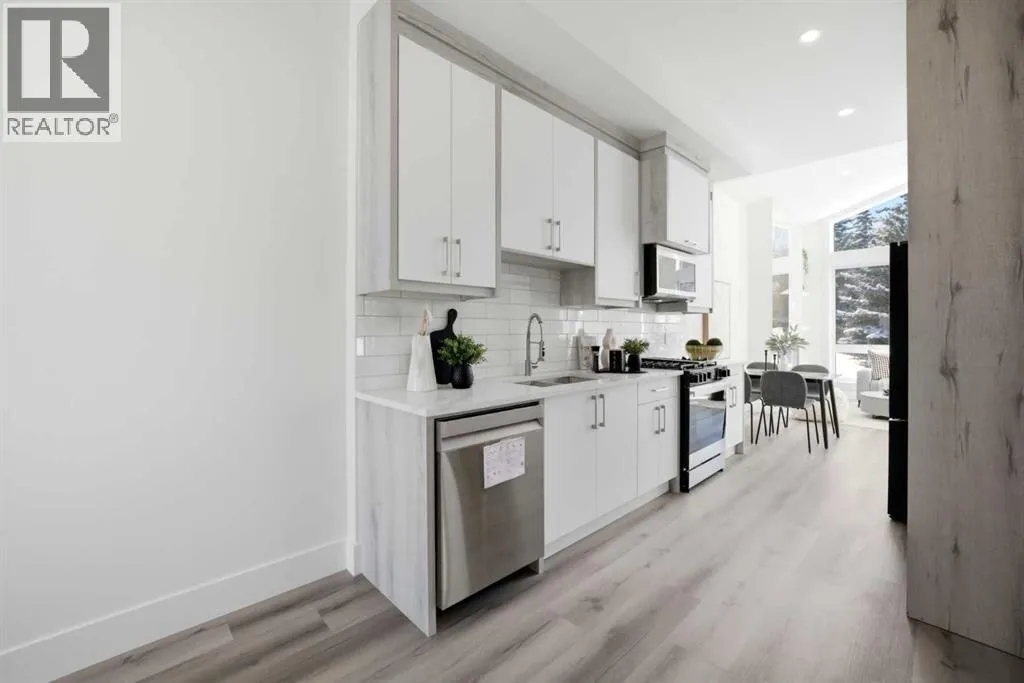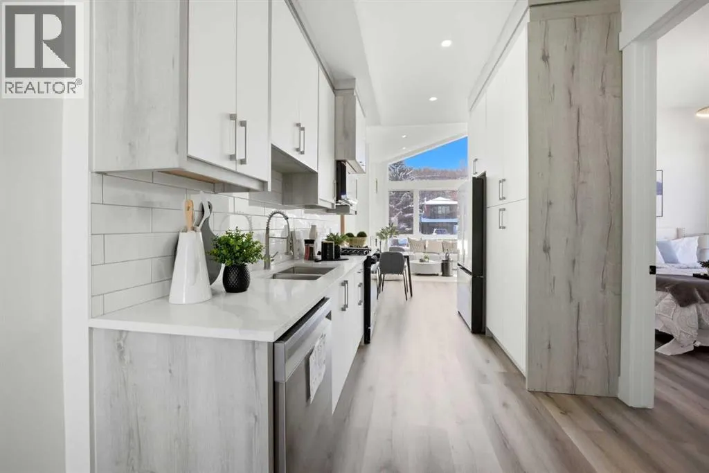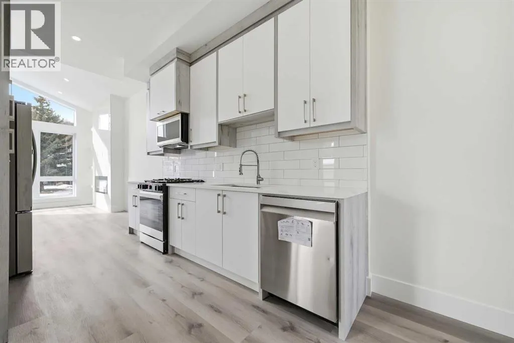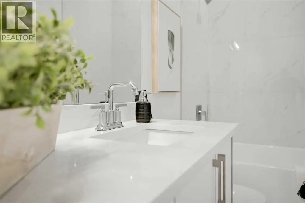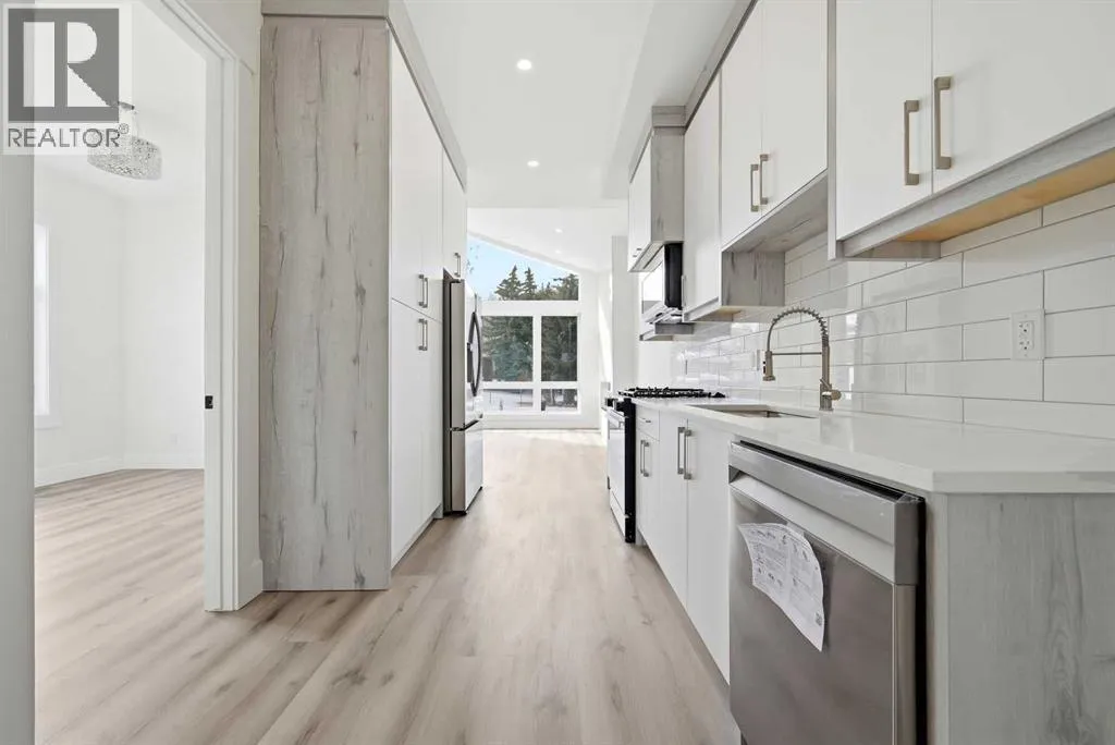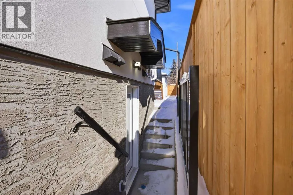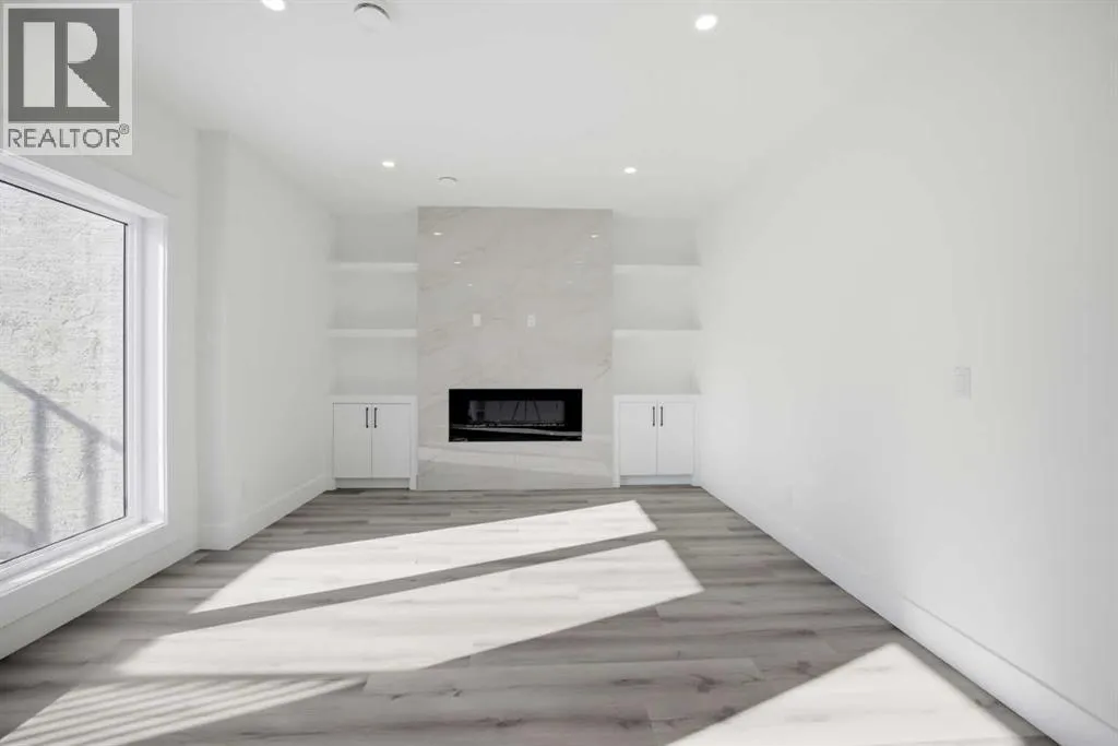 An excellent opportunity to own a newly built, architecturally refined residence in the heart of Bowness, one of Calgaryâs most charming and sought-after communities.Thoughtfully designed with both elegance and versatility in mind, this semi-detached home seamlessly blends elevated modern living with outstanding income potential through its full two-bedroom basement legal suite. The main level is defined by dramatic sloped ceilings and an abundance of natural light, creating an airy, sophisticated atmosphere. At the heart of the home, a beautifully curated kitchen showcases premium appliances, sleek contemporary finishes, and refined detailing, a space perfectly suited for quiet mornings and effortless entertaining alike.Two well-appointed bedrooms and a stylish full bath and a powder room complete the main floor, offering comfort and functionality without compromising design.The full 2 bedroom walkup lower-level legal suite continues the homeâs elevated aesthetic, featuring rare high ceilings, a fireplace, a bright and thoughtfully designed layout, and a private patio that enhances its strong rental appeal. Whether for extended family, guests, or additional income, the flexibility is exceptional.Outside, a private backyard and detached double garage provide everyday convenience, while the location offers immediate access to river pathways, parks, and outdoor recreation. Just minutes from Canada Olympic Park, with quick connections to downtown Calgary and the mountains, this address delivers an unbeatable lifestyle balance.A rare combination of architectural design, income versatility, and location. This is modern living redefined. (id:27476)
