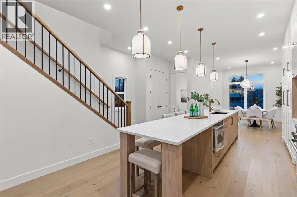 Unbeatable Price & Legal Two Bedroom Basement Suite. This beautifully finished home offers a sophisticated living experience in one of Calgaryâs most sought-after neighbourhoods, combining elegant design with exceptional practicality. The main level features an inviting dining area that transitions smoothly into a modern kitchen appointed with premium appliances, an oversized pantry, quartz countertops, full-height cabinetry, and generous workspace for both everyday cooking and entertaining. The bright and comfortable living room is centered around a gas fireplace set against a brick-accented feature wall with custom shelving, while large sliding doors extend the living space to a spacious backyard ideal for outdoor gatherings. A stylish powder room and a well-planned mudroom complete the main floor. Upstairs, the tranquil primary bedroom includes detailed wall accents, a luxurious ensuite with a dual vanity, a deep soaking tub, a walk-in shower with steam rough-in, and a large walk-in closet. Two additional bedrooms share a beautifully finished full bathroom, and a dedicated laundry room adds convenience. A standout feature of this property is the fully developed legal basement suite, offering two bedrooms, a full bathroom, a complete kitchen, and its own living area, making it an excellent option for rental income, multigenerational living, or hosting long-term guests. Situated on a fully fenced lot with a double detached garage and located near parks, restaurants, shopping, and all the energy of the Kensington district, this home provides a perfect blend of lifestyle and flexibility while remaining close to the Bow River, Downtown, the University of Calgary, SAIT, and the Foothills Hospital. Call today to book a private tour! (id:27476)