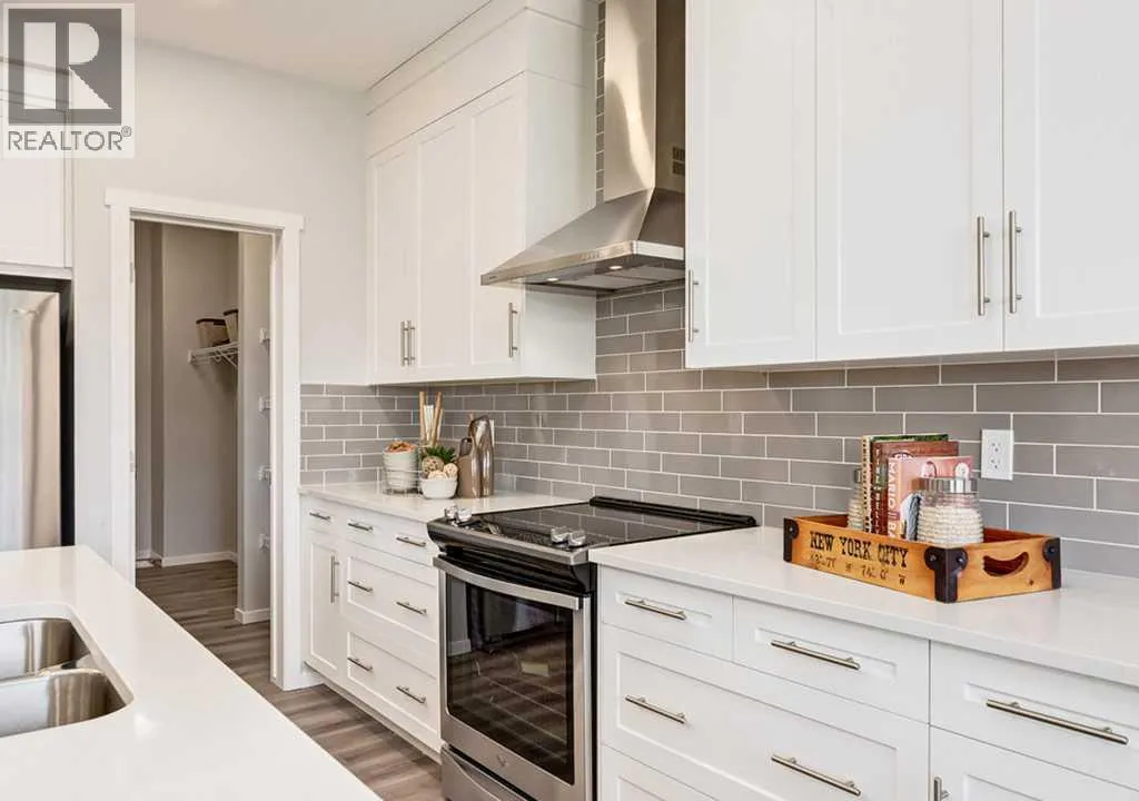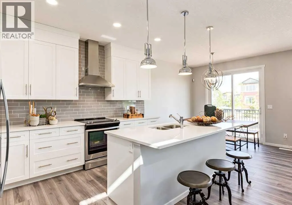 YOUâVE DONE ENOUGH MAKING-DO. ITâS TIME FOR A HOME THAT FINALLY MEETS YOU AT YOUR LEVEL.This Gabriel model from Homes by Avi was built for people who are done compromisingâon storage, flow, and the way a home should support real life. The main floor begins with a mudroom that connects directly to a WALK-THROUGH PANTRY, because groceries shouldnât require a logistics plan. The kitchen delivers: 50" UPPERS, a chimney hoodfan, a BUILT-IN WALL OVEN, a GAS COOKTOP with griddle, and a flush island with a BREAKFAST BAR that actually seats people. QUARTZ COUNTERTOPS with a soft white marble look and subtle veining pair with creamy light wall tile and matte-black hardware for a finish that feels elevated without trying too hard.The dining area is built for loud holidays and full tables, while the great room anchors the space with a FIREPLACE FRAMED IN TILE WITH A CLASSIC MANTLE and full-height presence. With QUICK POSSESSION available, this could be the year you stop squeezing celebrations into a home thatâs outgrown you.Upstairs, a CENTRAL BONUS ROOM creates breathing room between the primary and secondary bedrooms. Both secondary bedrooms include walk-in closetsâa small detail that makes everyday life easier. The primary offers a generous WALK-IN CLOSET and a five-piece ensuite with a SOAKER TUB and TILE-AND-GLASS SHOWER.Thereâs also a true UPSTAIRS OFFICE with a door you can close, plus a WALK-IN LAUNDRY ROOM with space to sort, fold, and keep life from spilling into the hallway.Downstairs, the WALKOUT BASEMENT gives you room to grow, with a LOWER-LEVEL ENTRY stepping directly out to the backyard beneath the raised deck above. And that RAISED DECK? It extends your dining space outward and lifts you high enough for BETTER VIEWS and clear sightlines across the yardâperfect for summer evenings, morning coffee, or keeping an eye on whatâs happening below.Located in Vermilion Hill at Alpine Park, this community is shaped by natural elevation, pathways, and long sou th and west views. Itâs connected, forward-thinking, and designed to grow beautifully over time.If this already feels like a better fit than where you are now, COME SEE IT IN PERSON.⢠PLEASE NOTE: Photos are of a finished Showhome of the same model â fit and finish may differ on finished spec home. Interior selections and floorplans shown in photos. (id:27476)