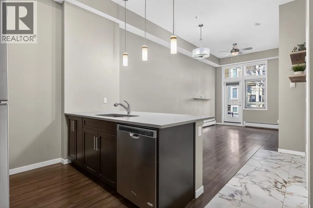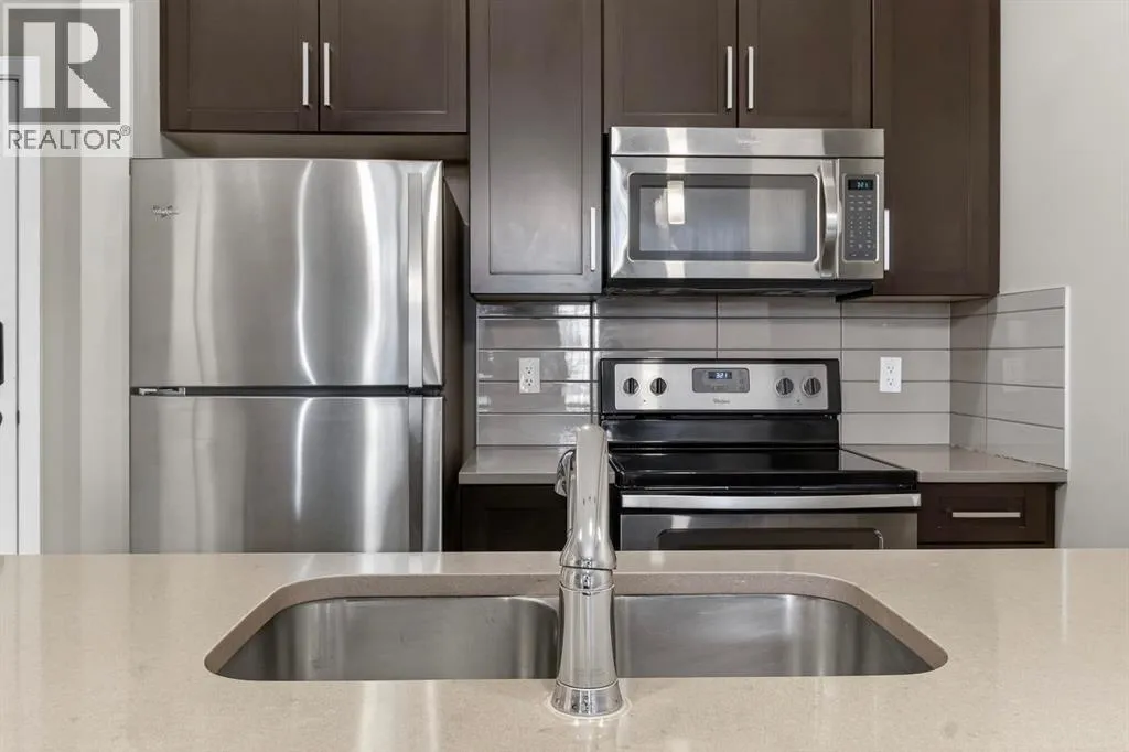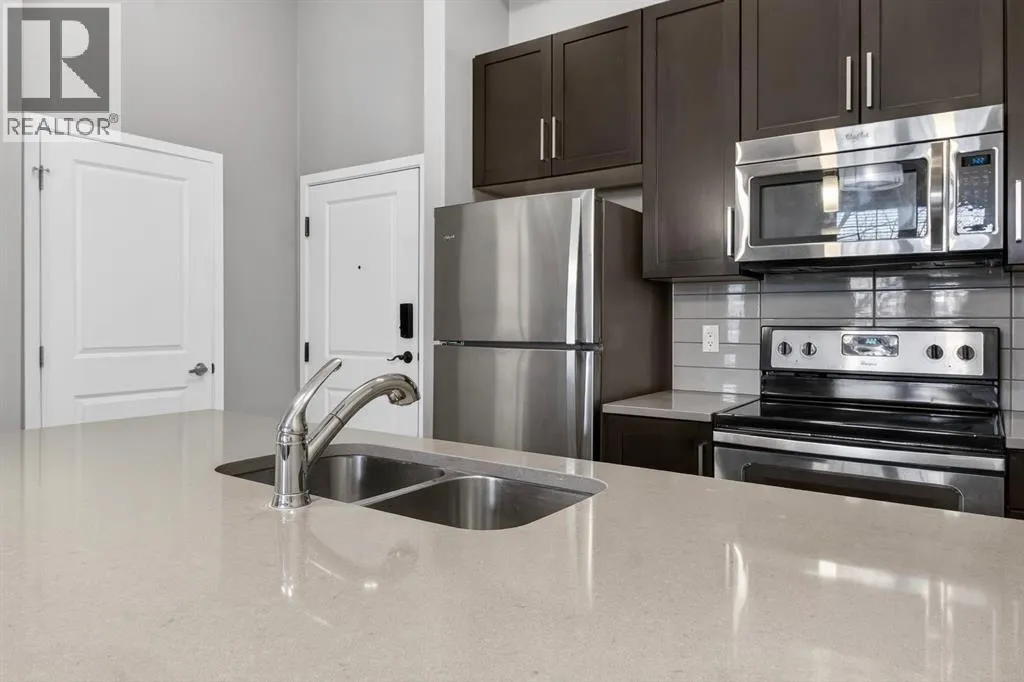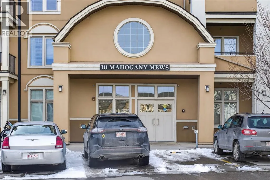 Welcome to Sandgate in Mahogany, perfectly situated in the vibrant Mahogany Village Market and just a short walk to the lake. This beautifully maintained 1-bedroom condo looks and feels like new, featuring fresh paint and a clean, modern finish throughout.Inside, youâll find laminate flooring, soaring 10-foot ceilings, quartz countertops, stainless steel appliances, and convenient in-suite laundry. The thoughtfully designed layout also includes a gas line on the private patio for your BBQ, rough-in for air conditioning, a parking stall, and a separate storage locker.Residents of Sandgate enjoy fantastic building amenities, including a fitness centre, guest suite, bike storage, visitor parking, and two elevators for convenience.Mahogany is one of Calgaryâs most sought-after lake communities, offering year-round activities such as canoeing, fishing, and summer beach days, as well as skating in the winter. Everything you need is close by, with shops, restaurants, coffee spots, parks, playgrounds, schools, and pathways all within walking distance.This exceptional location is also just minutes from South Health Campus Hospital, major transportation routes, and the future LRT line, making it perfect for professionals, first-time buyers, or investors. Very rare building that has 2 Guest suites for residences guests and family to stay at when visiting(for a Fee). (id:27476)
