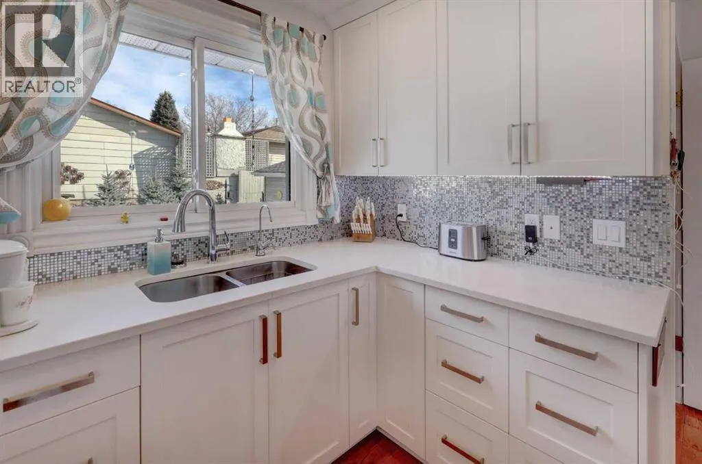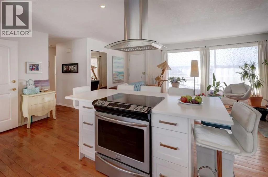 Beautifully upgraded and well maintained bungalow in an exceptional location overlooking the ridge and Bow River with mountain views. This well-cared-for home has been upgraded over the years, including most windows, improved insulation, central air conditioning, beautiful hardwood floors and "knock-down" ceiling finish on the main level.The RENOVATED OPEN-CONCEPT KITCHEN features quartz countertops, a large island with an induction cooktop with convection oven, plus an overhead hood fan, and plenty of workspace and storage. All lower cabinets are pull out drawers with soft close feature. The dining room offers built-in cabinets and bookcases with a sliding patio door leading to the backyard. Ceiling fan, and LED pot lights overhead. There is a spacious pantry and an oversized linen cupboard in the hall. The bright living room enjoys west-facing mountain, city and ridge views with a cozy wood-burning fireplace with mantle and hearth. The main level includes three bedrooms, including a primary bedroom with a two-piece ensuite.The developed basement features an (illegal) one-bedroom suite, which could also serve as additional living space for a larger family. Including a decorative vintage wood stove and being sold furnished with household dishes and supplies, this is a âsweetâ living space! Laundry and utility are shared, and there is a separate basement entrance. The basement could easily be modified for a second bedroom with windows with legal size egress.The beautifully landscaped yard features landscape stonework, trees, shrubs, and garden beds, along with a patio perfect for enjoying morning coffee in the sun or relaxing in the shade on warm summer days, and a firepit for your family marshmallow roasts on summer evenings. An incredible location with direct access to the Bow River pathway system and stunning views. Walking distance to schools, shops, bus routes, dog parks, community outdoor pool, arena, community garden, community hall, Ogden 50+ club, and minutes to regional shopping plus easy access in all directions with Stoney and Deerfoot Trails. Close to downtown and Foothills Industrial Area. Future Greenline LRT is underway. This property is a gem to be enjoyed for years to come! Welcome Home! Please come and see and bring an offer! (id:27476)