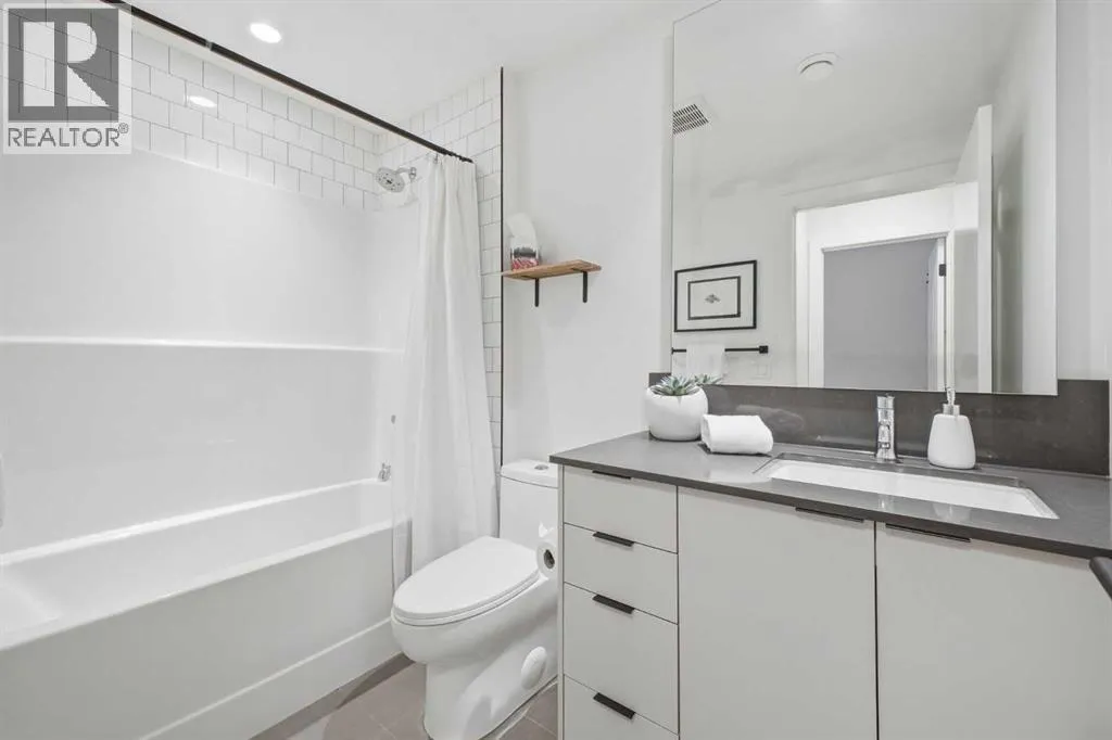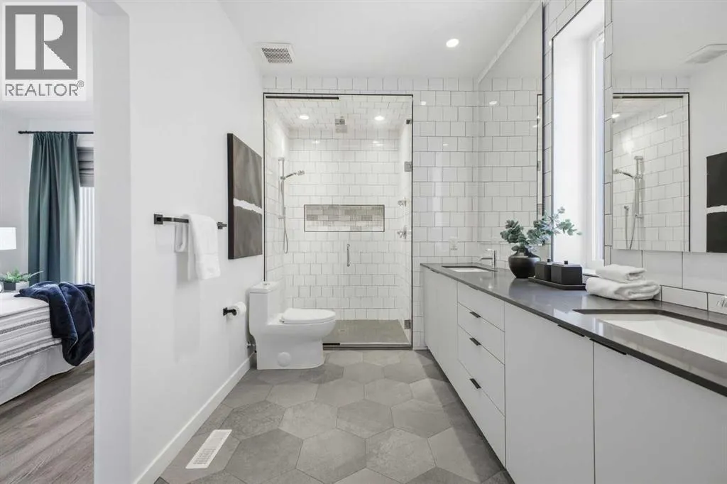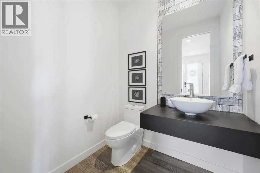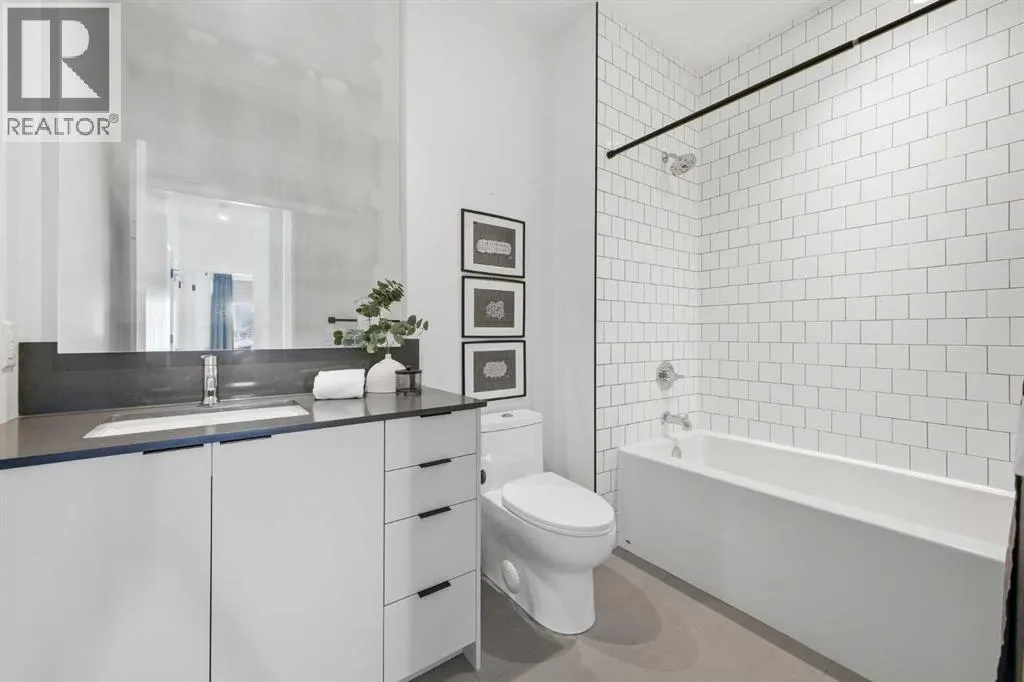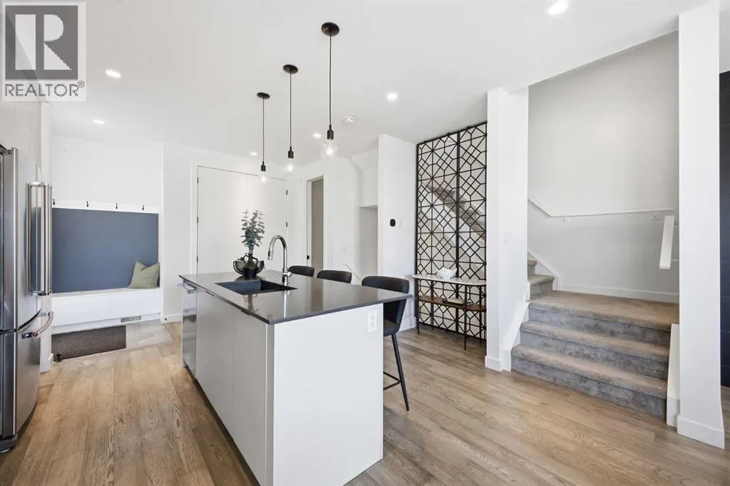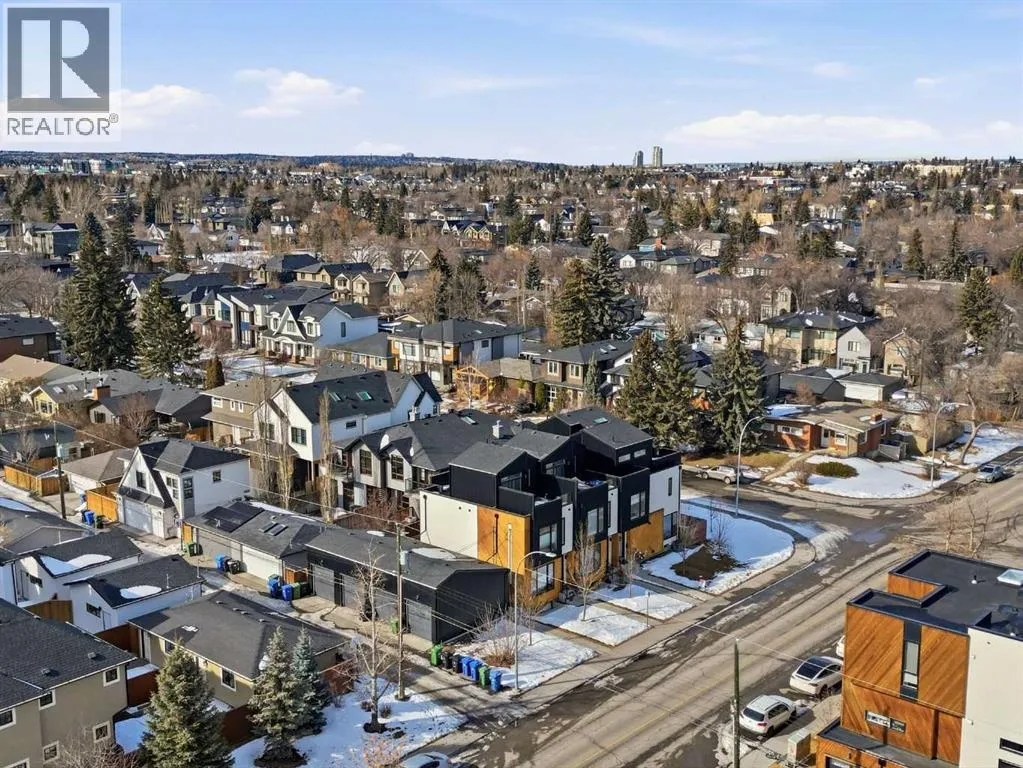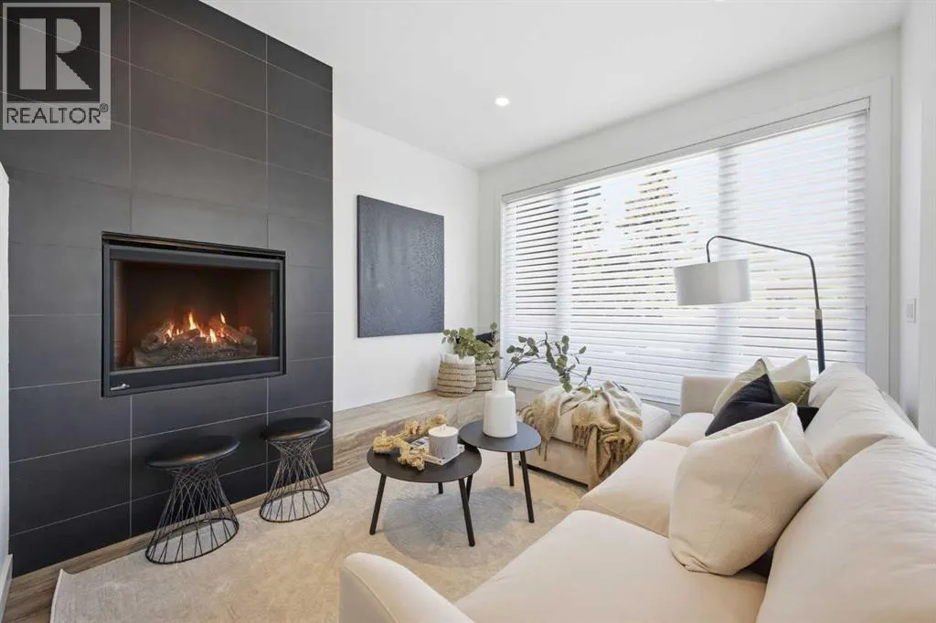 OPEN HUSE SUNDAY, MARCH 22ND FROM 1-4 PM. Welcome to this beautifully designed three storey END UNIT townhome in the heart of Altadore, offering nearly 2,200 sq ft of refined living space enhanced by thoughtful upgrades and custom finishes throughout. The open and airy main level features a bright, contemporary layout anchored by a chefâs kitchen with quartz countertops, a large island with eating bar, abundant cabinetry, and stainless steel appliances. The adjoining dining area opens onto the deckâan ideal setting for hosting family and friendsâwhile the inviting living room with gas fireplace creates a warm, stylish space for everyday living and entertaining. The second level hosts two generously sized bedrooms, a well-appointed 4 piece bath, and convenient laundry. The private primary retreat includes a walk in closet and a secluded 4 piece ensuite with dual sinks and an oversized shower. The third floor loft, complete with a wet bar, offers exceptional flexibility as a media room, home office, studio, or lounge. From here, step out onto the private rooftop patio and enjoy sweeping viewsâan impressive extension of your living space. The fully finished basement adds even more versatility with a spacious recreation room, a third bedroom, and a full bathroomâperfect for guests or additional family needs. Outside, a large front patio provides another inviting spot to relax or entertain. Additional highlights include central air conditioning for year round comfort, heated bathroom floors throughout, and the convenience of a single detached garage. Set within one of Calgaryâs most desirable inner city communities, this home is steps from parks, schools, shopping, and the vibrant amenities of Marda Loop, with quick access to downtown. This Altadore townhome blends modern design, custom craftsmanship, and urban convenienceâan exceptional opportunity in a sought after location. (id:27476)