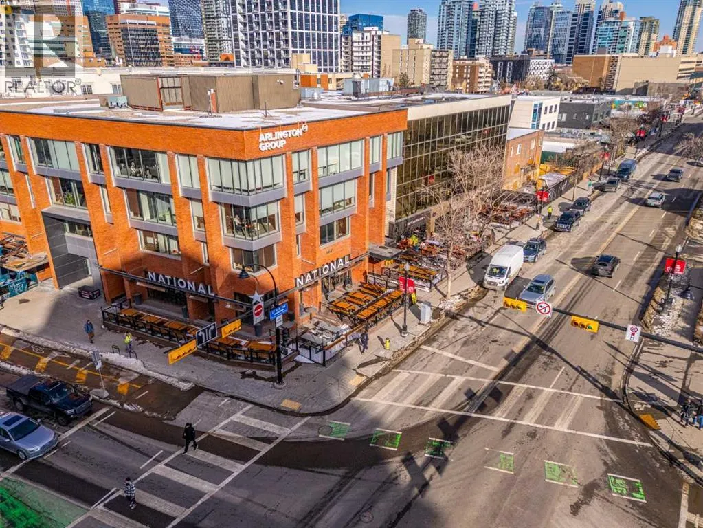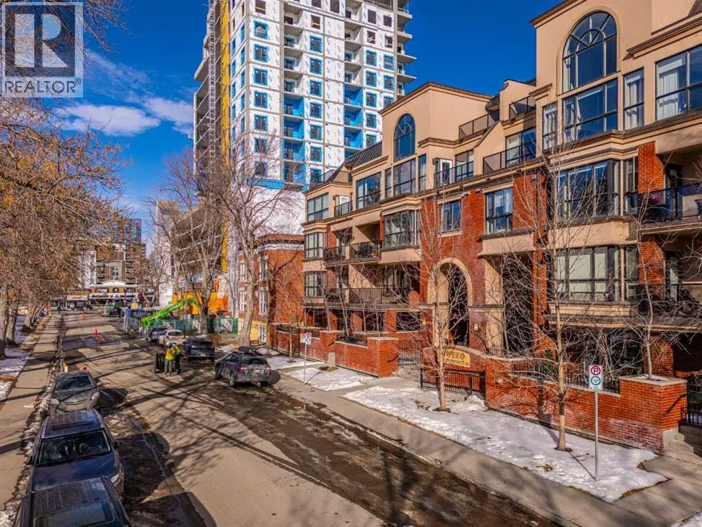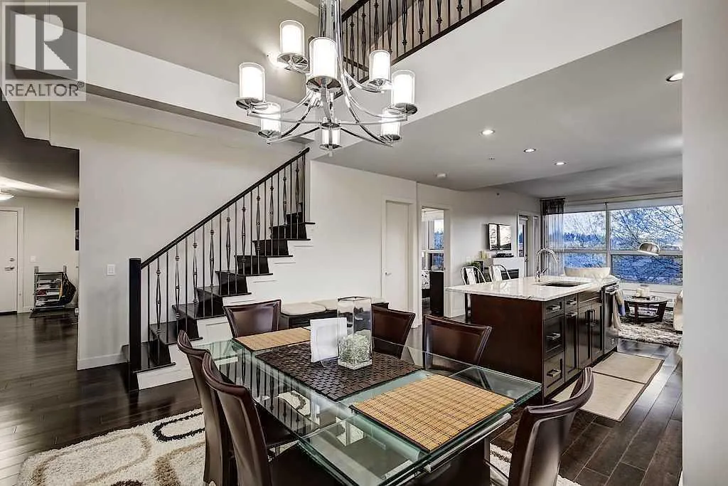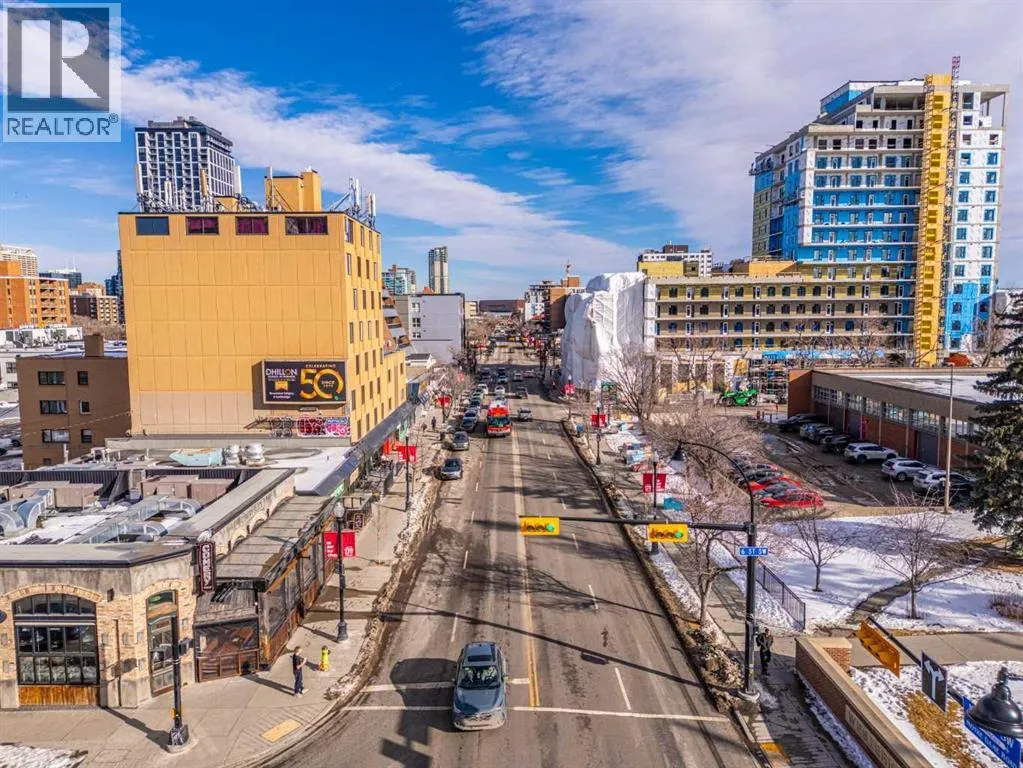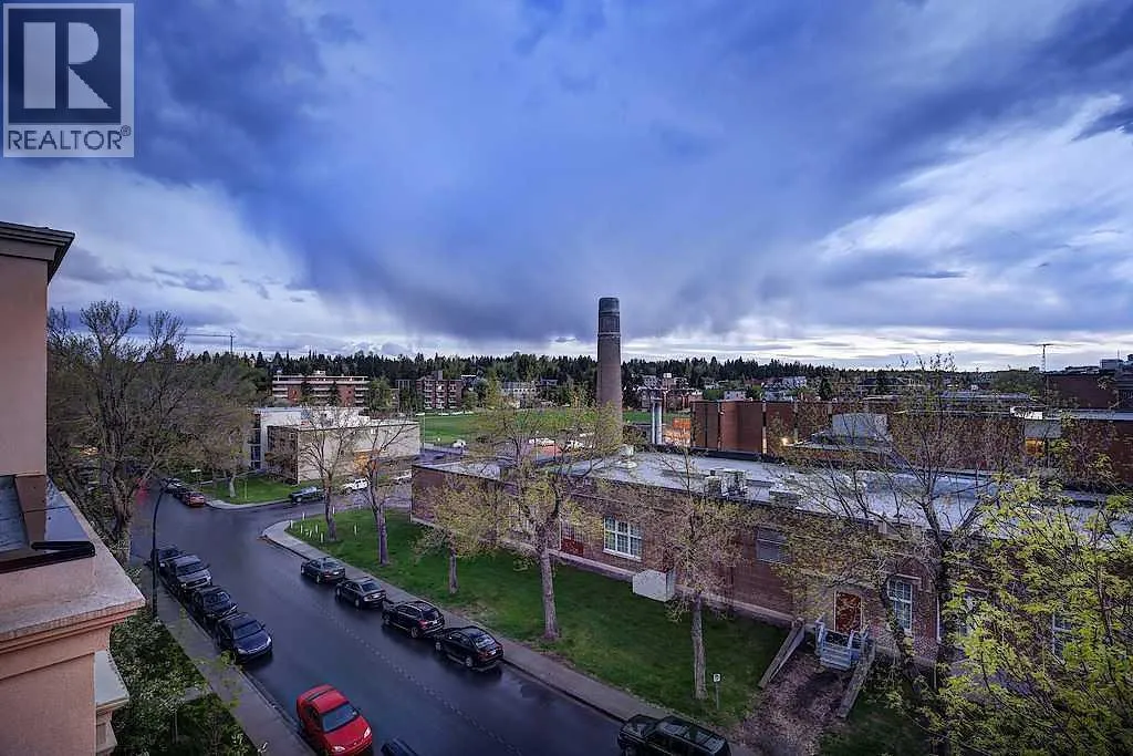 This one of a kind, top floor, two storey, west facing corner unit offers over 1,400 sq ft of a thoughtfully designed layout. Located in Cliff Bungalow, one of Calgaryâs most historic and sought after communities, this former show suite presents exceptional value and a rare combination of size, privacy and views.The unit features an impressive open concept layout highlighted by the expansive windows, espresso hardwood flooring throughout and a dramatic 20 foot ceiling in the dining area. At the heart of the unit is a central gourmet kitchen complete with custom solid wood cabinetry, stainless steel appliances, and a large island with eat up bar, ideal for both everyday living and entertaining. The living room is filled with natural light from the expansive floor to ceiling corner windows and features a fireplace along with direct access to a private balcony. The primary retreat is generously sized and offers double closets, dual sinks, and linen storage. The second bedroom enjoys partial downtown views, double closets, and direct access to a full bathroom, making it a secondary primary suite.Upstairs, the open to below loft provides flexible space for a family room, gym, or home office, and includes direct access to a large, west facing top floor balcony. During the summer months, the outdoor space is often described as a treetop oasis. With its outlook over Western Canada High School, the unit benefits from unobstructed views and exceptional privacyâa rare find in the downtown core. Additional highlights include laundry room with storage, assigned storage locker uniquely located on the same floor, air conditioning, one secure underground parking stall with an additional storage cage. The well maintained small community feel building offers two elevators and a heated parkade, further enhancing everyday comfort and convenience. Request a viewing of one of the best valued units on the market today! (id:27476)