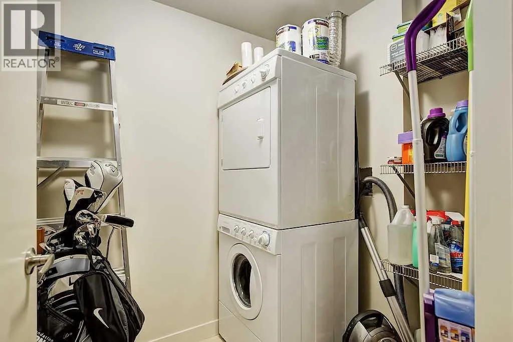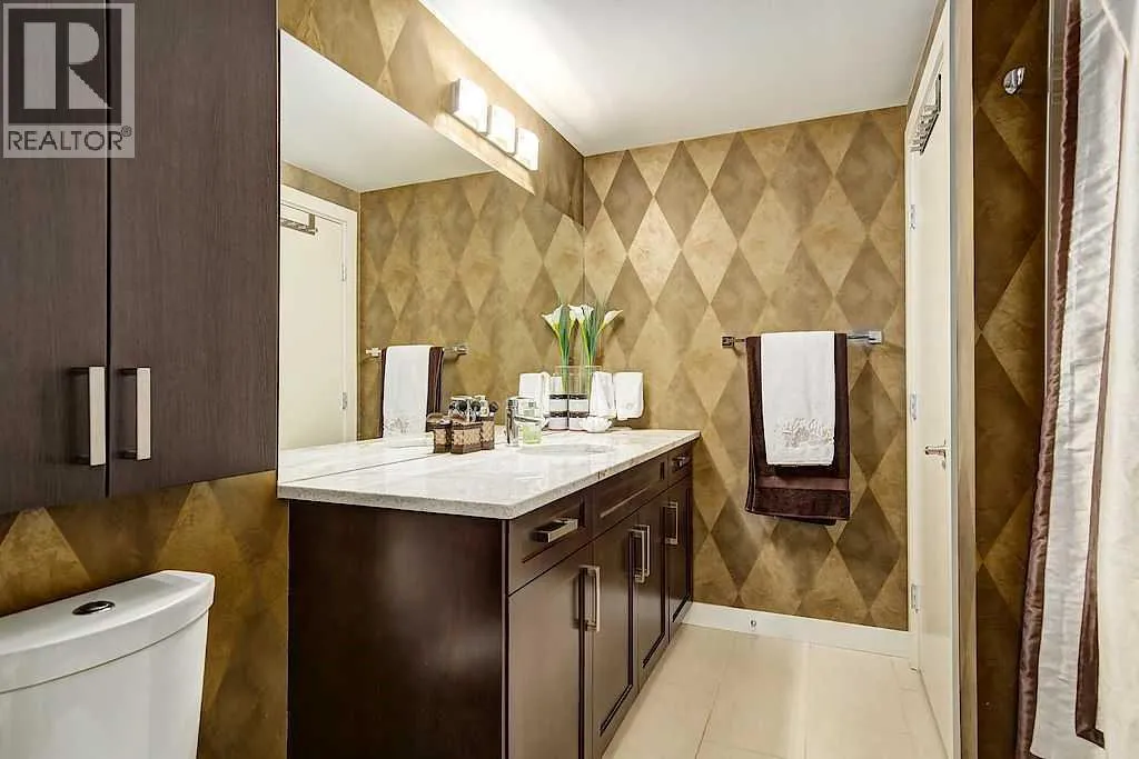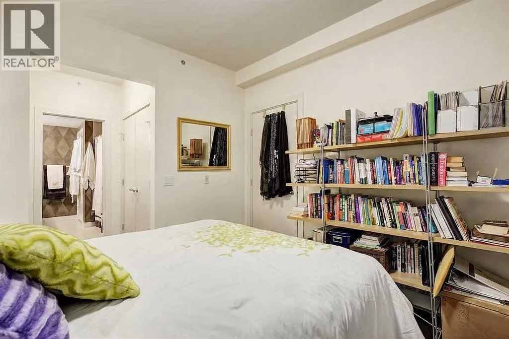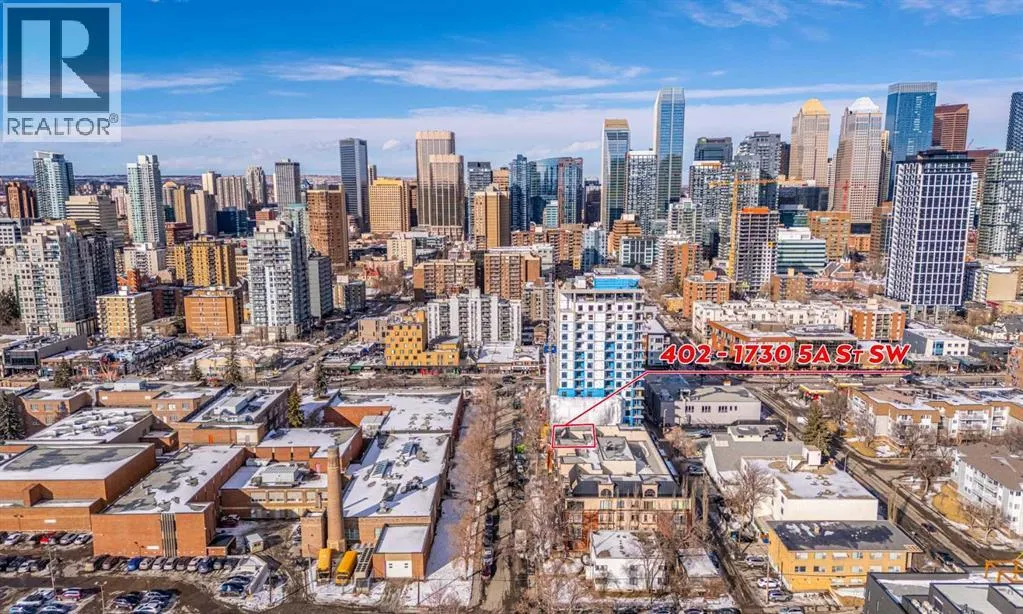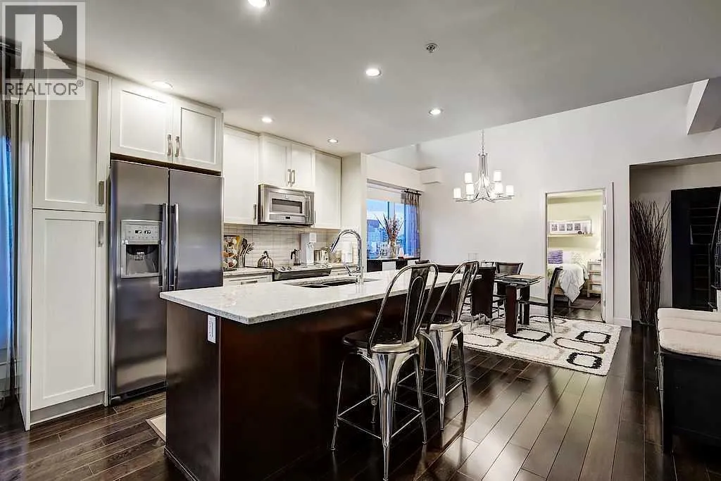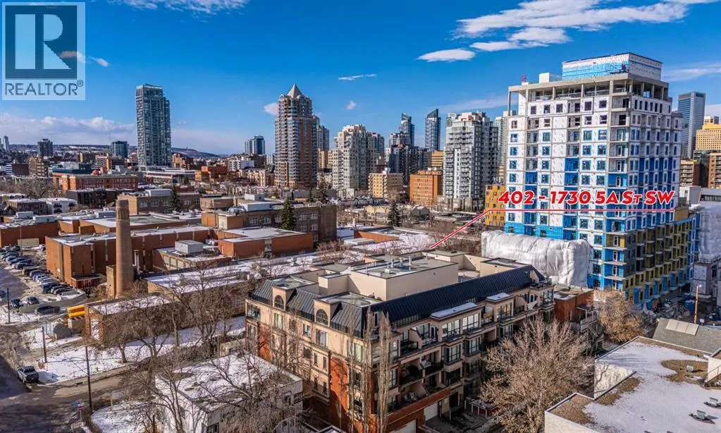 This one of a kind, top floor, two storey, west facing corner unit offers over 1,400 sq ft of a thoughtfully designed layout. Located in Cliff Bungalow, one of Calgaryâs most historic and sought after communities, this former show suite presents exceptional value and a rare combination of size, privacy and views.The unit features an impressive open concept layout highlighted by the expansive windows, espresso hardwood flooring throughout and a dramatic 20 foot ceiling in the dining area. At the heart of the unit is a central gourmet kitchen complete with custom solid wood cabinetry, stainless steel appliances, and a large island with eat up bar, ideal for both everyday living and entertaining. The living room is filled with natural light from the expansive floor to ceiling corner windows and features a fireplace along with direct access to a private balcony. The primary retreat is generously sized and offers double closets, dual sinks, and linen storage. The second bedroom enjoys partial downtown views, double closets, and direct access to a full bathroom, making it a secondary primary suite.Upstairs, the open to below loft provides flexible space for a family room, gym, or home office, and includes direct access to a large, west facing top floor balcony. During the summer months, the outdoor space is often described as a treetop oasis. With its outlook over Western Canada High School, the unit benefits from unobstructed views and exceptional privacyâa rare find in the downtown core. Additional highlights include laundry room with storage, assigned storage locker uniquely located on the same floor, air conditioning, one secure underground parking stall with an additional storage cage. The well maintained small community feel building offers two elevators and a heated parkade, further enhancing everyday comfort and convenience. Request a viewing of one of the best valued units on the market today! (id:27476)