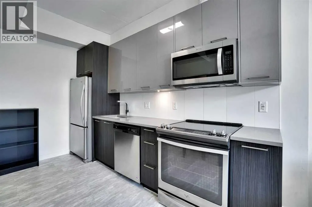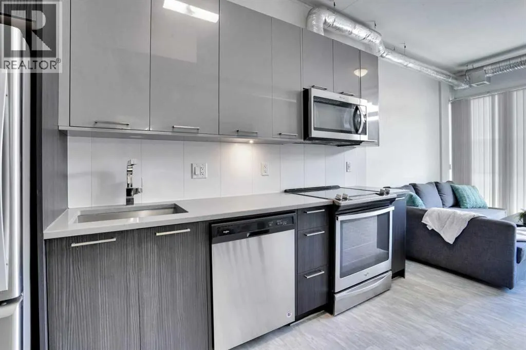 Ever dreamed of living just minutes away from the downtown, in a 1 bedroom (not studio) apartment, in trendy East Village, with the civic heart of the city, City Hall, only 1500 sq ft away, and the Bow River under 1000 ft, and be witness to the transformation of the Stampede grounds into Calgary's foremost entertainment district? Welcome HOME. The INK has been crafted to offer amazing experiences. The kitchen, the heart of any home, will be host to your culinary creations and features quartz kitchen countertops, undermount sink, stainless steel appliances, space-saving over-the-range microwave, easy-to-clean glass top oven. The kitchen / dining and living room all form 1 larger open living space, perfect for either individuals, couples, entertaining or an AirBnb. You'll appreciate the insuite laundry (stacked) and the 4 piece ensuite. The generous balcony allows you to relax outside after a long day, or go up to the rooftop patio. Calgary has an extensive bike network that INK was designed to utilize, including bike storage and bike maintenance. In the same room, there is a pet grooming station. Low condo fees help ensure the affordability. Evenings and weekends, your entertainment options are unlimited with Cowboys Casino and the Stampede grounds on your doorstep. This condo could make an amazing long or shorter term (believe 31 day min) and we can include bed, table, couch, and TV to make it easy. Between the affordable price, the amazing location for both work and play, rental potential, the full laundry, there is LOT to impress. Call today for your private viewing. (id:27476)