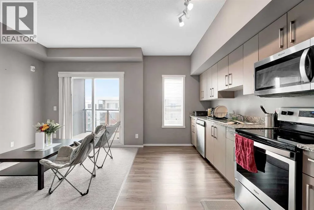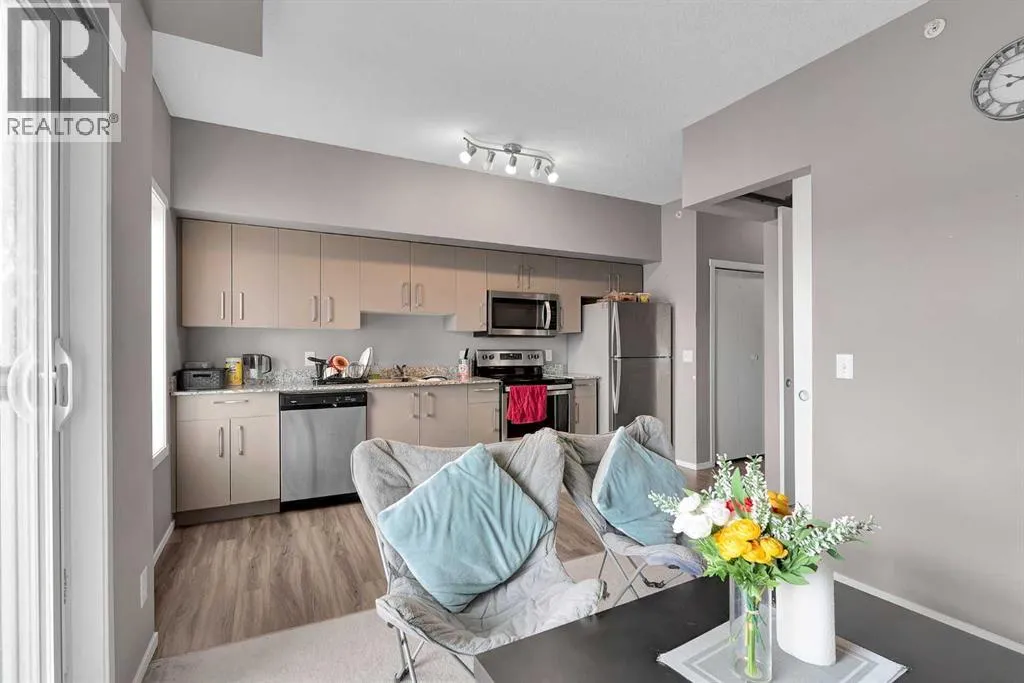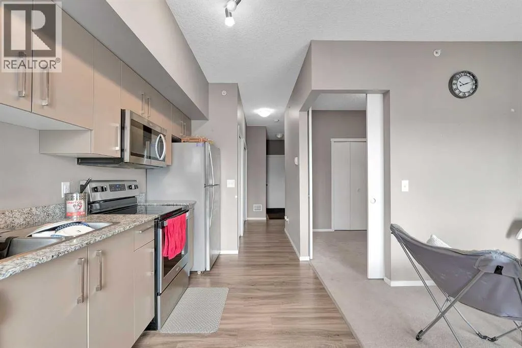 Discover effortless condo living in this immaculate, top-floor unit at Skyview Landing, nestled in the highly sought-after, family-friendly Skyview Ranch. Enjoy a bright, open-concept living and dining area with 9-foot ceilings, perfect for entertaining or simply relaxing. This space extends to a private balcony, ideal for enjoying the view. The modern kitchen features stainless steel appliances and granite countertops. This spacious floor plan includes two bedrooms and a four-piece bathroom. You'll appreciate the exceptional value with low condo fees and a titled, heated underground parking stall. Stay active with access to two gyms conveniently located in buildings 3000 and 4000. Embrace a low-maintenance lifestyle with quick commutes to the city's best amenities via Metis Trail, Stoney Trail, and Country Hills Blvd. Check out the virtual tour or book your private showing today! (id:27476)