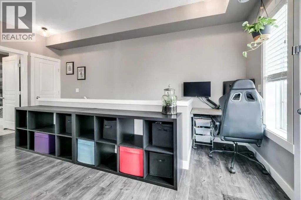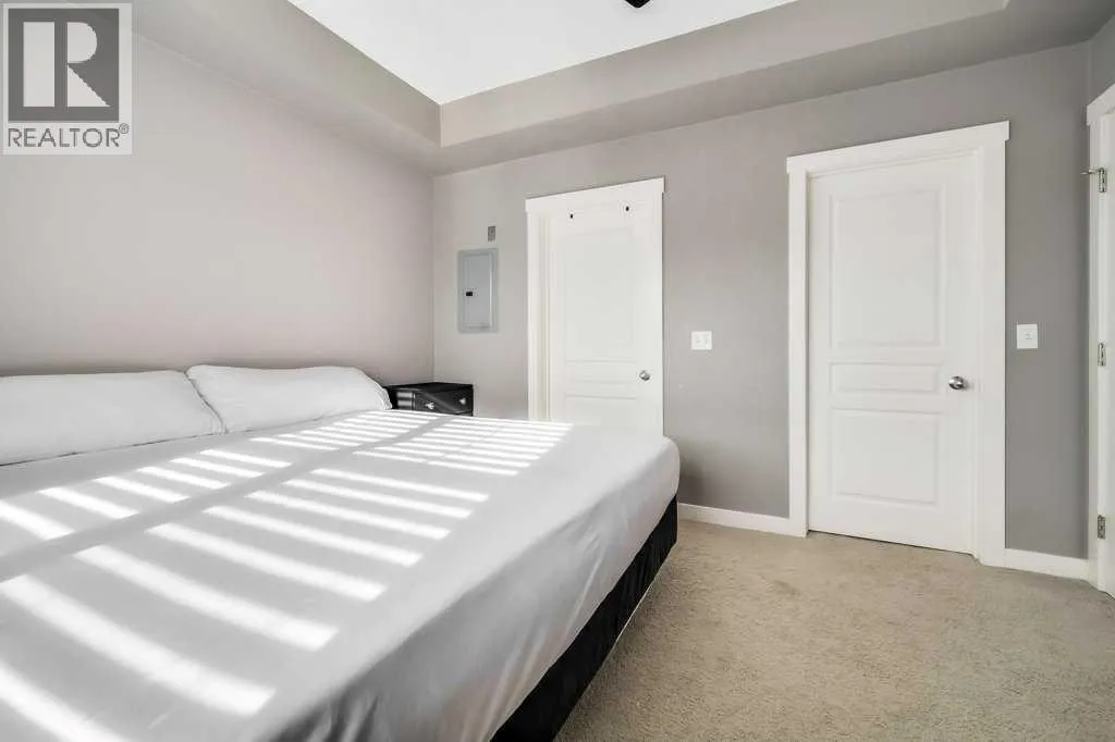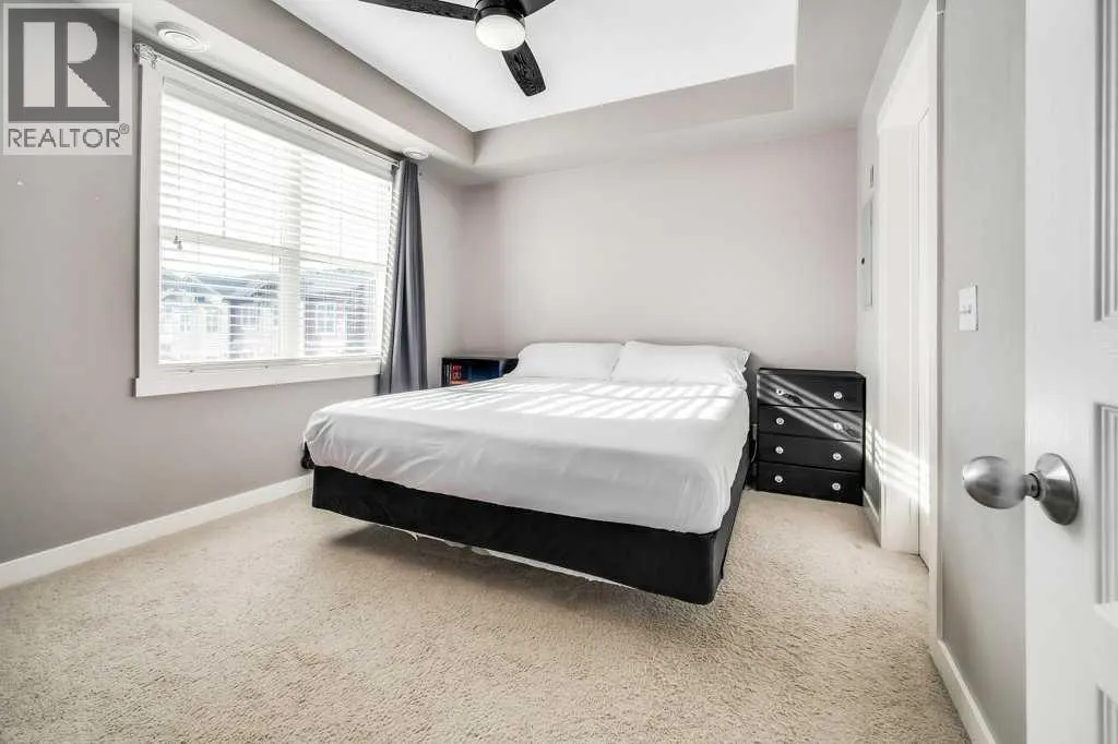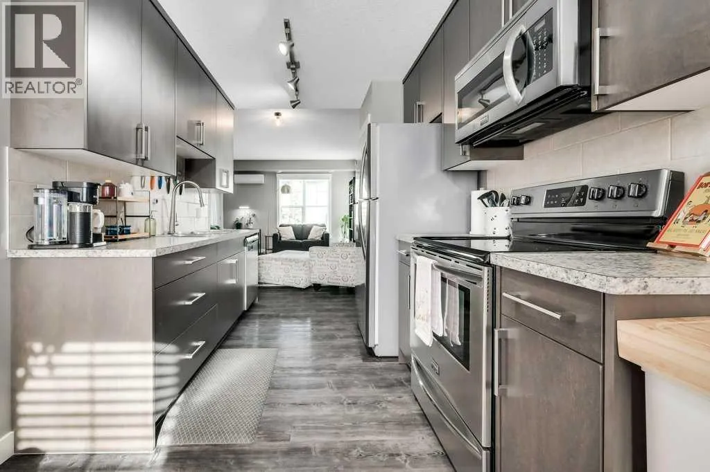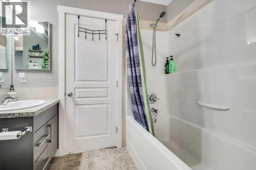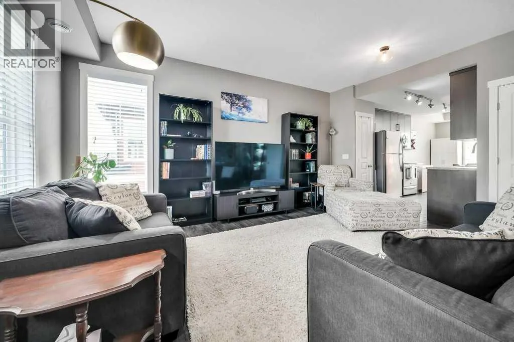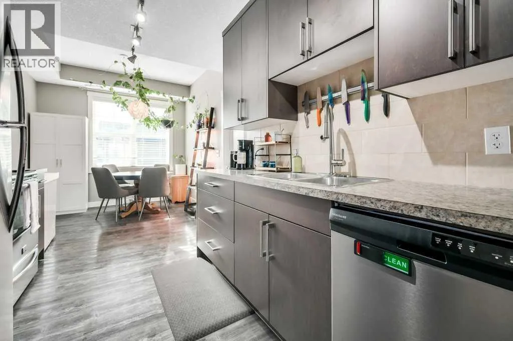 Welcome to your next chapter! A bright and trendy bungalow style townhouse nestled in the heart of Cranston. This well maintained home features stylish vinyl plank flooring throughout, soaring nine foot ceilings, and a fabulous kitchen with full height soft close cabinets and drawers paired with sleek stainless steel appliances. The spacious living area is destined to become your favorite gathering spot, whether you are hosting game night or simply unwinding after a long day. Step outside onto the generously sized balcony, complete with a gas line ready for all of your barbecuing needs. The bedroom boasts a walk-in closet and convenient access to the cheater ensuite bathroom, featuring an extended mirror and vanity. A new sixty gallon electric water heater was installed in 2023, ensuring long hot showers and a new heat pump in 2025. You will also appreciate the ample in-unit storage and a single car garage, keeping your vehicle protected and your belongings organized. The condominium is well managed with impressively low monthly fees, plenty of visitor parking, and pet-friendly policies with board approval.The location truly seals the deal. You are minutes from schools, parks, shopping, and the stunning Fish Creek Park. The community hall offers a hockey rink, tennis courts, a water park, and endless activities for every season. Don't miss out on this gem!! Call today for more information. (id:27476)