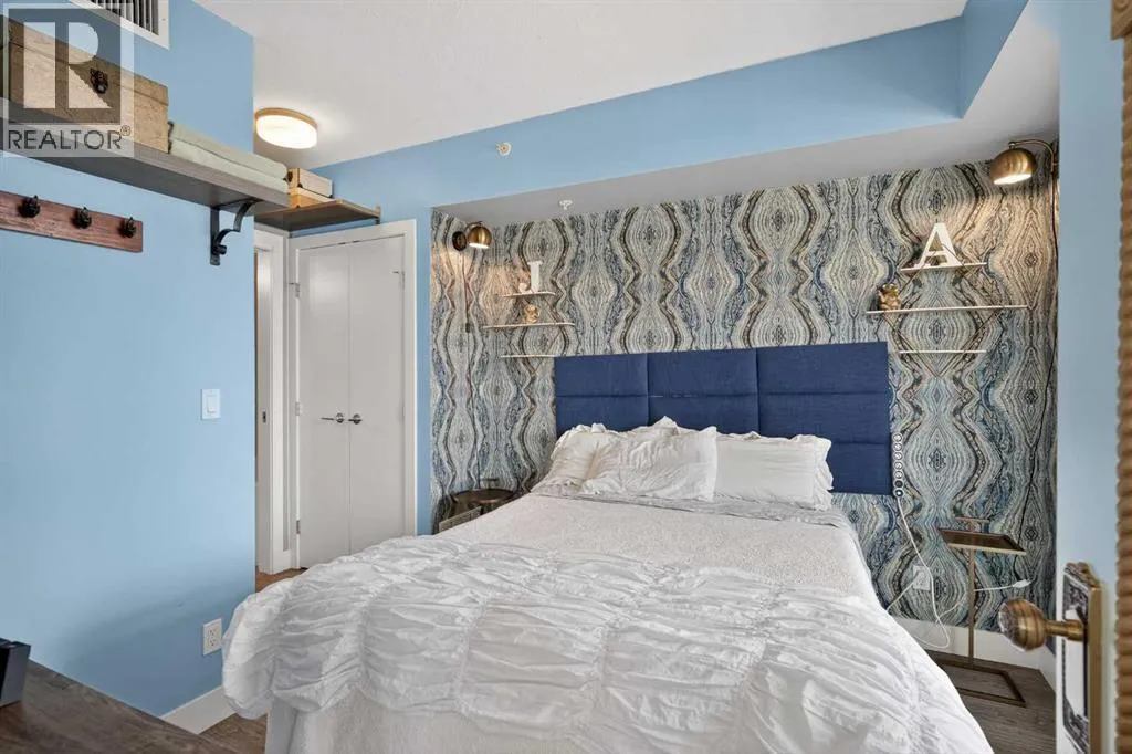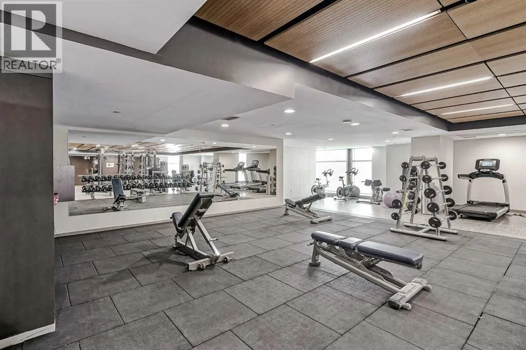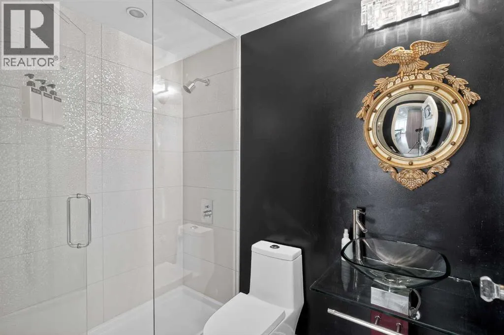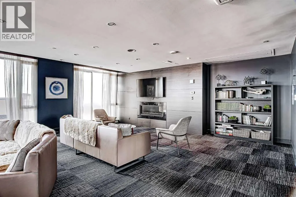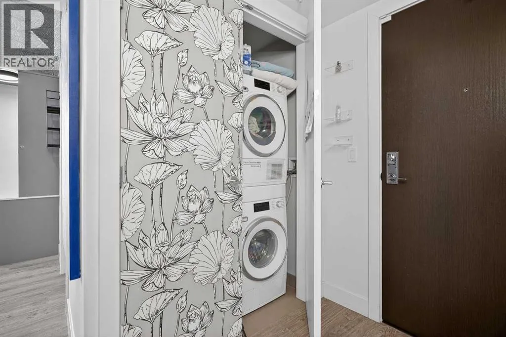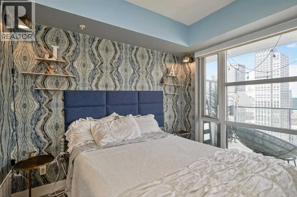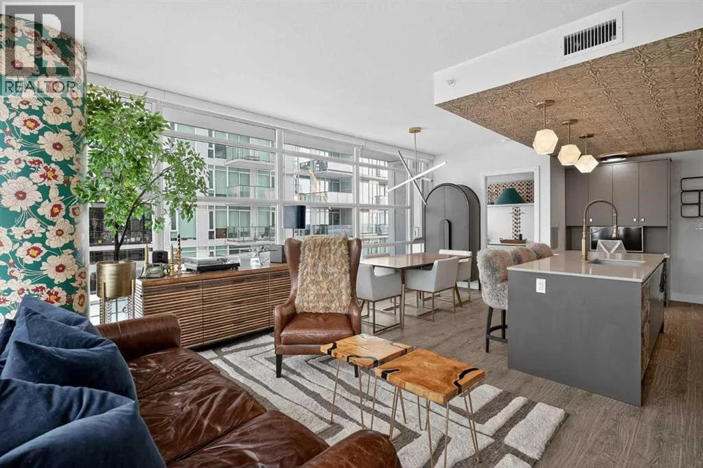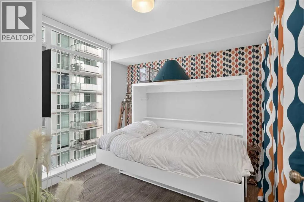 Welcome to the Gaurdian, South Tower. Truly one of Calgary's most sought after and spectacular buildings. This 2 bedroom, 2 bathroom home is unlike any other you have seen. Walking in you are greeted with gorgeous laminate floors, a white and gold feature wall and custom light fixtures. Entering into your open floor plan starts with your chef inspired kitchen with gold fixtures, custom built-in's in the cabinets and drawers, custom back splash, quartz counter tops and built-in stainless steel appliances. The large dining space is not something you normally find in a condo and is a great area to entertain or for quiet nights at home with the family. Your living room is a great size and offers you expansive VIEWS of DOWNTOWN, THE CALGARY TOWER, the MOUNTAINS, and connects to you west facing balcony. With this home being a corner unit you have amazing floor to ceiling windows offering views from every room. The primary bedroom is large enough for a king size bed as well as additional bedroom furniture and has a beautiful ensuite bathroom. The second bedroom is also a great size and has a custom MURPHY BED that was designed for the space and doubles as a home office. The second bathroom is custom designed and has a huge walk-in shower. The unit INCLUDES ALL TV'S AND MOUNTS as well as 2 TITLED SIDE BY SIDE UNDERGROUND PARKING SPACES!!!!! The Gaurdian has great amenities including a massive gym, social room, garden terrace, workshop, and is steps from the stampede grounds, great restaurants, shopping, bus and train routes giving you the best of downtown living. Do not miss out on your opportunity to own the most unique home in one of Calgary's most desired luxury buildings. (id:27476)