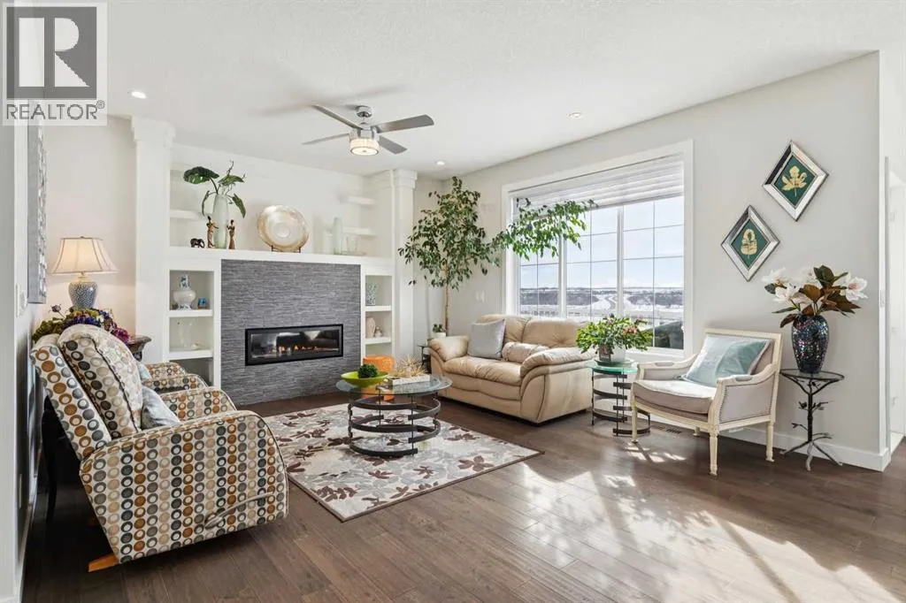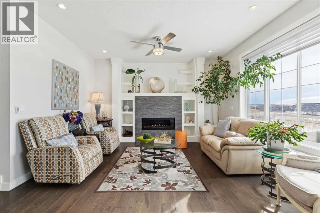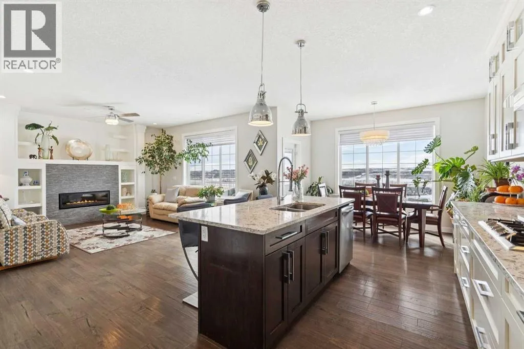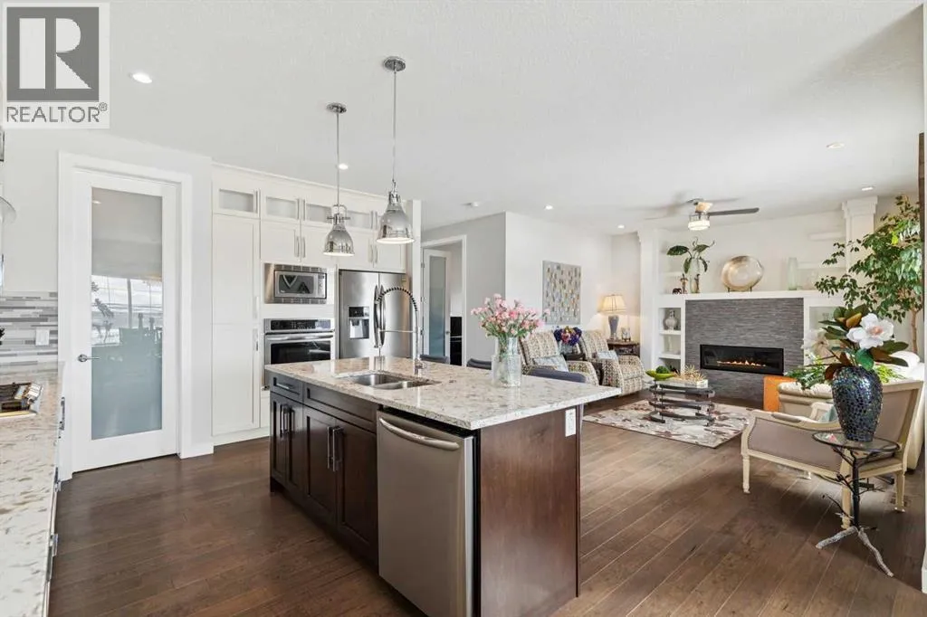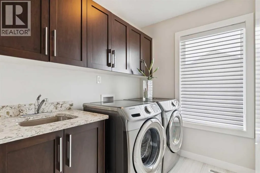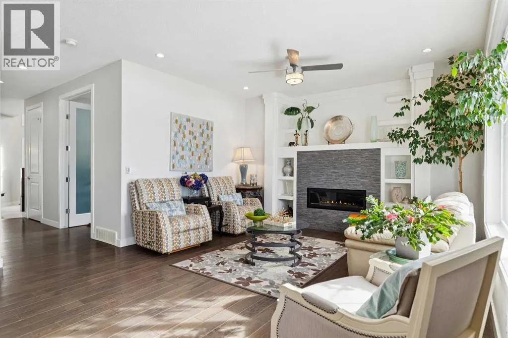 Boasting 3,558 sq ft of developed living space (2,559 sq ft above grade), this executive-level residence offers uninterrupted SW views across the expansive Cranston Escarpment green space toward the breathtaking Canadian Rockies. With its coveted SW exposure, the home is drenched in natural light throughout the day, creating a warm & inviting atmosphere all day long. A dramatic two-storey vaulted ceiling welcomes you into the highly functional floor plan. Designed with entertaining in mind, the open-concept main floor showcases stunning views from every angle. The living room is anchored by a beautiful gas fireplace with custom built-ins, creating a refined & comfortable gathering space. The chef-inspired kitchen features a gas cooktop, built-in wall oven, & a substantial island offering generous prep space & seating for family/guests. The dining area sits adjacent to the kitchen, perfectly positioned to take in the impressive SW mountain views. Step out onto the spacious balcony to enjoy uninterrupted views & spectacular sunsets. The large mudroom & a walk-through pantry provide the utmost in convenience. A dedicated main floor den/office & a 2pc powder room complete the main. Upstairs, youâll find three generously sized bedrooms. The primary retreat captures the same spectacular views & offers a large walk-in closet & a decadent 5-piece ensuite. One of the secondary bedrooms features a cheater door to the well appointed 4pc bathroom. A spacious bonus room is ideal for family movie nights & the upper laundry room includes additional storage & a utility sink. The fully developed walk-out lower level is filled with natural light, it truly doesnât feel like a basement. This level includes a 2nd kitchen area, a 2nd washer & dryer, a 4th bedroom, & a large recreation space, making it ideal for extended family, teens, or multi-generational living. Step outside to the low-maintenance landscaping complete with a stone patio & walkway. The rear gate opens directly onto expa nsive green space & endless community pathways. The oversized double attached garage features over-height ceilings, offering an abundance of storage options & excellent flexibility for larger vehicles or additional shelving. With the completion of the new Ring Road, commuting around the city is convenient, & schools of all levels are just minutes away. The stunning SW exposure & panoramic mountain views must be experienced to be fully appreciated, watch the seasons change & enjoy the ever evolving beauty of the Rockies from all three levels of this exceptional home. Call for more information! (id:27476)