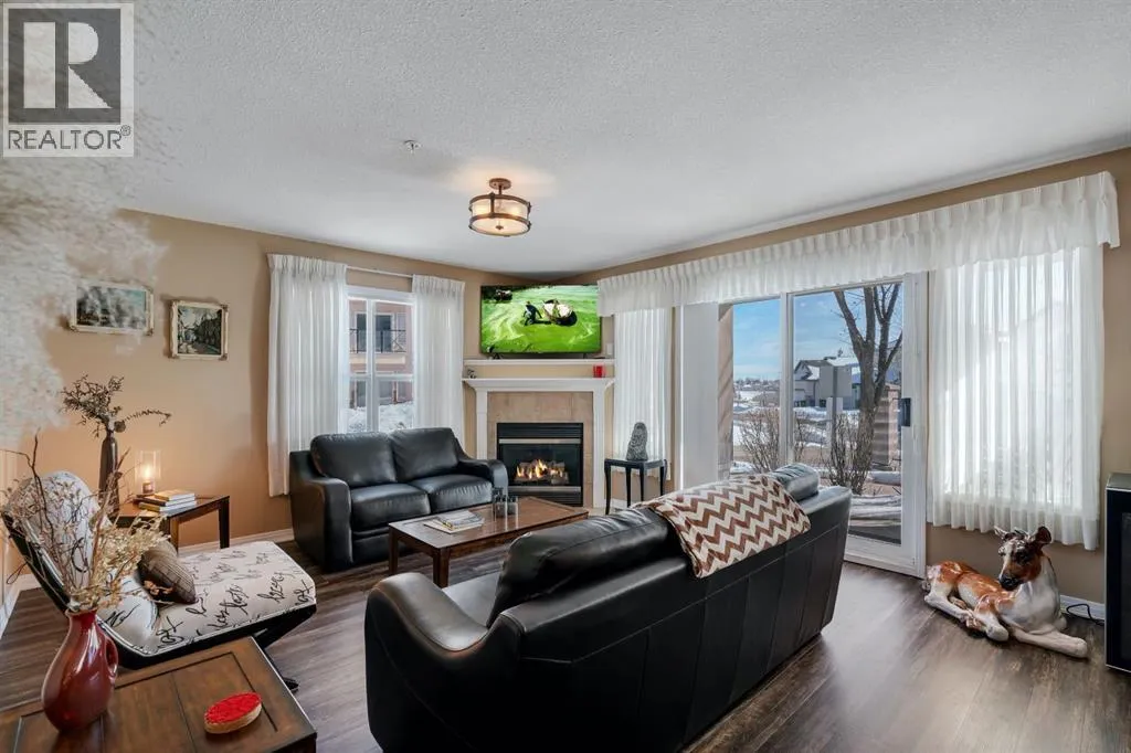 Wow, wow, wow! Such a rare offering! Welcome to this extra large 1240 sq ft , 2 bedroom, 2 bathroom corner unit with two private patios, titled underground parking, fantastic amenities and located in NW Calgaryâs only lake community, Arbour Lake. The kitchen is an entertainerâs dream with an abundance of cabinetry and counter space, a walk in pantry, stainless steel appliances and a large island with breakfast bar seating. The open concept layout flows beautifully into the bright and inviting living space featuring a cozy soothing fireplace and sliding glass doors that lead to your private patio, perfect for BBQs and outdoor dining. The spacious primary suite is truly impressive with plenty of room for a king sized bedroom set, a large walk through closet and a generous ensuite complete with ample counter space and a linen closet. Sliding glass doors also lead to a second private patio, the perfect spot to enjoy your morning coffee or an evening cocktail. The second bedroom is also generously sized and conveniently located next to the second full bathroom, making it ideal for guests, family or a home office. Newer Luxury vinyl plank flooring runs throughout the home and the oversized laundry room offers excellent storage space. This exceptionally well managed 18+ complex is known for its peaceful atmosphere and strong sense of community, where listings rarely come to market. Residents enjoy outstanding amenities including a fully equipped fitness centre with sauna and change rooms, a recreation room with kitchen and games area, a woodworking shop, beautifully landscaped grounds with a pond, gazebo and fountain, and plenty of visitor parking. Located just steps from transit, pathways, parks and the private Arbour Lake beach, you will enjoy year round lake access including swimming, skating, tennis courts and a clubhouse. Shopping, restaurants and schools are all nearby with quick access to major routes for an easy commute downtown or a weekend escape to the mountains . This is more than just a condo, itâs a lifestyle! Mr. and Mrs. Clean truly live here! This is a home where pride of ownership is unmistakable! Start enjoying lake living this summer in Arbour Lake, Calgaryâs award winning four season lake community. This property is the ultimate combination of beauty, comfort, and long term value. A forever home designed for you and memories on the water. Do not miss it! Call today!.A must to see! (id:27476)