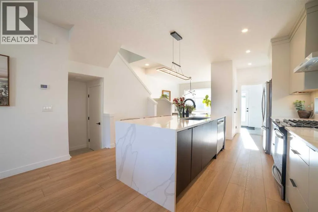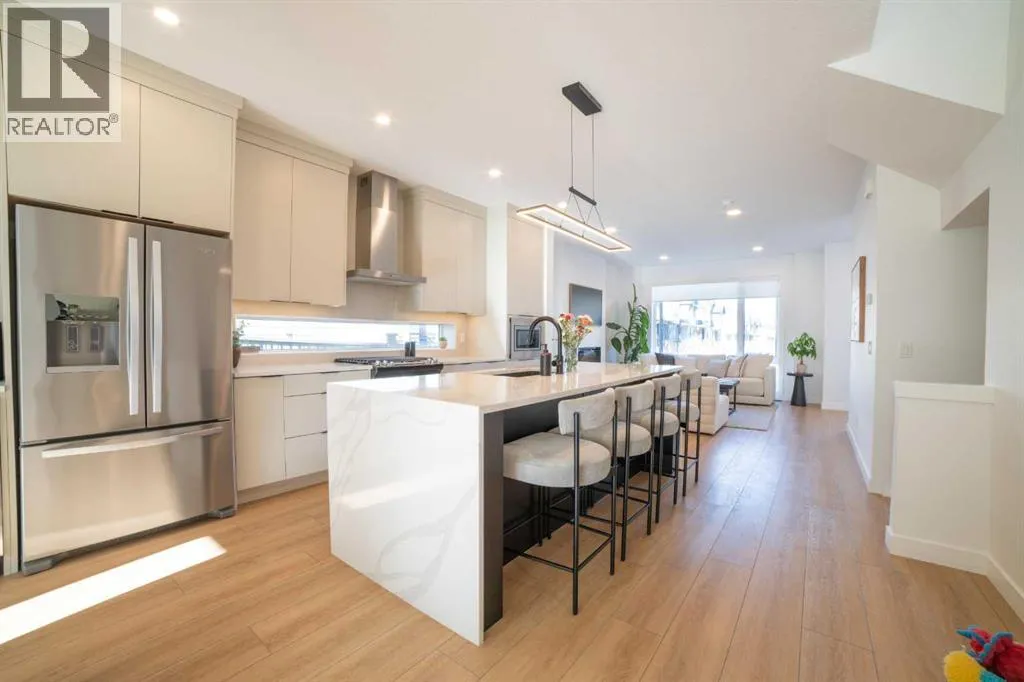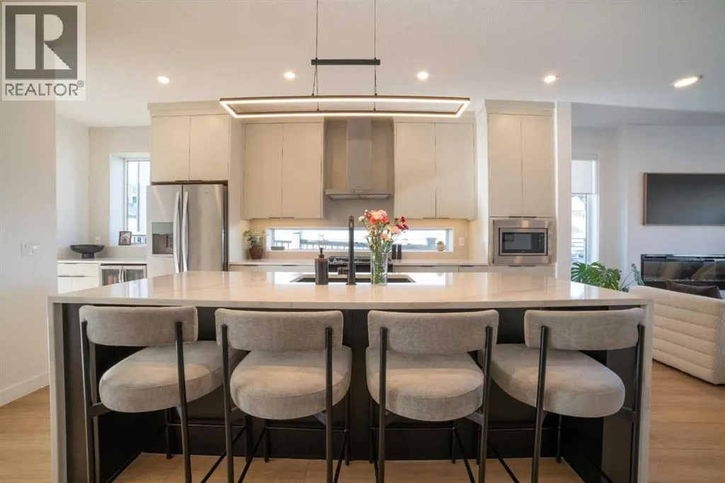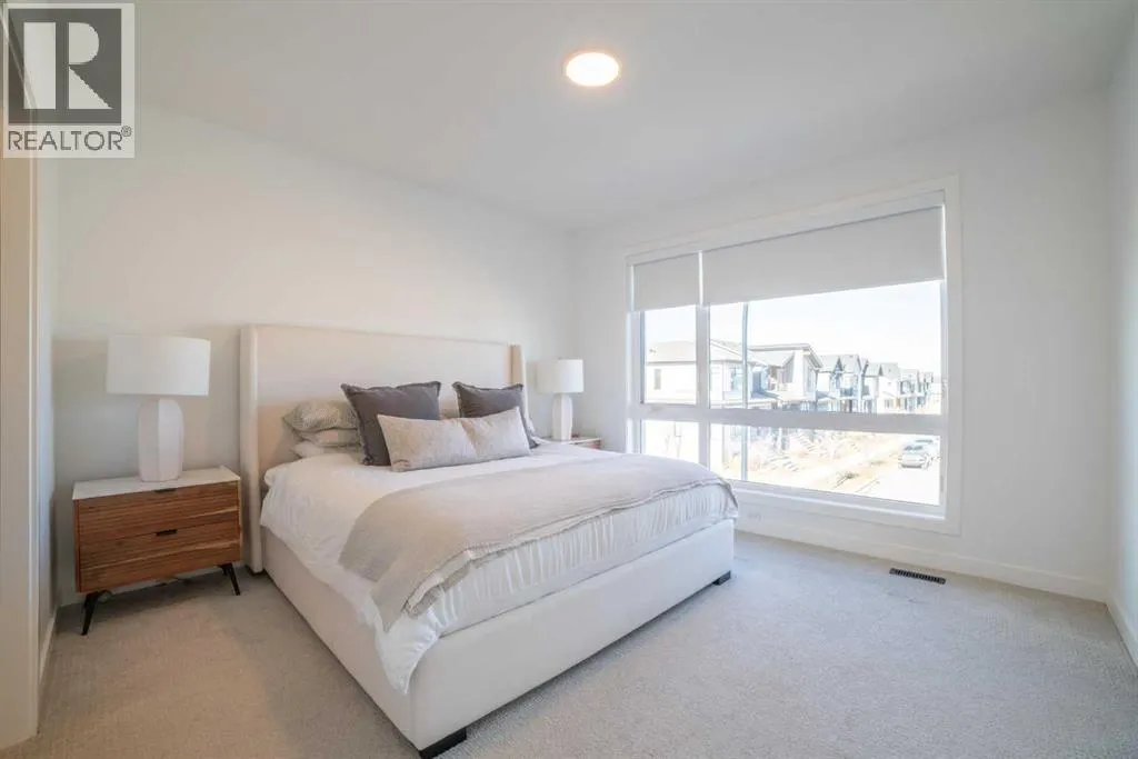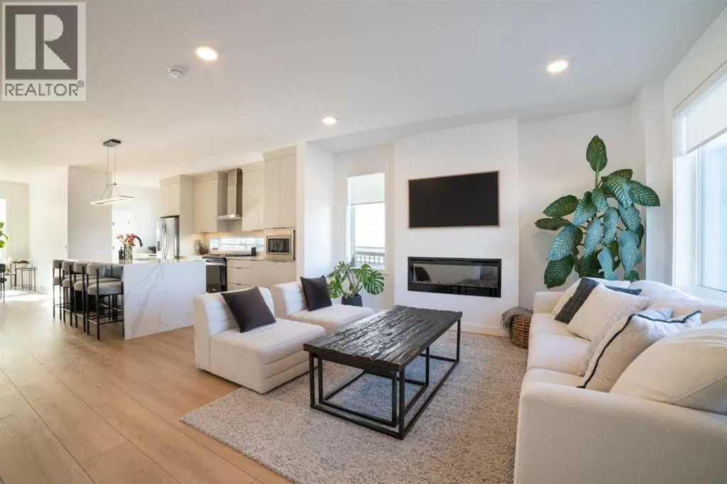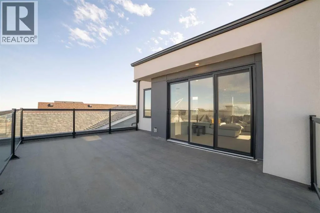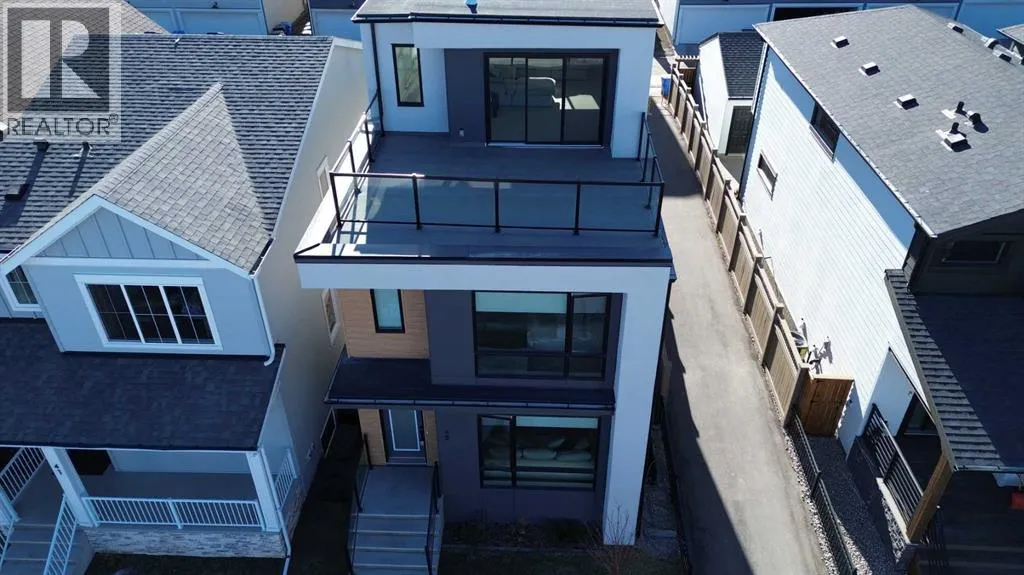 Donât miss this fantastic 3 bedroom, 2.5 bath home offering nearly 2,100 sq ft of living space, ideally situated on a corner lot in the sought-after community of Alpine Park.The home features beautiful modern and elegant finishes throughout, including white oak luxury vinyl plank flooring, quartz countertops, soft-close kitchen and bathroom cabinetry, stainless steel appliances, ceramic tile, high-quality carpet, recessed lighting, knockdown ceilings, upgraded light fixtures, and bright off-white paint.The main floor boasts 9-foot ceilings. At the front, a spacious living room, complete with a built-in electric fireplace. The kitchen features an oversized waterfall island, ceiling-height cabinetry, pot drawers, built-in microwave, gas range, executive hood fan, coffee bar, built-in mini fridge, and additional windows that fill the space with natural light. The dining area is tucked toward the backyard, creating a cozy dining experience, with floor-to-ceiling windows that bring in plenty of natural light.Upstairs, the 9-foot ceilings continue throughout the second floor. The large primary bedroom includes a spacious walk-in closet and an impressive ensuite featuring dual sinks, a soaking tub, and a tiled stand-up shower. Down the hallway youâll find a conveniently located laundry room, a 4-piece bathroom, and two generously sized bedrooms, each with their own closet.The third floor offers an exceptionally large bonus room, surrounded by windows on nearly every side, along with an oversized private rooftop patio with glimpses of downtown Calgary. This space is perfect for relaxing on summer evenings or hosting friends and family for weekend BBQs.The home also includes a detached two-car garage, private fenced backyard, central air conditioning, and a large unfinished basement with endless possibilities. This home is in a great community with lots of green space, water features, upcoming school and commercial developments. Its a 5 min drive away from many exi sting schools, grocery stores, restaurants and a Costco! (id:27476)