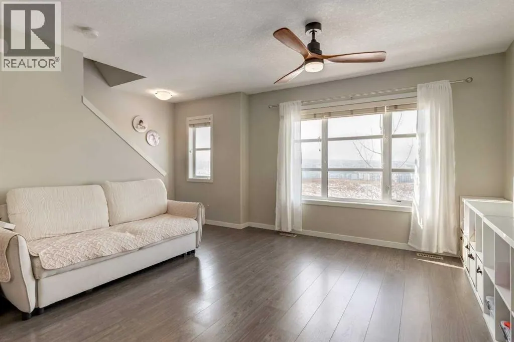 Open House 2-4PM, Saturday, April 4, 2026. Priced to sell! Enjoy breathtaking ravine and green space views from this beautifully maintained 3-bedroom, 2.5-bathroom townhome in Vantage on Evansridge. With nearly 1,541 sq. ft. of finished living space, a double attached garage, and low condo fees, this home offers outstanding value compared to nearby single-family houses. From the private front patio, step into the main floor featuring a versatile bedroom that can also serve as a home office or den, along with direct access to the garage. Upstairs, the open-concept second level is anchored by a stylish kitchen with a large granite island, stainless steel appliances, dark-stained maple cabinets, and a spacious pantry. The kitchen flows seamlessly into the dining area and bright living room, where expansive windows frame the stunning ravine views. A balcony with a gas line and a convenient half bath complete this level. The top floor offers three bedrooms, two full bathrooms, and laundry. The primary suite features a walk-in closet and a beautifully upgraded ensuite with a double shower. Additional highlights include Hunter Douglas window coverings, a water softener, and an insulated garage that easily fits two vehicles. This move-in ready home is surrounded by natural pathways, playgrounds, and green space, with Our Lady of Grace School, transit, and quick access to Stoney Trail and Deerfoot nearby. With incredible views, modern finishes, and a fantastic location, this is the perfect place to call home. Click the Virtual Tours for more detail! (id:27476)