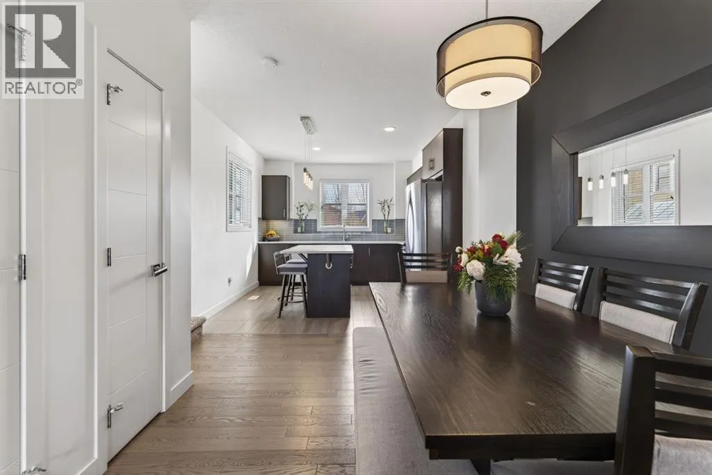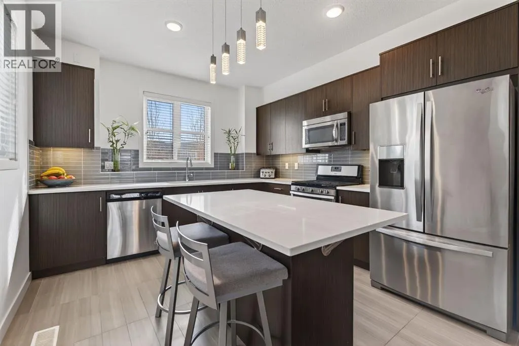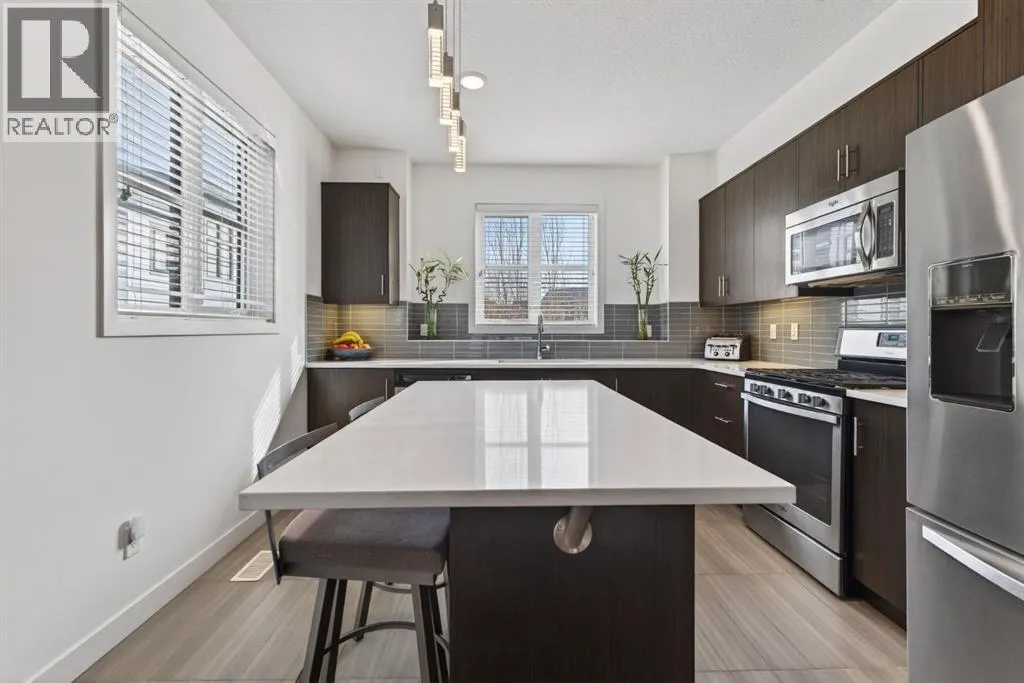 Welcome to this stylish and well-maintained 3-bedroom, 2.5-bathroom townhouse located in the vibrant community of Walden. Built in 2015 and thoughtfully designed for modern living, this inner-loop end unit offers added privacy while facing a quiet green space, creating a peaceful setting just steps from everyday conveniences. The bright and open main level features a contemporary layout perfect for both daily living and entertaining. Large windows allow natural light to fill the living room, while the modern kitchen showcases sleek cabinetry, quartz countertops, stainless steel appliances including a gas range, and ample counter space for cooking and gathering. The dining area flows seamlessly to the private balcony, creating a great space to enjoy morning coffee or relax in the evening. Upstairs, the home offers three comfortable bedrooms, including a spacious primary retreat complete with its own private ensuite bathroom. Two additional bedrooms and a full bathroom provide flexibility for family, guests, or a home office. The lower level provides access to the double tandem attached garage, offering secure parking and excellent storage, along with the added convenience of an additional outdoor parking stall. You will enjoy the a/c on those hot summer days that are just around the corner. One of the standout features of this home is its exceptional location. Residents will appreciate being just a short walk to the Township shopping area, with restaurants, groceries, cafés, and everyday amenities nearby. Outdoor enthusiasts will love the nearby parks, pathways, and green spaces, perfect for walking, biking, or enjoying the outdoors. Commuting is also easy with convenient access in and out of the community and quick connections to major routes. Offering modern design, functional living space, and a fantastic location, this home is an excellent opportunity to enjoy comfortable townhouse living in one of Calgaryâs sought-after south communities. (id:27476)