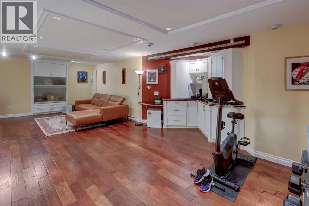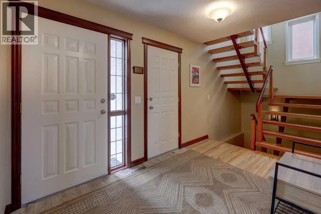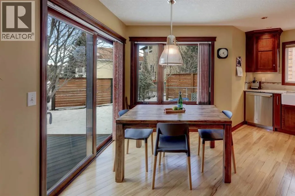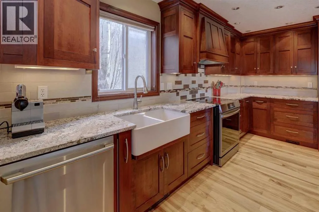 Quality, custom and artistic design elements add up to this WOW factor! Showcasing premium materials for the discerning buyerâ¦coupled with a quiet location within Westchester Point in Scenic Acres. Over $58,000 of updates over the past few years, comprising of the replacement of Poly B pipes that included the main water service pipe line out to the City street connection (2023). Further inclusions are a new energy star certified furnace (2023), new garage overhead door (2024), and a new induction cooktop stove (2025). Presenting over 2,500 sq. ft. of total living area with 3 bedrooms, 2.5 bathrooms, developed basement and a beautifully landscaped backyard with a low maintenance composite deck and view out to the ravine beyond. The main floor will draw you in with the hickory hardwood flooring, cherry hardwood baseboards/window & door trim. Carrying into the dining room and continuing on into the custom designed kitchen with solid cherry wood cabinetry, granite countertops, a ceramic farmer apron-front sink, under cabinet lighting, an impressive custom island, a commercial grade hoodfan and SS appliances. A custom made room divider between the kitchen/living room incorporates an artistic element given the red steel, wood & glass materials. The living room houses a larger gas fireplace surrounded with custom tile work and a custom cherry wood mantle. Several interior doors are solid hickory wood including the one of a kind custom sliding door system into the laundry closet. The main floor powder room also showcases a custom cherry wood vanity, mirror and a ceramic farmer apron-front sink. An unforgettable custom open riser staircase with steel and glass railings, incorporates solid Douglas-fir treads. Majority of the upper level features solid cherry hardwood flooring. The Primary bedroom presents a 4 piece ensuite with barn door, soaker tub/separate shower stall along with a walk in closet. While a 4 piece bath services the other 2 bedrooms. An additional artistic el ement is found on this level with the custom steel/wood & glass guardrail in the landing. The basement includes engineered hand scraped hickory hardwood flooring, a dedicated soundproof space for podcasting or recording, built in cabinetry, solid core door, an abundance of storage, a large rec room easily divided into functional spaces, ceiling speakers, and a rough-in for a future bathroom. Numerous windows have updated triple pane/low E coating. Only steps away from the playground leading into the ravine with pathway system that winds through the community. Walking distance to Bowness Park & Bowness River, Crowchild Twin Arenas, French immersion school @ Ecole du Nouveau-Monde, tennis courts, baseball diamond and City transit. A short drive to the Crowfoot LRT Station, and Crowfoot Crossing Shopping Ctr. with a variety of amenities including Co-Op and Safeway grocery stores. Easy access to Crowchild Trail and Stoney Trail. This home is truly a must see!! (id:27476)
