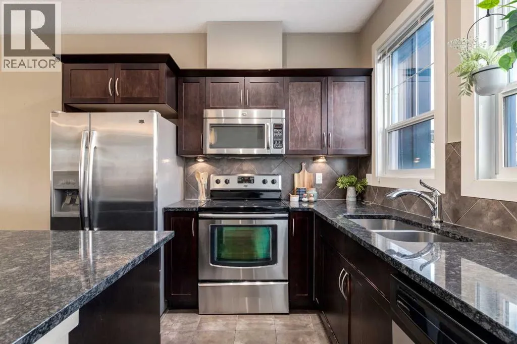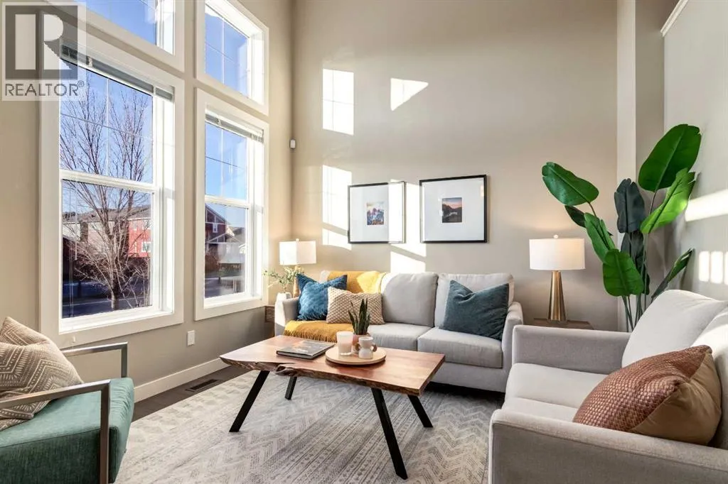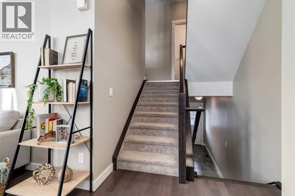 Welcome to this incredibly bright, freshly painted and spacious five-level townhome, perfectly situated in a family-friendly northwest community close to schools, shopping, and major throughways. Thoughtfully designed with a fantastic layout, this home is ideal for both everyday living and entertaining.The main level features a stylish, open entertaining space with tall ceilings (14 ft), flooded with natural light from large windows as hardwood flooring finishes the space. Moving up a level, you're greeted with a spacious kitchen along with convenient main-floor laundry and a two-piece powder room. Step out onto the east-facing balcony and enjoy beautiful morning sunshineâperfect for coffee or quiet starts to your day.This home offers two generous primary bedrooms, each complete with their own private four-piece ensuites, providing excellent comfort and privacy. Additional highlights include a single attached garage and a small unfinished basement, offering excellent storage or future development potential. On the front of the home, a charming patio offers a great spot to relax and watch the world go by. Bright, welcoming, and well located, this townhome is a fantastic opportunity in a sought-after NW neighborhood. (id:27476)