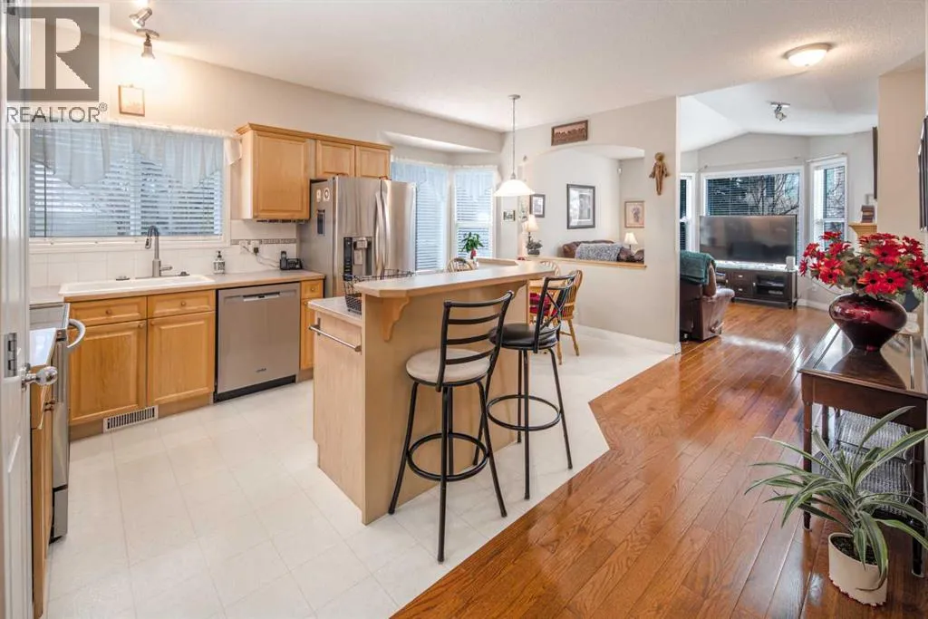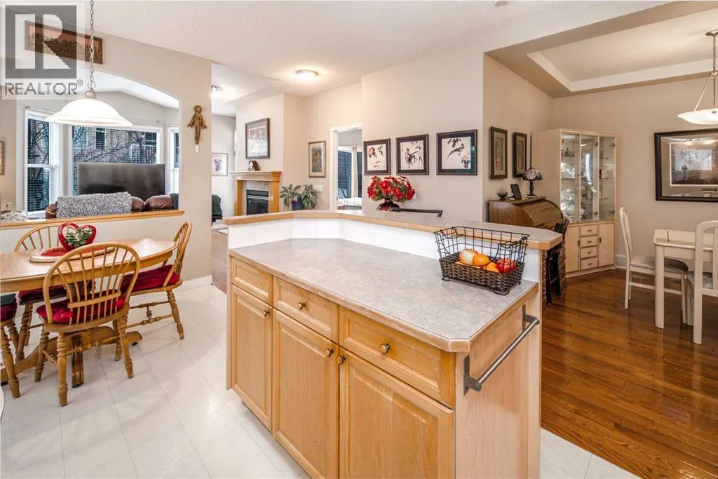 Welcome to this beautifully maintained 18+ villa, ideally located in the sought-after community of Panorama Hills. Offering approximately 2,400 sq. ft. of fully developed living space, this home provides ample room to suit all your lifestyle needs. Upon entry, youâre greeted by rich hardwood flooring that flows throughout the main level, creating a warm and elegant ambiance. The open-concept design showcases a bright and inviting living room highlighted by vaulted ceilings, a cozy fireplace, and a large window that fills the space with natural light. The kitchen is both functional and welcoming, featuring a central island, abundant cabinetry, a pantry, and a sunny eat-in nook. It connects seamlessly to the formal dining roomâperfect for hosting family gatherings and entertaining guests. A versatile den or home office with a built-in Murphy bed adds flexibility to the main floor layout. The spacious primary suite offers a peaceful retreat, complete with large windows, a walk-in closet, and a well-appointed ensuite featuring a soaker tub and separate walk-in shower. Youâll also appreciate the convenience of main-floor laundry and an additional full bathroom. The fully finished basement expands your living space with a generous family room, a two-piece bathroom, and plenty of room for hobbies, games, or entertaining. Outside, the beautiful backyard creates the perfect setting for relaxing or entertaining. With central air conditioning, a double attached garage, and the benefits of low-maintenance living, this home delivers comfort in every season. Recent upgrades include a new hot water tank, new roof, and new eavestroughs. Located just steps from golf court, and minutes from shopping, dining, and recreation, this exceptional villa truly offers the best of lifestyle and location. Donât miss this opportunityâbook your private showing today! (id:27476)