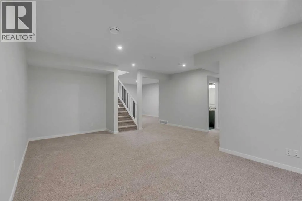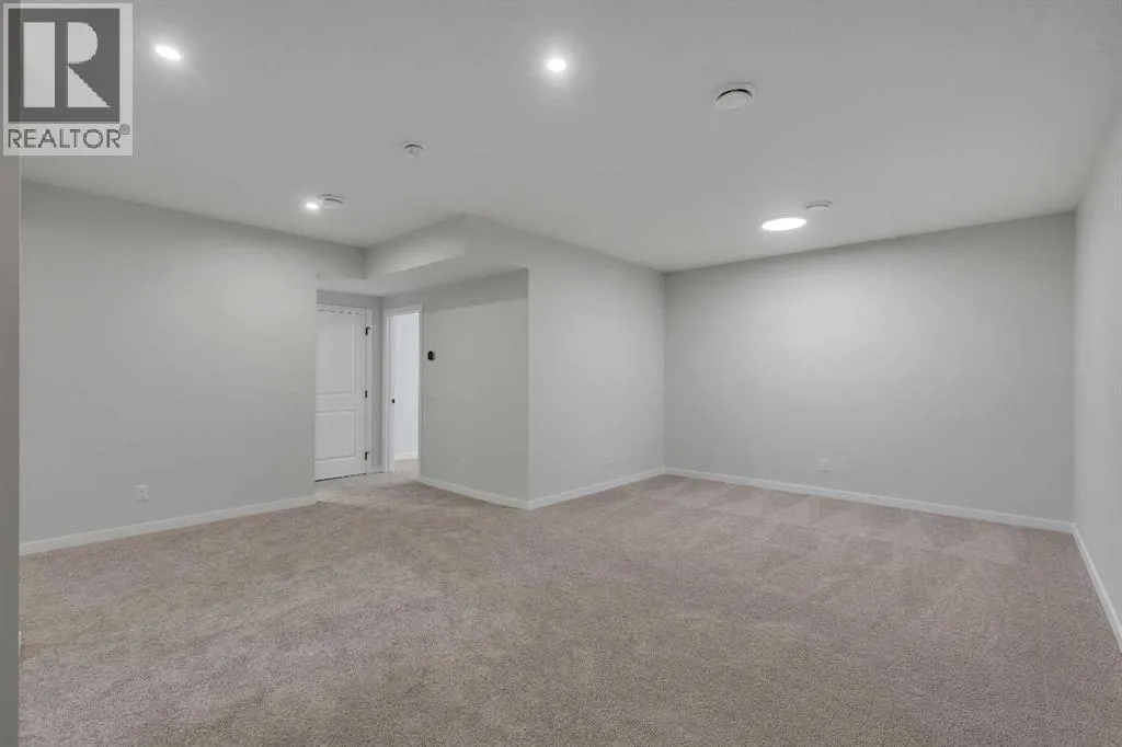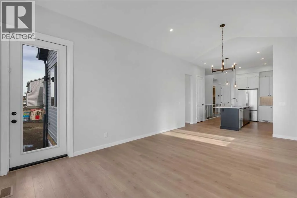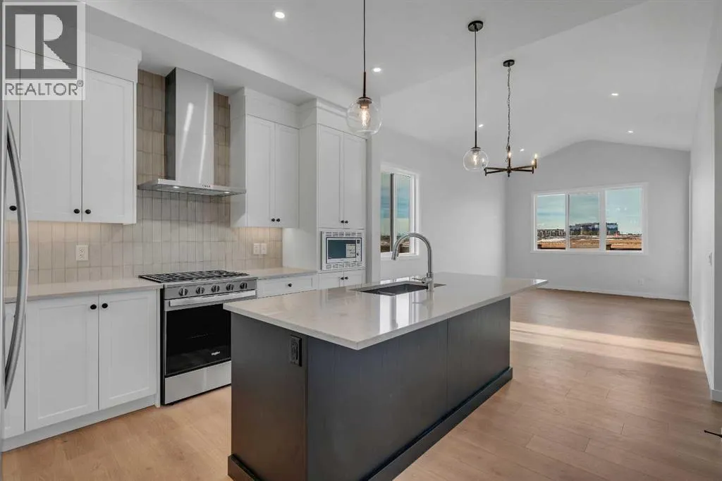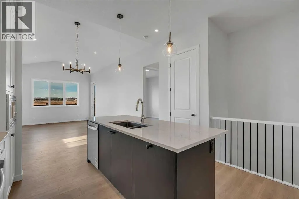 Welcome to The Primrose by Award-Winning Baywest Homes, located in the vibrant and growing community of Rangeview. This beautifully designed 2-bedroom, 2.5-bath bungalow offers 2,588 sq. ft. of thoughtfully planned living space, combining modern comfort with functional design. Step inside to discover a bright, open-concept main floor filled with natural light. The spacious living room features a stunning vaulted ceiling, creating an airy and inviting atmosphere perfect for relaxing or entertaining. The gourmet kitchen is designed with both style and function in mind, featuring full-height cabinetry with bulkhead and crown molding, under-cabinet lighting, and elegant quartz countertops that extend into both bathrooms for a cohesive, upscale finish. The kitchen seamlessly flows into the dedicated dining area and great room, making it ideal for hosting family gatherings or enjoying everyday meals together. The main floor also offers a private office, perfect for working from home or creating a quiet study space. A practical mudroom adds additional storage and convenience for busy households. The primary suite provides a peaceful retreat, complete with a walk-in closet and a luxurious 5-piece ensuite bathroom finished with quartz countertops. Downstairs, the fully developed basement features impressive 9-foot ceilings, enhancing the sense of space and comfort. This level includes an additional bedroom, a full bathroom, and a generous bonus room, offering flexibility for guests, a media area, gym, or recreation space. This front garage home is complete and ready for quick-possession, making this an excellent option for purchasers seeking move-in readiness in a vibrant southeast community. (id:27476)