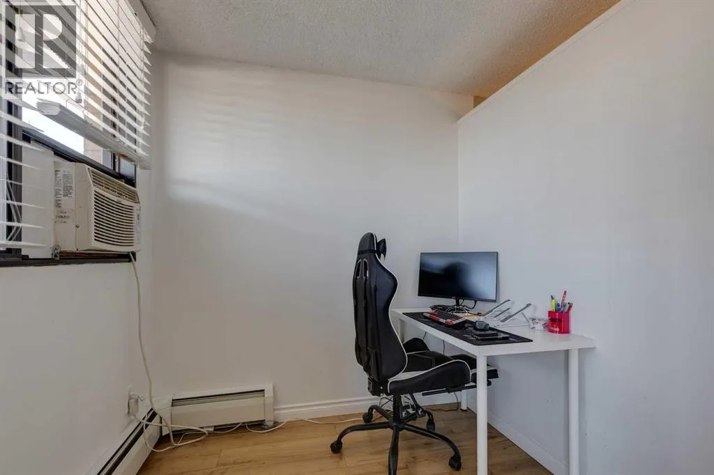 Live where Calgary comes alive. This fully refreshed 1-bedroom plus den in The Huntsman offers the perfect blend of location, lifestyle, and recent upgrades, right in the heart of the Beltline just steps to 17th Avenue, the Bow River pathways, and downtown.This 6th-floor suite has been thoughtfully updated throughout. The entire apartment has been freshly repainted, creating a clean, bright, and modern feel from the moment you walk in. The countertops have been professionally refinished with a contemporary satin finish, cabinetry has been repaired and refreshed, and updated lighting enhances the space with a warm, polished look. Combined with updated laminate flooring and floor-to-ceiling windows showcasing stunning downtown views, the result is a move-in-ready home that truly stands out.Offering over 700 square feet of functional living space, the open-concept layout is flooded with natural light. The kitchen features stainless steel appliances and a convenient pull-up eating bar, perfect for casual dining or entertaining. The spacious den provides flexibility for a dedicated home office, guest area, or creative space. Step onto your private balcony and take in beautiful city views while enjoying the energy of inner-city living.The unit also includes in-suite laundry, modern bathroom finishes, ample storage, and a heated underground parking stall. Residents of The Huntsman enjoy excellent amenities including a fitness centre, sauna, hot tub, pickleball court, and a refreshed lobby that reflects strong pride of ownership in this well-managed building.With extensive recent updates, incredible walkability, and unbeatable urban convenience, this is a fantastic opportunity for first-time buyers, professionals, or investors looking for strong value in one of Calgaryâs most vibrant communities. Fresh, stylish, and ready for immediate possession, this Beltline gem is ready for its next chapter (id:27476)